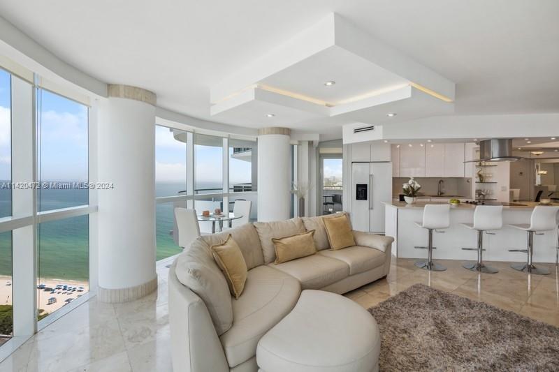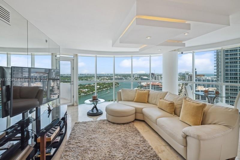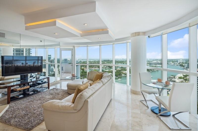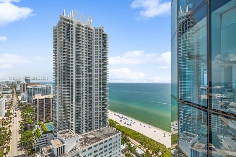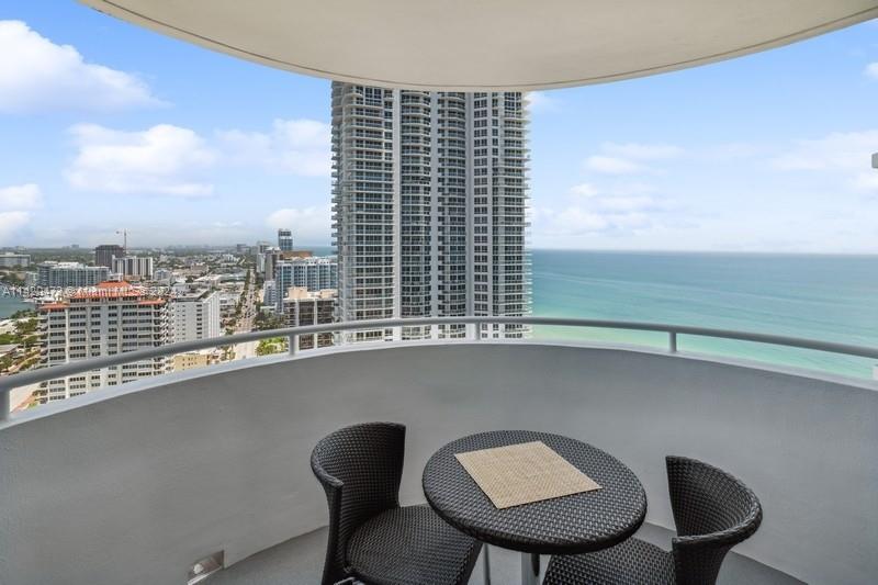 Stunning ocean, intracoastal & bay views from high floor spacious 2BR/2BA in full service oceanfront building in Miami Beach. Unit sold furnished. Floor to ceiling windows allow the water views to be enjoyed from many vantage points & provide abundant natural light. Other features include open floor plan, tile floors, large primary suite privately set off from living area, new central air (March 2024), and 2 balconies, of which 1 is accessible from the bedrooms. Two assigned/covered parking spaces & 1 assigned storage locker. Building has lovely lobby & common areas, along w/resort-style amenities, such as gym, pool & beach service for chairs/umbrellas. Conveniently located to shopping & restaurants, as well as South Beach, Surfside & Bal Harbour. NOTE: Floor plan shows north balcony only.