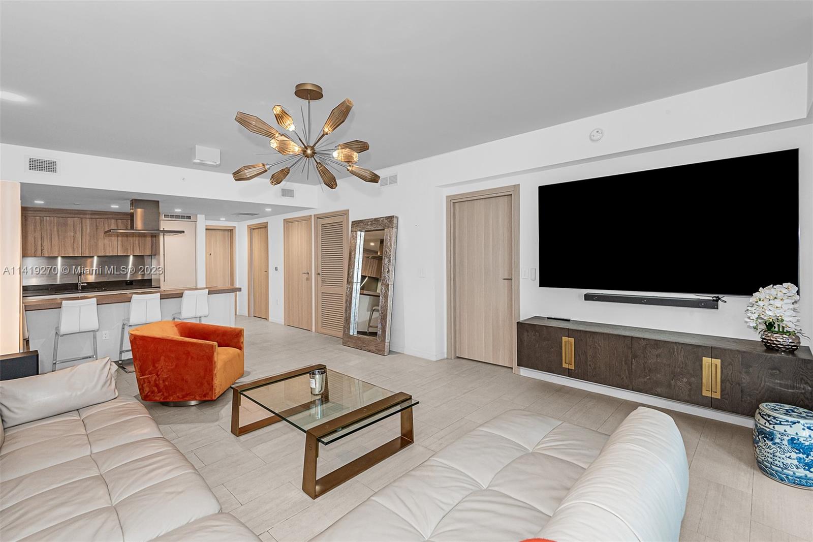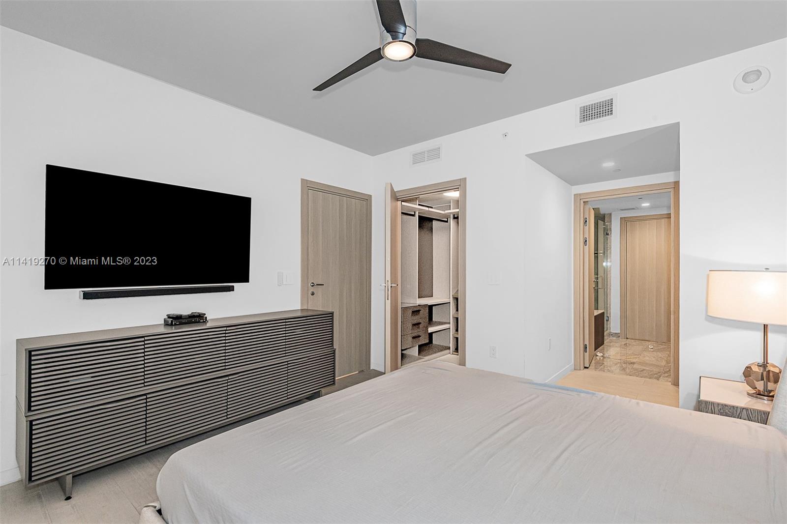 Only one-bedroom, one-bathroom residence that offers east-facing water views. Fully Finished and furnished with high end Italian Furniture Extras: Living room: Motorized sunshade. Lutron Dimmers. 85” Sony Smart TV with Advanced Sound Custom Hand-blown Glass & Bronze Chandelier. Custom Architectural ceiling Lightbox and Custom Bookshelf. Kitchen: floor to ceiling custom Glass and Bronze Feature Wall. Master Bedroom: Giorgio Armani Wallpaper. Custom King Upholstered Bed w/leather trim Wood & Glass nightstands with Crystal Lamps. Italian closets. 60” Samsung Smart TV w/ woofer system. Designer Chrome ceiling fan motorized black-out shades. This Building offers. 5-star service and unmatched convenience and luxury. unbranded Matterport tour attached. Easy to show.