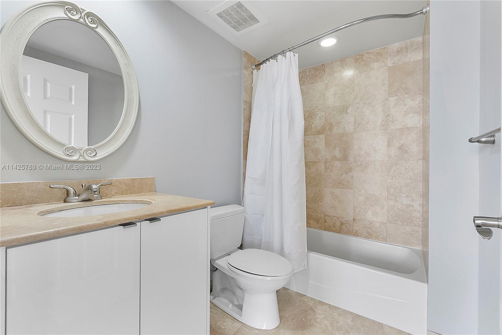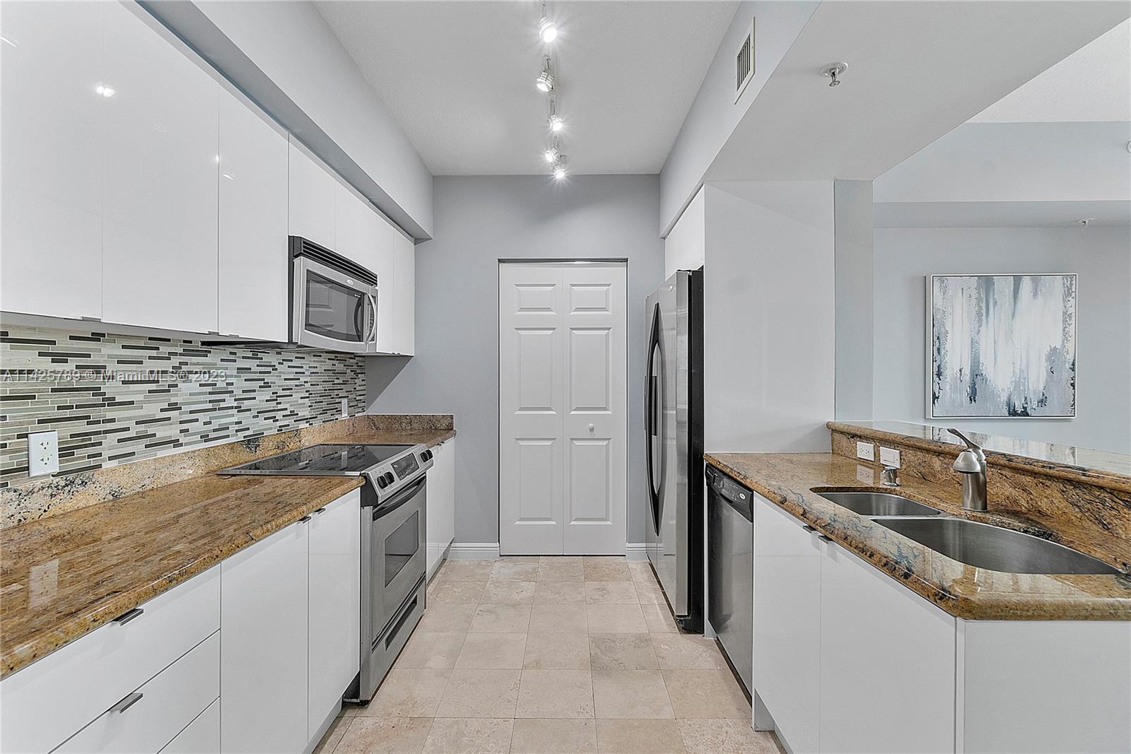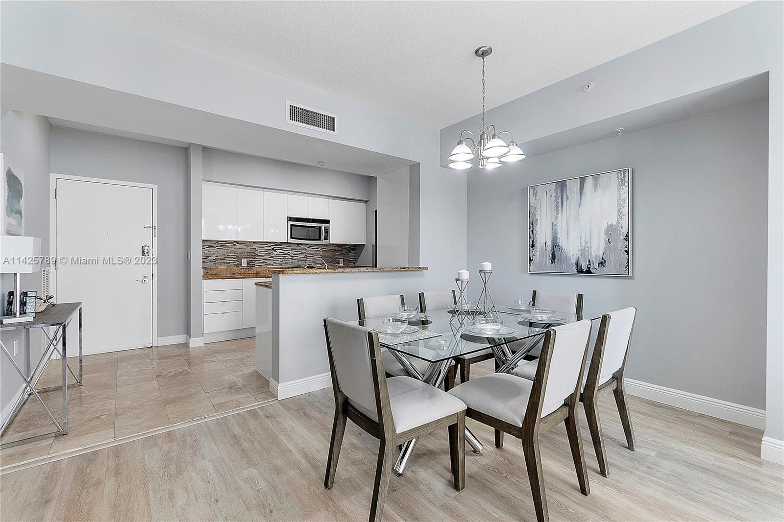 Remodeled 2 bedroom, 2 bathroom, Hallandale Beach condo w/stunning golf course, pool, intercostal, & ocean views! Property features an open kitchen w/granite countertops, tile backlash, & stainless steel appliances. New vinyl flooring throughout, creates a modern & cohesive look! Oversized balcony faces East w/breathtaking sunrises, & a stunning view of the entire city! Primary bedroom has direct access to balcony, oversized walk in closet, & large ensuite bath w/ double vanity sinks. Washer & dryer in unit! The Duo is a luxury high rise community that features resort style amenities including, heated pool & hot tub, fitness center, tennis courts, clubhouse, billiards room, valet parking, & more! Walking distance to beach, shops, restaurants, & nightlife! SPECIAL ASSESSMENT PAID IN FULL!