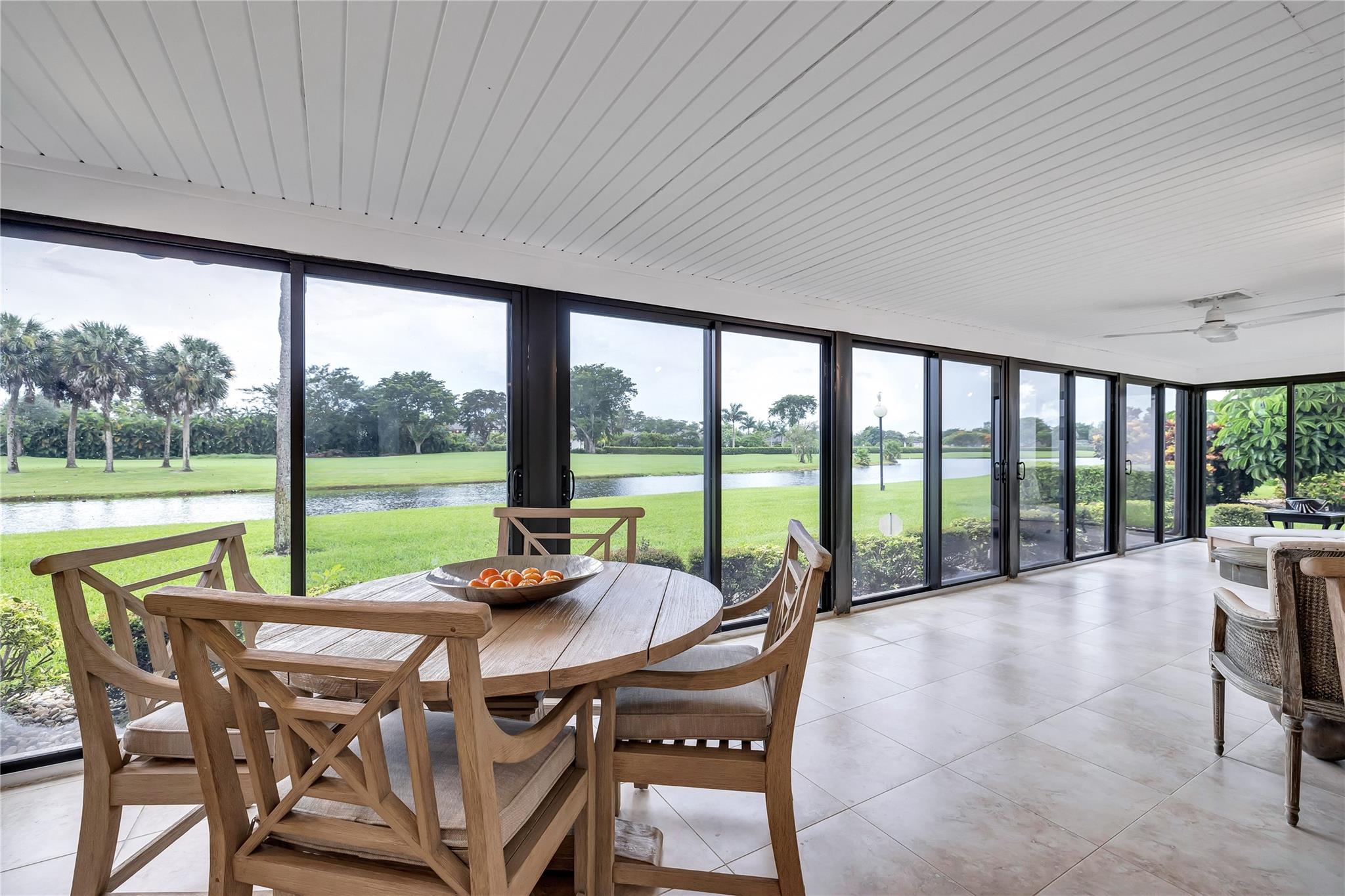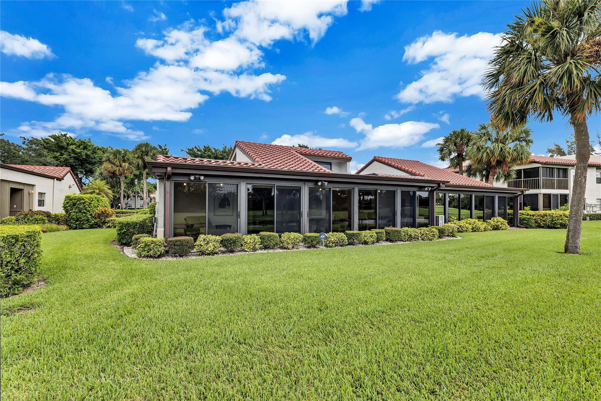 Don't miss the opportunity to explore this expansive 3/2 villa offering breathtaking views of a golf course and water body. This home features a renovated enclosed patio, high cathedral ceilings, clear views through skylights, and is situated in the lively 55+ Boca Lago Country Club community. Membership optional, but provides access to a variety of dining experiences, easy access to major roads, and proximity to shopping. The property is well-maintained & the HOA fees cover numerous amenities, including two pools, a clubhouse, trash services, internet, cable TV, & a waterfront view that will surely impress your guests. Additionally, the porch is air-conditioned w/ sliding glass doors, offering ample additional living space. Schedule a showing today! Good luck and stay friendly!