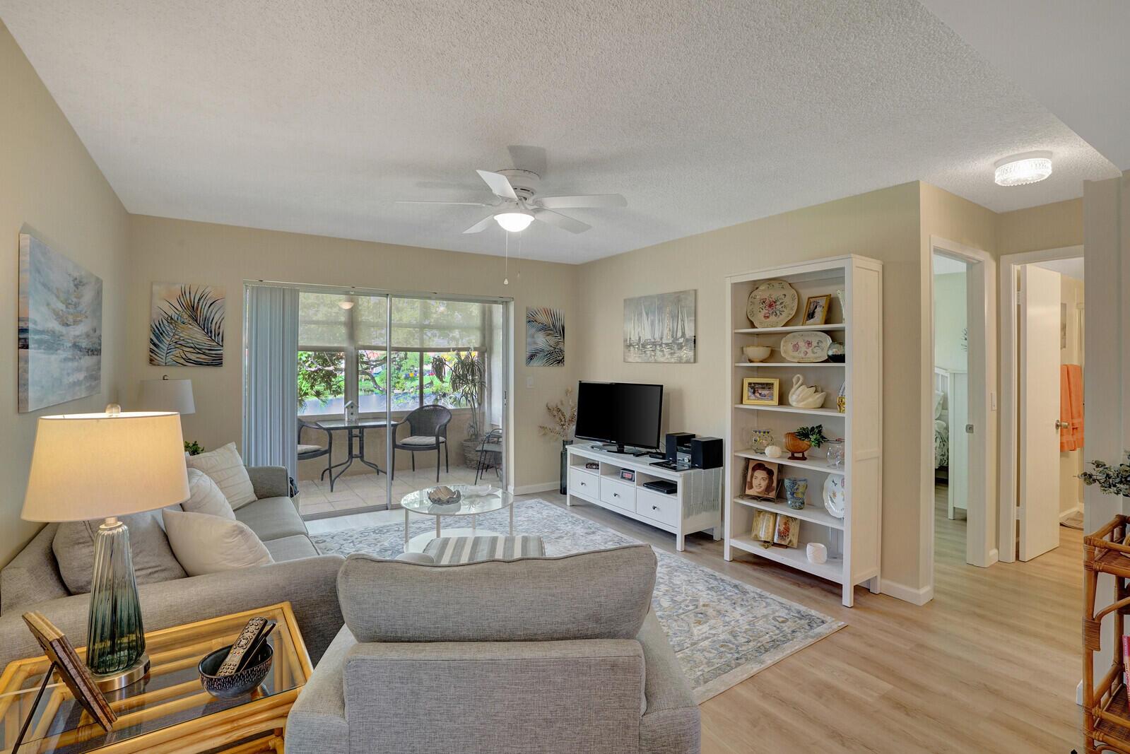 Welcome home to this beautifully remodeled & upgraded condo! The 2nd-floor privacy, being just across from Lake Evelyn's heated pool, laundry, and mail room would be incredibly convenient. The split two-bedroom floor plan with ceramic tiled floors would make for a clean and neat living space. The tiled patio with big sliding windows offering a beautiful water view and sunsets would be a delightful place to relax and unwind. It like paradise for those who enjoy outdoor views. The community offers a lot including 24/7 guarded security, two clubhouses with heated pools and spas, cafes for breakfast and lunch, gyms, billiards, and various social activities. The two social directors would ensure that residents have plenty of opportunities to stay busy and have fun. Great WPB Location!