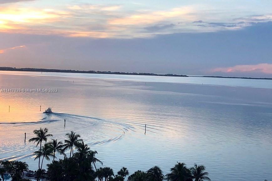 Located in private Grove Isle community. Unit offers the largest floor plan with 3 bedrooms, 2.5 bathrooms, and a maids/guest room. Watch wonderful sunrises and sunsets from two ample balconies. Amazing panoramic water views and stunning white marble floors create an elegant living environment. The open Eat-In kitchen features top-of-the-line appliances and custom cabinetry for style and functionality. Located at 1 Grove Isle Dr, this residence offers not only exquisite interiors but also access to the exclusive Grove Isle community. Residents can indulge in a range of amenities, including a private beach, marina, swimming pools, tennis courts, and a fitness center. The surrounding lush landscape enhances the overall tranquility and beauty of this sought-after address.