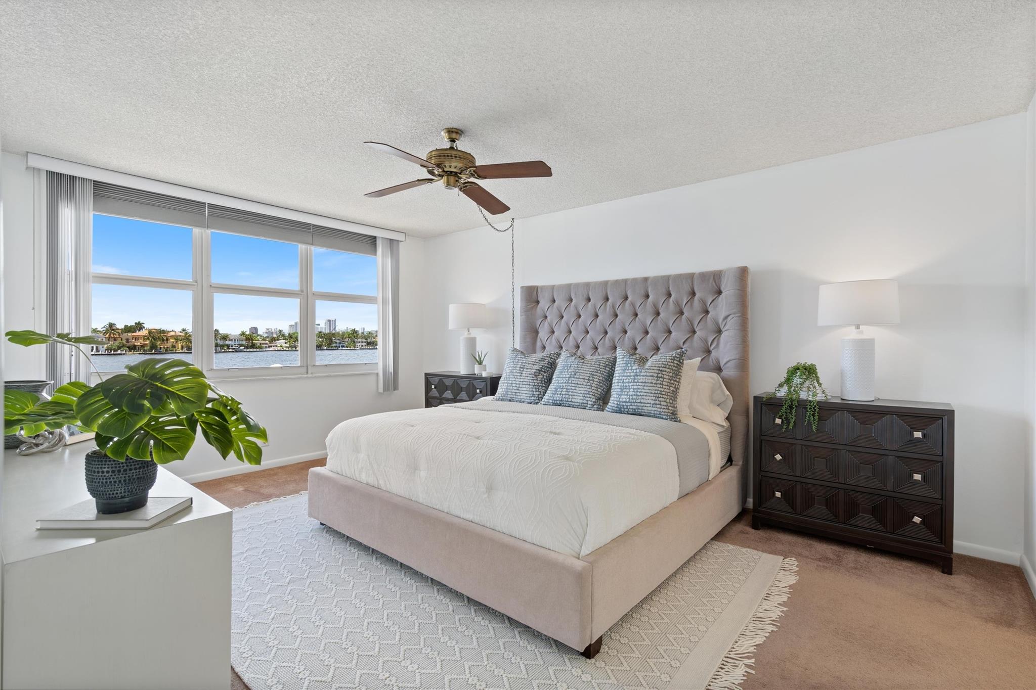 Watch a daily boat parade from the comfort of your living room and the beautiful sunsets every evening from your large balcony. Well priced to allow for a remodel with a spacious layout, large closets and impact sliders and windows. Bayshore Towers has a large heated saline pool, saunas, impressive workout room, extra storage, social room and a roof top deck for panoramic views. Comes with a garage parking space and plenty of additional parking. Building is well run & has passed its 50 year inspection recently completing a concrete restoration project & adding many upgrades. Phenomenal location only 3 blocks to the Beach & close to Breakers Avenue with outdoor cafes, award winning bakery & boutique shops. Close to Four Seasons, 'W', Las Olas & 20 mins from the airport. Truly Amazing Views!