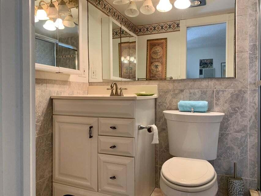 A Delightful Spot To Call Home In 55+ Century Village! Beautifully maintained and updated FIRST FLOOR 1/1.5 with open living floor plan. Pretty open kitchen with natural tone cabinets, high hat lights, and full appliance package. Updated baths. Neutral tile flooring throughout. Large bedroom suite with access to the lanai, wall of closets, and updated full ensuite bath with step-in shower. Brand new water heater 7/2023. Pretty resident patio. Sold AS IS- Furniture Is Negotiable. Fantastic location very close to the Hastings Fitness Center. Century Village is a 55+ community with so much to offer...