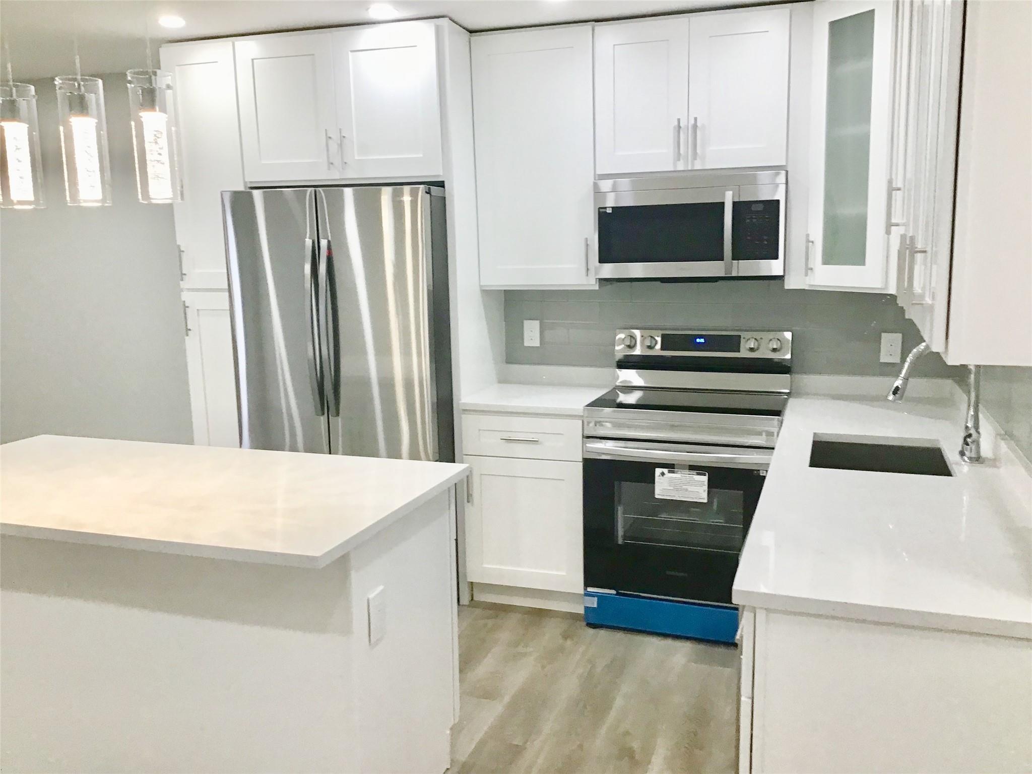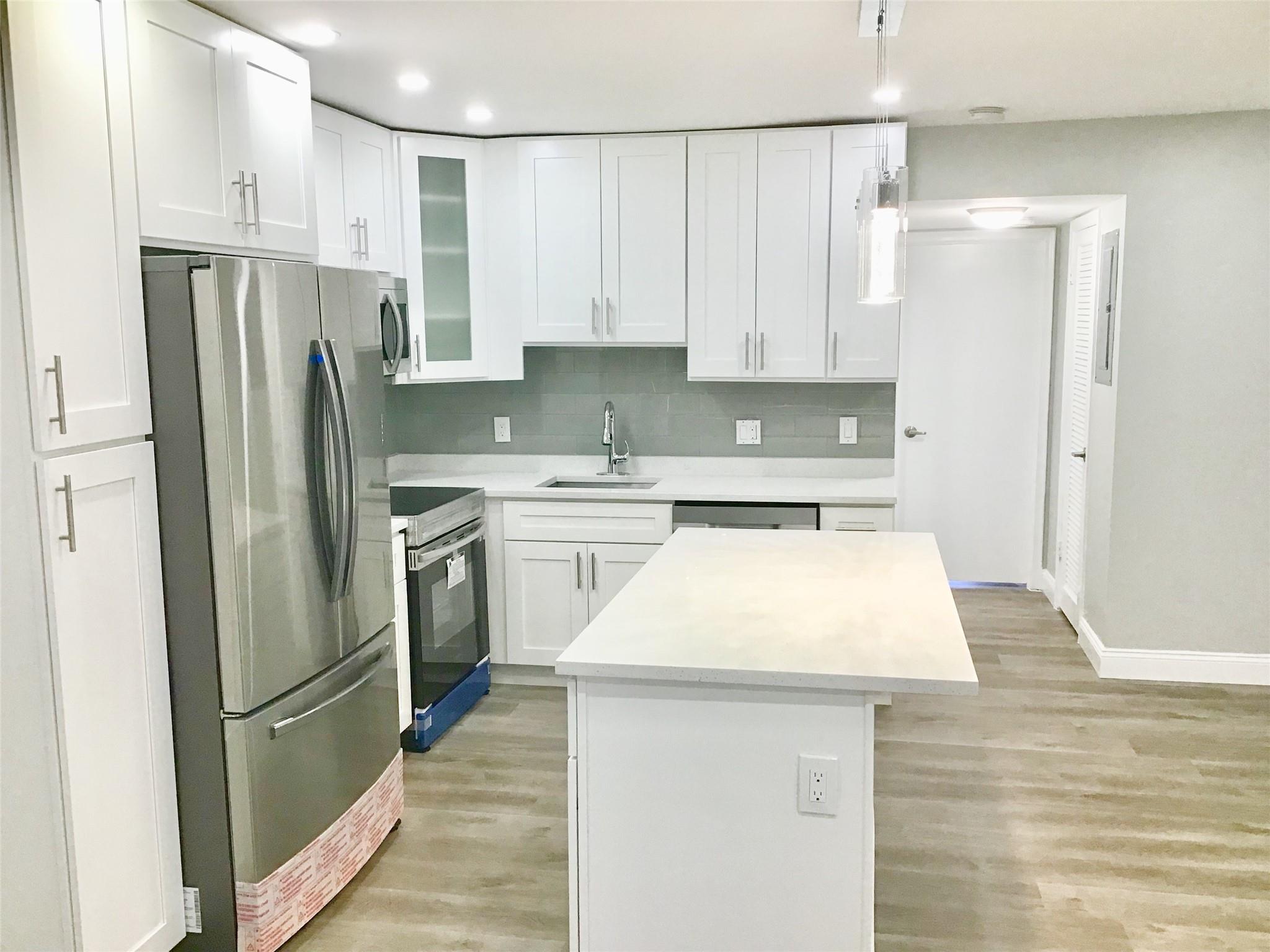 Newly Remodeled 1 bedroom 1 bath Condo with a Brand New Kitchen with Brand New Cabinets and Counter tops, Brand New Appliances, Back splash, Island, High End Finishes, designed with an open modern concept, Brand New Bathroom with a walk-in shower with High End Finishes, all new plumbing, New Electric, New Electrical Panel, New Flooring through-out, New closet Doors, New A/C units, New Lighting, Built in closets, Florida room with windows. All permits have been closed. Century village is a Gated active adult community 55+ with numerous amenities and activities all year around. 3 minute walk to the pool, Chatham C is a water front building with panoramic water views from the front window of the unit. This is a non rental building, no leasing allowed.