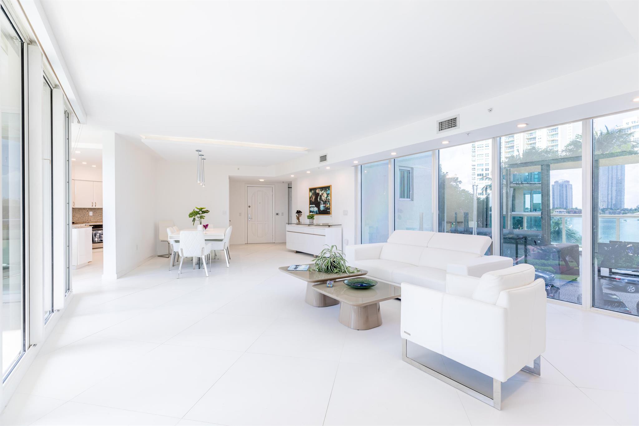 Experience the pinnacle of luxury living in this exquisite 4th floor condo boasting modern design, lavish amenities, and breathtaking water views. Situated in the heart of Aventura, this spacious residence offers an unparalleled lifestyle for those who appreciate both sophistication and comfort. Spectacular Water Views: Wake up to vistas of serene waters and picturesque landscapes. The condo's generous windows and expansive balcony provide unobstructed views of the sparkling bay, creating a serene and tranquil atmosphere. Modern Elegance: The interior is a testament to modern design, with sleek lines, high-end finish.The condo offers 2 spacious bedrooms with walk-in closets, each designed with comfort in mind. The master suite
