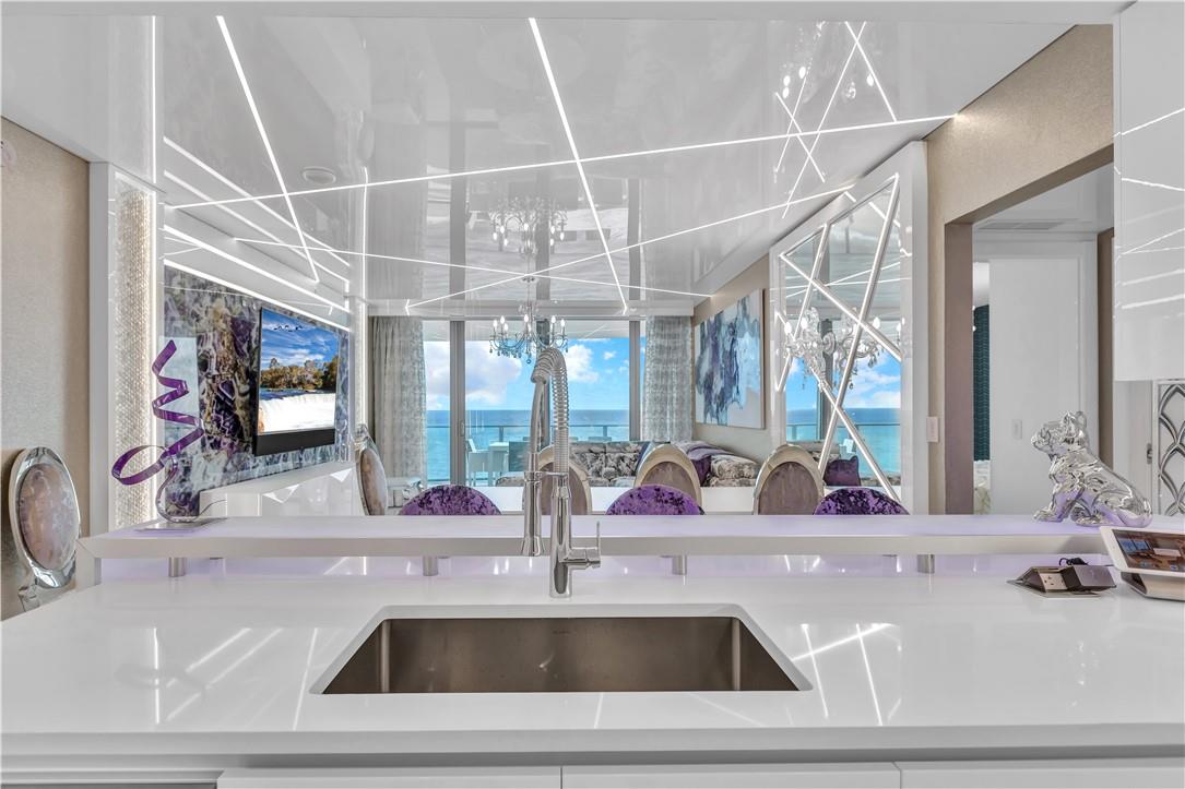 BREATHTAKING DIRECT OCEAN VIEW IN PURE LUXURY! Expanded wide 420 sq ft balcony! Interior designed & decorated by Perla Lichi! Built 2020 Ultra Luxurious Boutique Condo of only 68 residences. Sabbia sits on 200 linear ft of Pure Ocean. NO expense spared here! 1 of kind Custom art, furnishings & lighting throughout. Tons of unique features such as; Seura LED TV Bath, Bluetooth shower head w/custom lighting, stretch ceiling, 75”tv’s in every room, wine fridge, sub zero refrigerator & add'l FS refrigerator in your private laundry room. Elevator opens to your private designer foyer w/ imported Italian tile. VALET Parking, business center state of the art fitness,, spa & steam room, PRIVATE BEACH with infinity pool & ocean front summer kitchens. Capri model 2 bed+ den (used as 3rd bedroom)