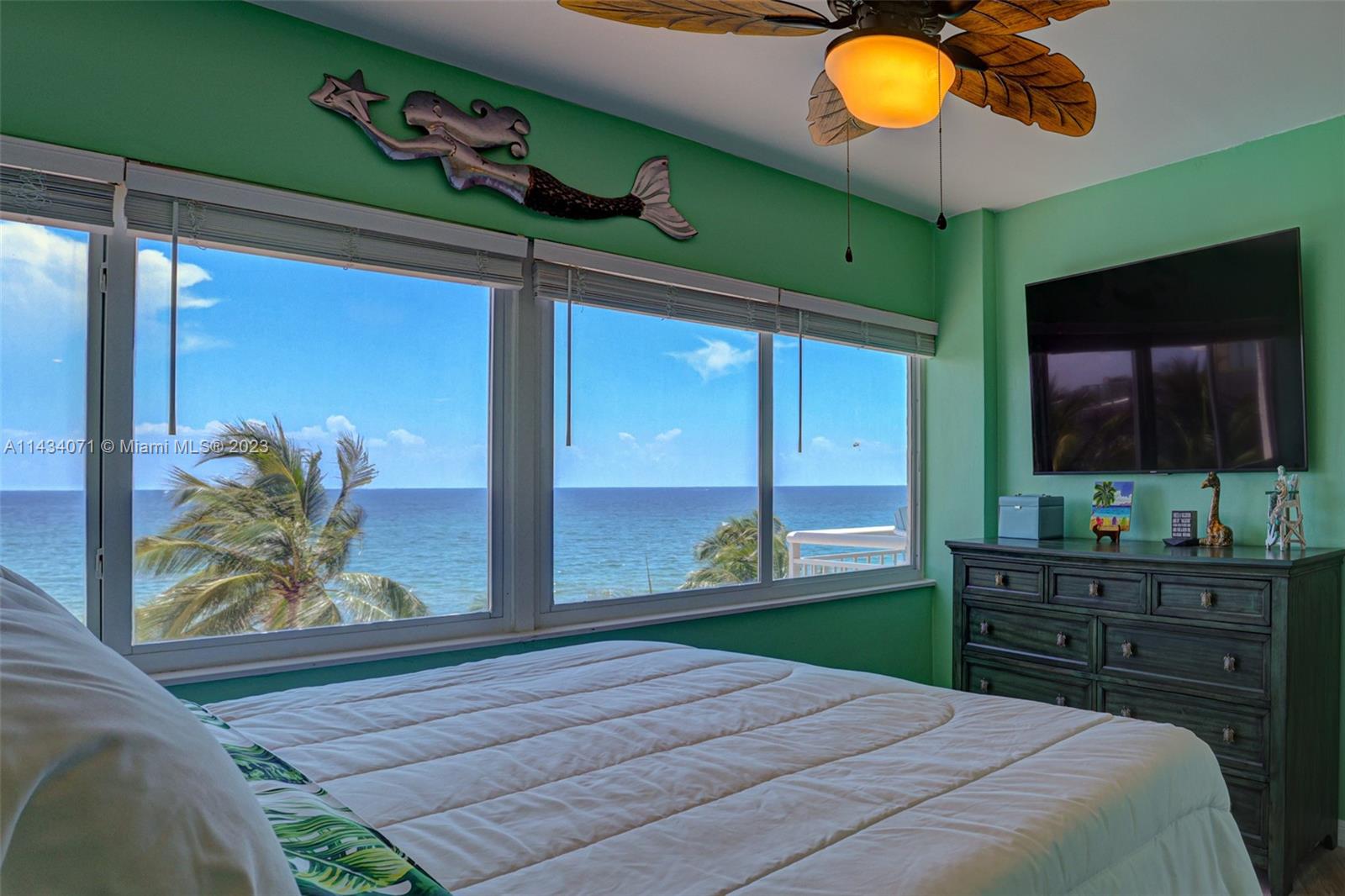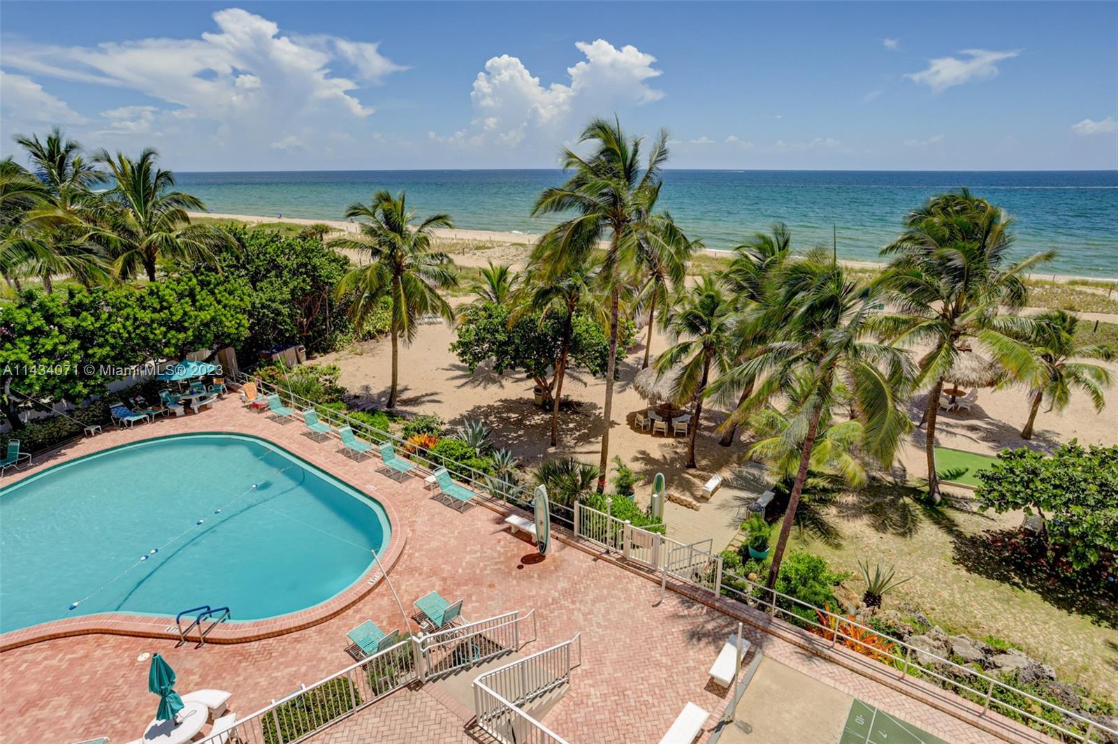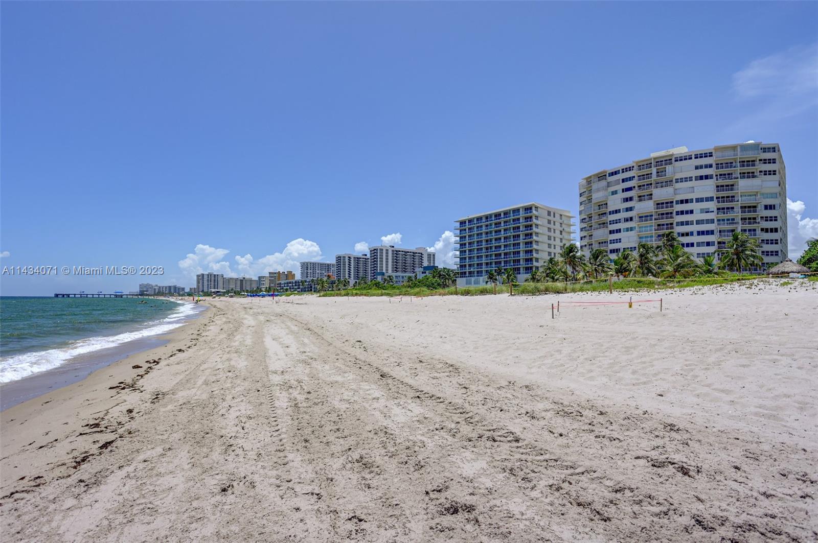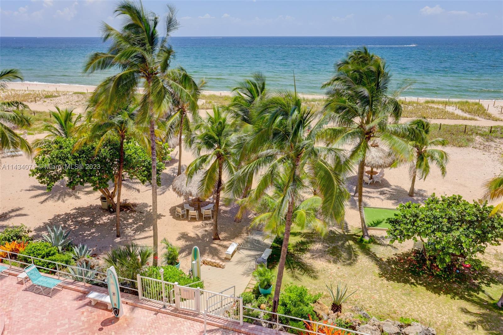 Resort-Style Living…DIRECTLY On The Beach! Fully remodeled 2 bed/2 bath open concept condo with unobstructed ocean views from almost every room. Newer appliances, large TVs, new A/C unit. Fully furnished, deluxe patio furniture and upscale, beachy vibe. Well designed gourmet kitchen features newer stainless steel appliances and tons of storage, and separate dining area. Primary bedroom is large with ocean views. Second bedroom is private and quiet. Well appointed on-suite bathrooms in both bedrooms. Giant balcony overlooks pool and private beach w/ tiki umbrellas, BBQ's, fire pit, hammock garden and ocean. Short walk to Pompano Beach Pier, shops, restaurants & bars, or take free shuttle! Dues Include Water, Trash, Cable TV w/Premium Channels, Internet, Building Insurance.