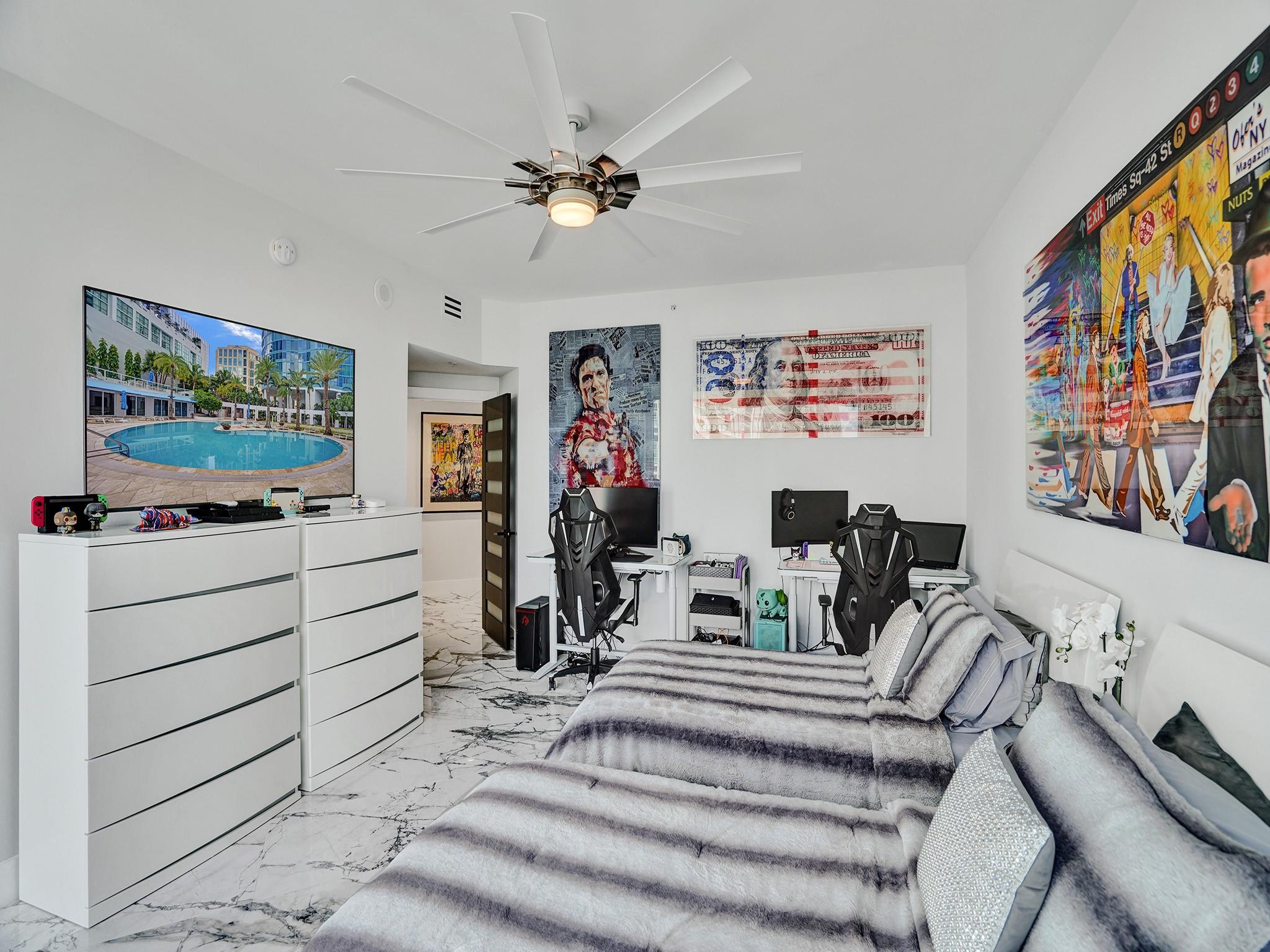 Highly sought-after Chelsea floor plan in the Las Olas River House, with extraordinary features. This luxurious residence boasts a 241 sq ft balcony, granite countertops with backsplash, exquisite porcelain tile throughout, LED lighting in every room, & meticulous attention to detail. The master bath offers a modern oasis, while the 2nd bedroom functions as a 2nd suite with added windows. Enjoy custom doors, cabinets, and lighting, along with 1-year old appliances & 3 year-old AC. Amenities include built-in wine cooler with dual-zone temperature, electronic toilets in each bathroom, Badeloft sinks, 9ft ceilings, & floor-to-ceiling windows showcasing RIVER & POOL views. Experience around-the-clock security, concierge services, & access to a world-class gym, steam rooms, & serene spa areas.