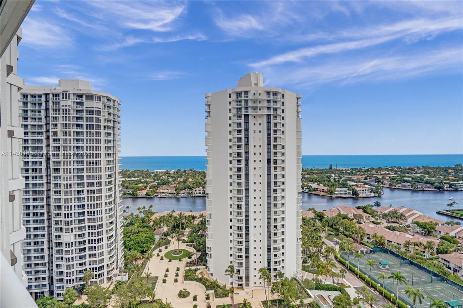 Direct intracoastal and ocean views from all the rooms. Bright and spacious, two split bedrooms and a den. Marble floors throughout. Used only as a second home. Two assigned parking spaces & storage. Resort lifestyle: 3 pools, 4 tennis courts, spa, fitness center, beauty salon, and clubhouse. Outdoor café, BBQ area & kids' playground. Walking distance to restaurants and shops. Special assessments paid in full.