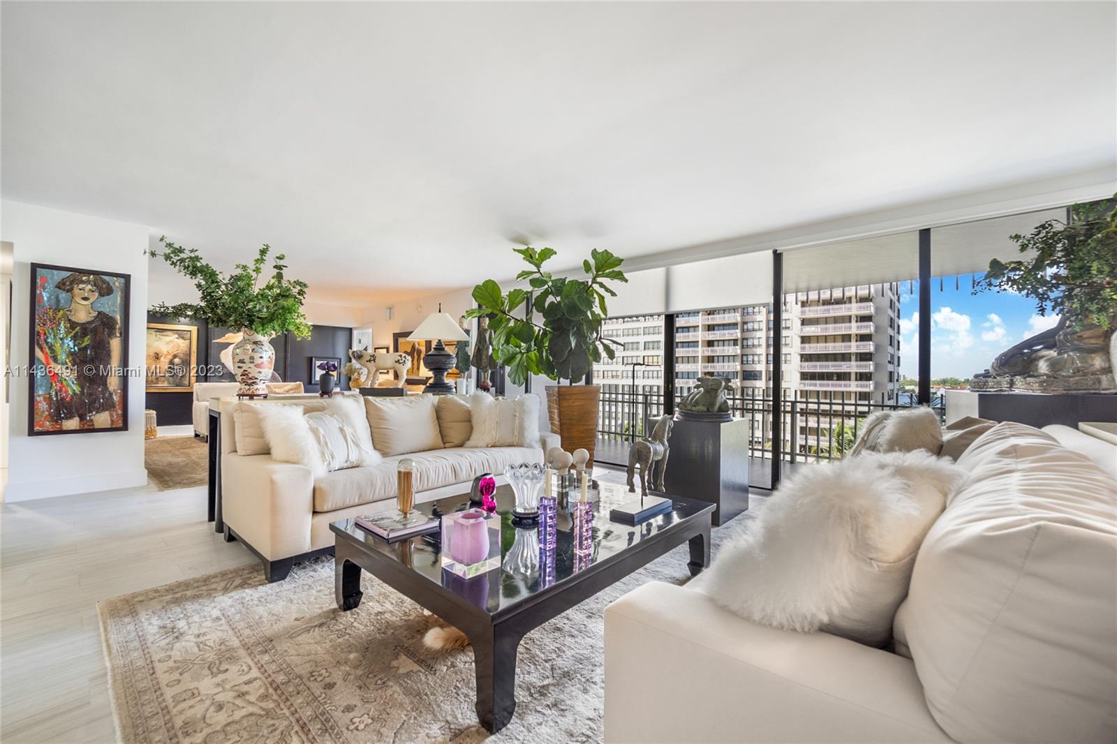 Rare unit, completely renovated 2 bedroom + DEN / 2 bathroom split plan in the exclusive Grove Isle community. Spacious unit features pristine porcelain wood floors, modern open kitchen with marble-top island & custom built-ins, grand living areas, fabulous master suite with 2 walk-in closets, large outdoor terrace with stunning views of the bay to the North and city views to the West, and walk-in laundry room with sink. Building amenities include 24/7 security, gym, community pool, marina and tennis courts. Chandelier excluded. Furniture available for sale.