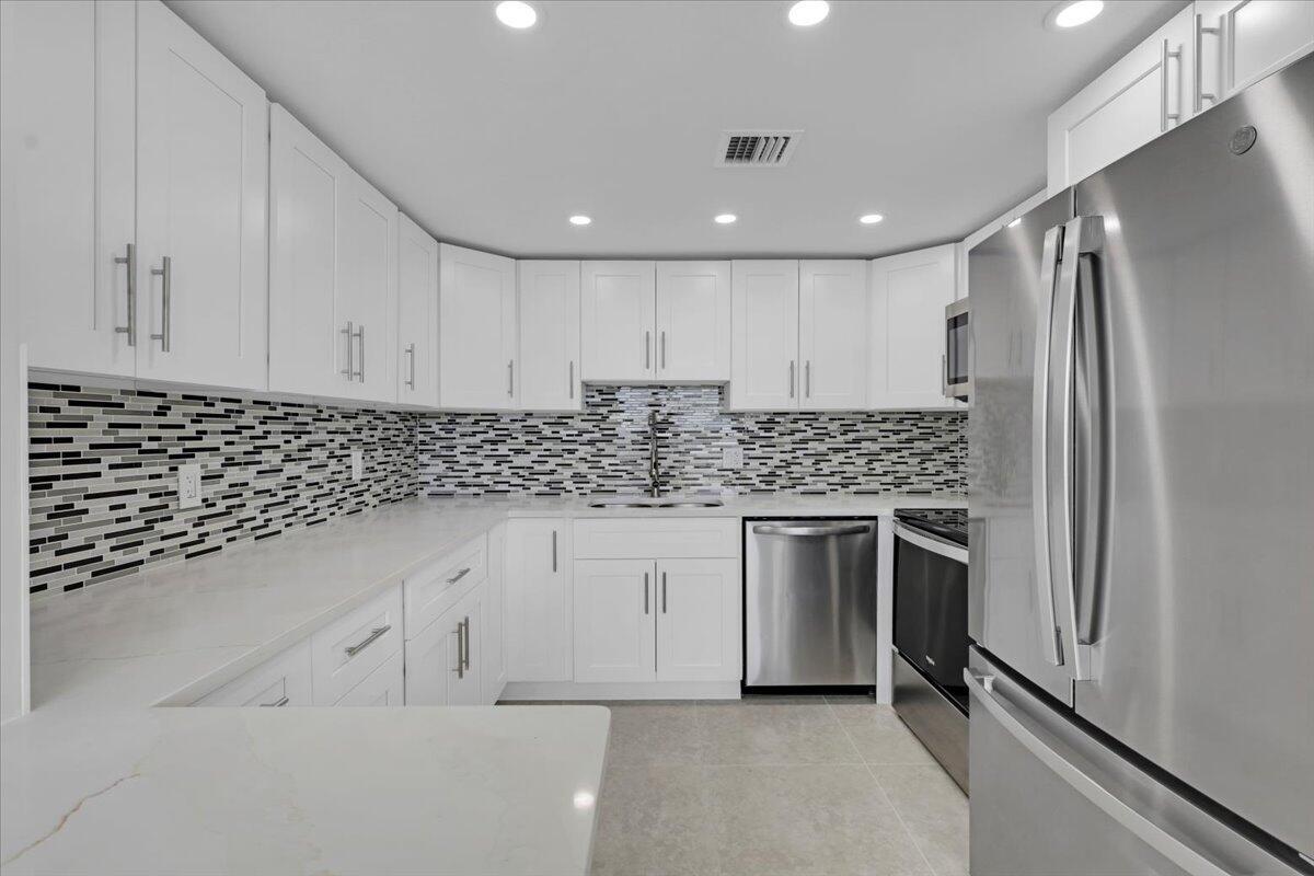 WOW! DON'T MISS OUT ON THIS EXCEPTIONAL 2 BED 2 BATH NEWLY RENOVATED LARGE LUXURIOUS PENTHOUSE.IN A VERY WELL KEPT, WELL FUNDED ASSOCIATION. STUNNING KITCHEN COMPLETE WITH NEW, NEVER USED STAINLESS STEEL APPLIANCES. LARGE NEUTRAL TILE THROUGHOUT. 2 BEAUTIFUL FULL BATHS. GREENBRIER HAS ITS OWN PRIVATE POOL.SHORT WALK TO WALGREENS AND THE CLUBHOUSE. .Roomy closets (one walk-in), 2 laundry rooms, assigned parking spot plus visitor parking available; local bus for errands/shopping both within & outside the village. COME AND ENJOY RESORT STYLE LIVING IN THIS GATED COMMUNITY FOR ADULTS 55+. Clubhouse with theater, shows, movies, craft and card rooms, billiards, aerobics, yoga, and dance classes. GREAT LOCATION: close to shopping.