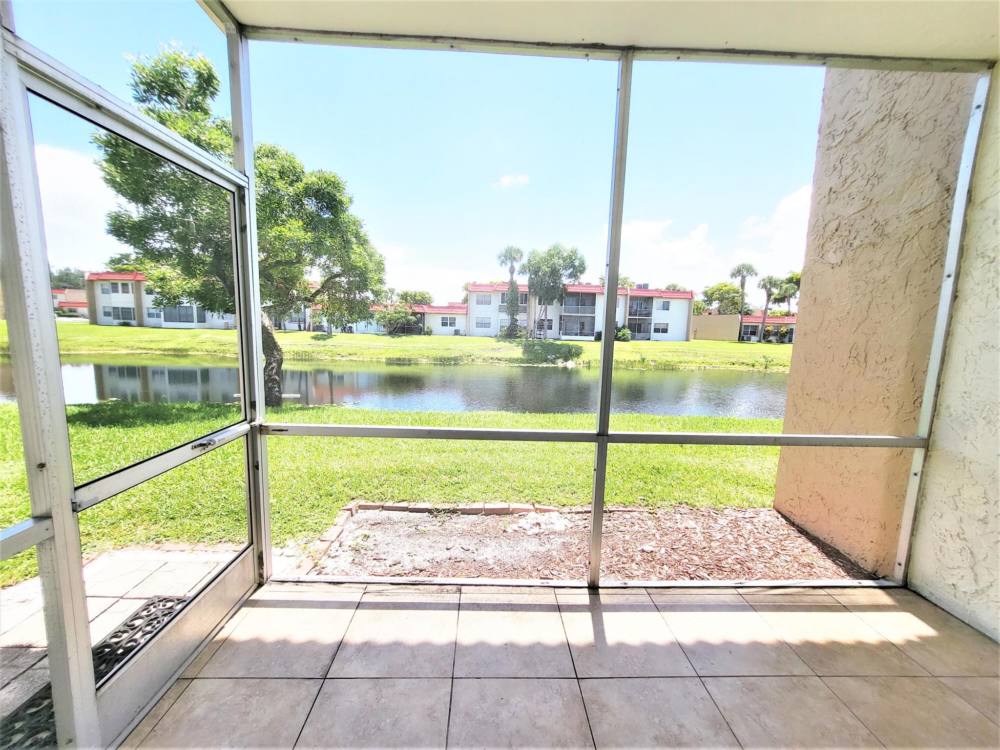 Newly renovated, ground floor corner unit in Golden Lakes . This beautiful 1 bedroom, one & a half bath apartment features an open kitchen with custom wood cabinets, stainless steel appliances, and 24''x24'' tile flooring. New impact windows & sliding glass doors (2020) plus accordion shutters offer extra hurricane protection. Enjoy the serene water view from the screened patio. Freshly painted with a new roof (2021). Parking at your doorstep and next to 2 guest spots. 24/7 Manned guard gates ensure security. . Amenities include resort style pool, clubhouse, gym and outdoor recreation facilities. Close to highway, dining, shopping. One occupant must be 55+.