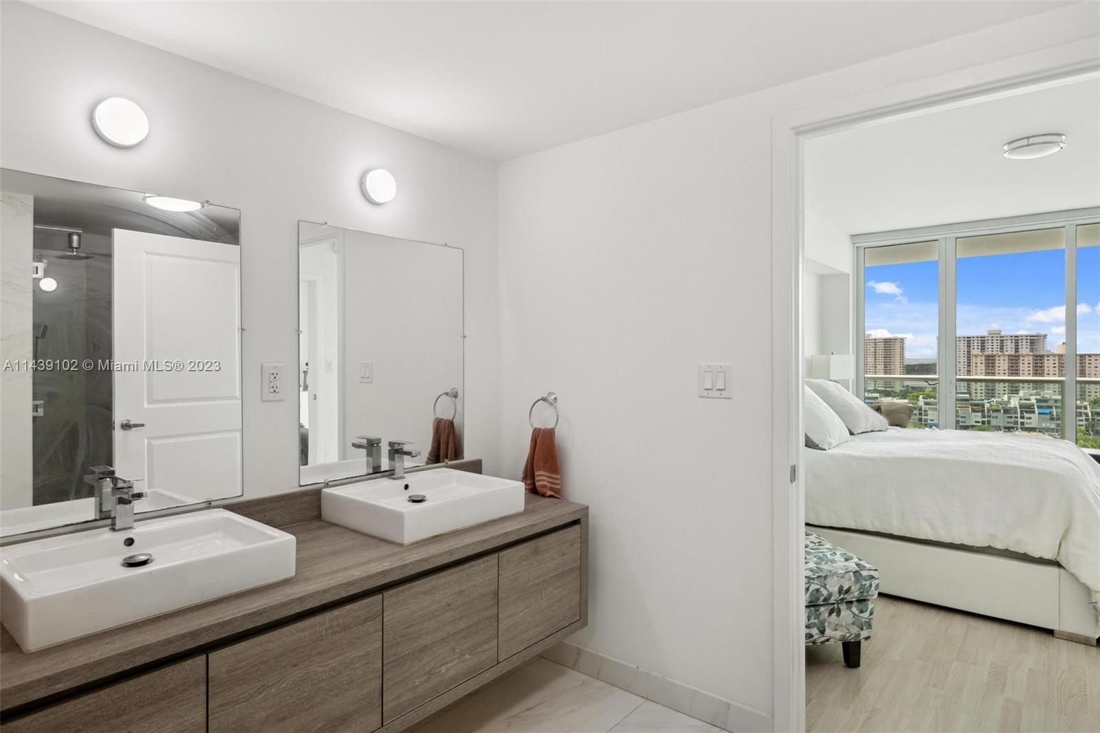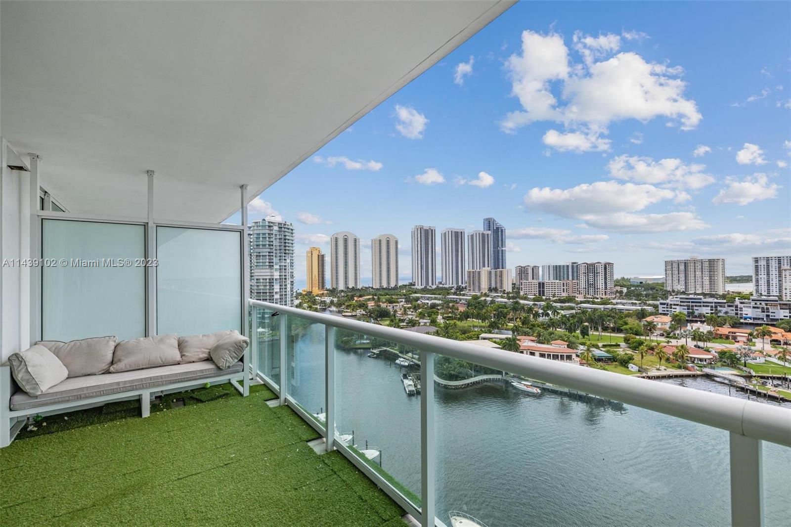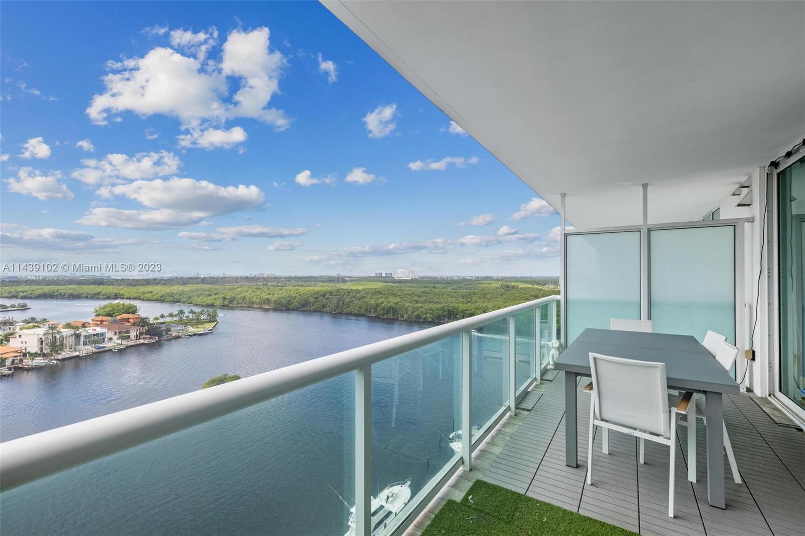 Welcome to this unique 2 beds + den + 3 baths, 1553 sqft unit plus additional 322 Sq terrace (biggest balcony in the building!). Open concept living, with great sized rooms, fantastic master W/C and spa type bathroom. Breathtaking views toward the Intracoastal, Oleta Park and the ocean with spectacular sunsets. Unique resort style amenities: Infinity lap pool with dream views, Fitness center, outdoor jacuzzi, pool bar, meditation garden, tennis court, Mediterranean restaurant and a private spa with sauna, steam room, plus a unique Rejuvenation Center! Valet & 24 hr security. Boaters paradise: Dock Space wet/dry available for rent/sale and 10 min ride to open sea. Walking distance to the beach,5 minute drive Bal Harbor shops and Aventura Mall. Best priced in the building, owner motivated!!