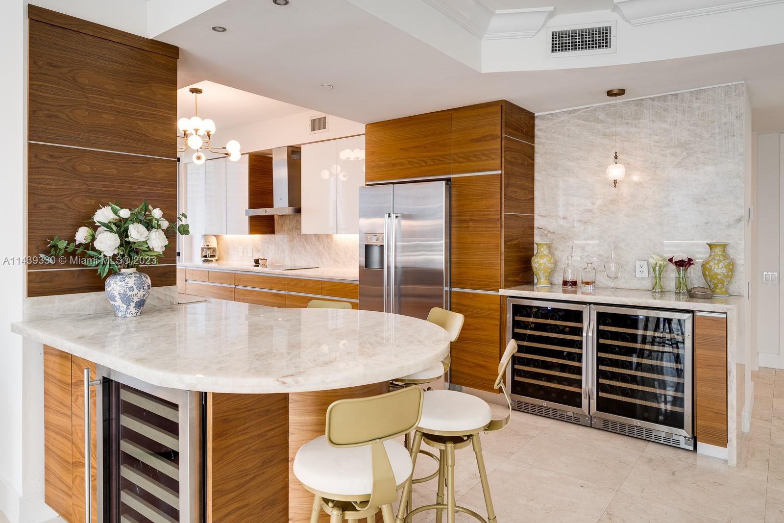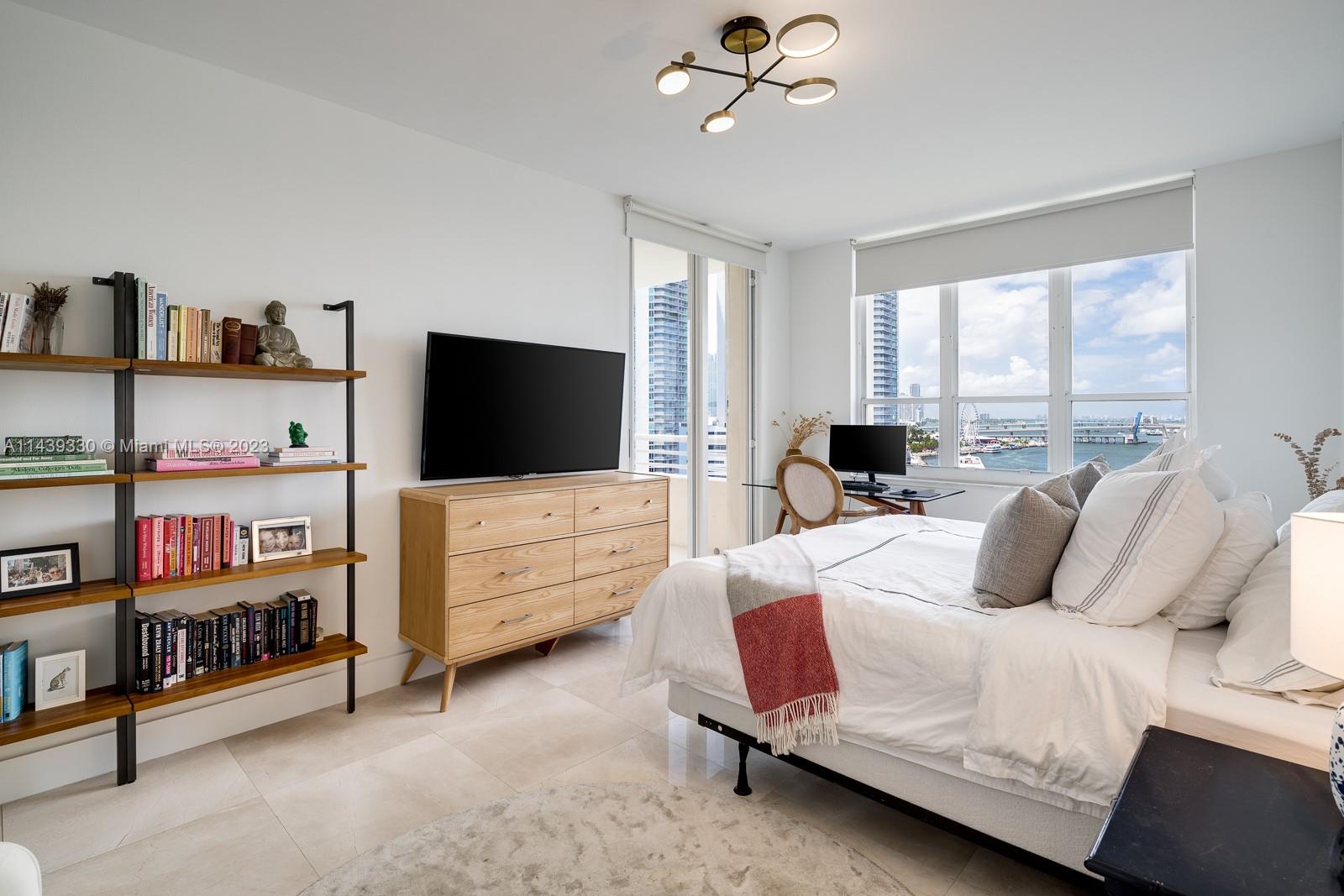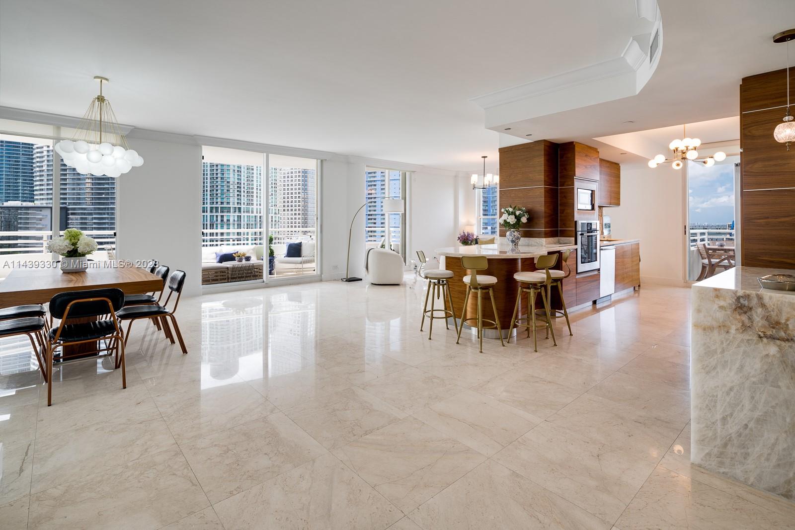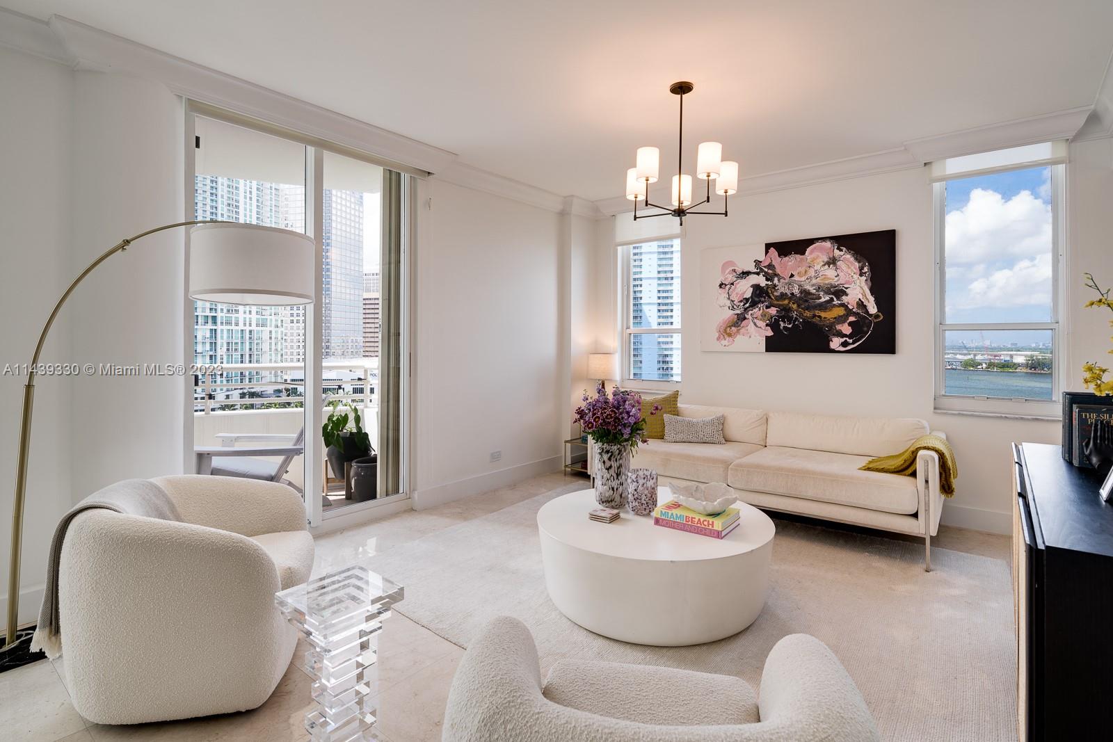 DIRECT WATERFRONT! Exceptionally spacious, true 3-bedroom 3 bath residence in exclusive One Tequesta Point with glorious views of Biscayne Bay, the Miami River, parks & the City from 2 balconies. Recently updated kitchen & baths. 3 ensuite bedrooms. 4 assigned parking spaces! Full-service building, beautiful, newly renovated lobby, common areas completely renovated, guard-gated, valet, concierge, pool, spa, 2 BBQ stations, fitness center, business center, racquetball & squash court, access to Bay Walk and more. Brickell Key offers parks and a one-mile strolling path surrounding the island. Walk to restaurants & shops. This apartment feels more like a lovely home than a condo with its spaciousness, dazzling water views, split bedrooms, stylish updating & fine architectural detailing.