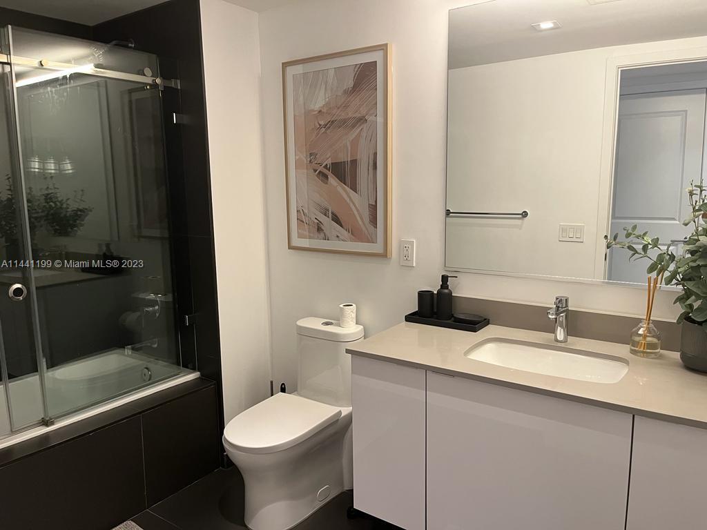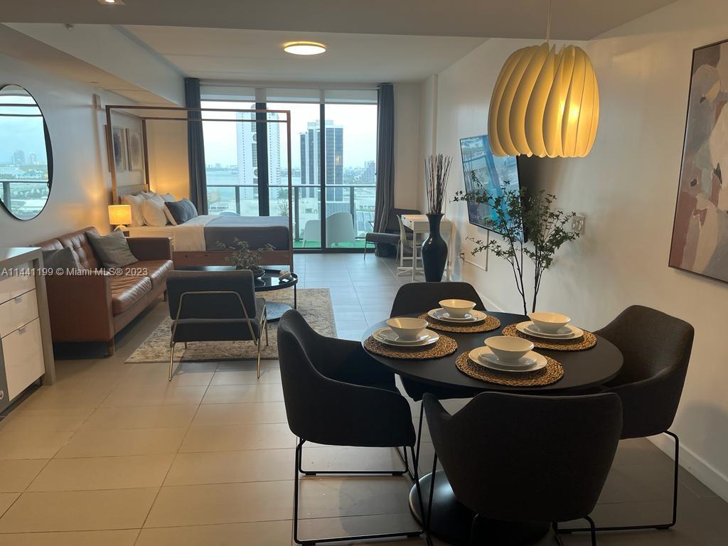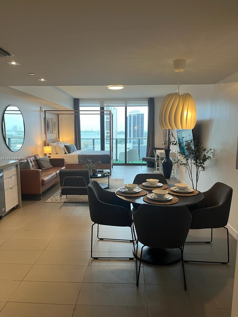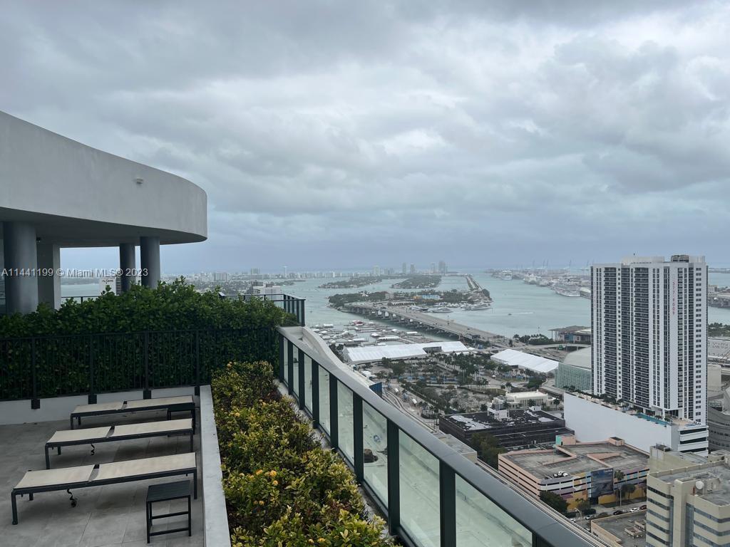Beautiful, modern & spacious studio is located in the heart of the Arts & Entertainment District. Minutes away from Downtown Miami, Museum of Science, Adrienne Arsht Center, Bayside, MIA airport, South Beach. Close to malls, restaurants & nightclubs. This building has amazing amenities, a rooftop pool, & other two pools, a jacuzzi, a fitness center, racquetball court, yoga room, spa & sauna, theater room, business center. Children's playroom. Pool bar and 24/7 security, concierge. On site management. The unit is equipped with stainless steel appliances, tiled floors, washer & dryer. Impact sliding doors. Enjoy the amazing view to the bay and the ocean from the balcony. Maintenance includes water, internet and cable. Self & valet parking on site. Easy access to major highways.