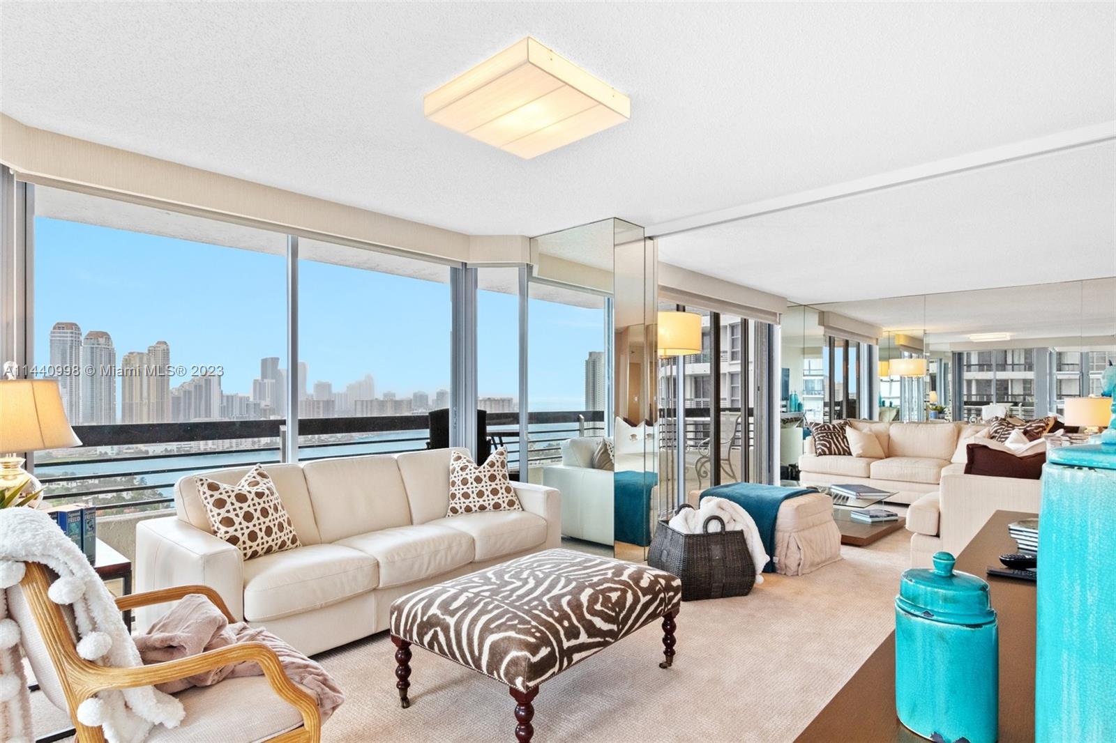 The best views in all of Mystic Pointe. The panoramic wrap-around balcony offers views of both the Intracoastal Waterway and the ocean. Enjoy your coffee watching the sunrise over the sparkling water, water views from each room. The spacious 2 bedrooms and 2 baths, split bedroom plan, washer & dryer in the unit, plenty of closet space, and hurricane shutters. Enjoy the waterfront pool, gym, and luxury amenities including pickle ball, tennis, beautiful gardens, restaurants, marina, convenience store, 24/7 gated community, and more. Best location in the heart of Aventura you are minutes away from Aventura Mall, the beach, Jogging Path, amazing restaurants, and golf courses.