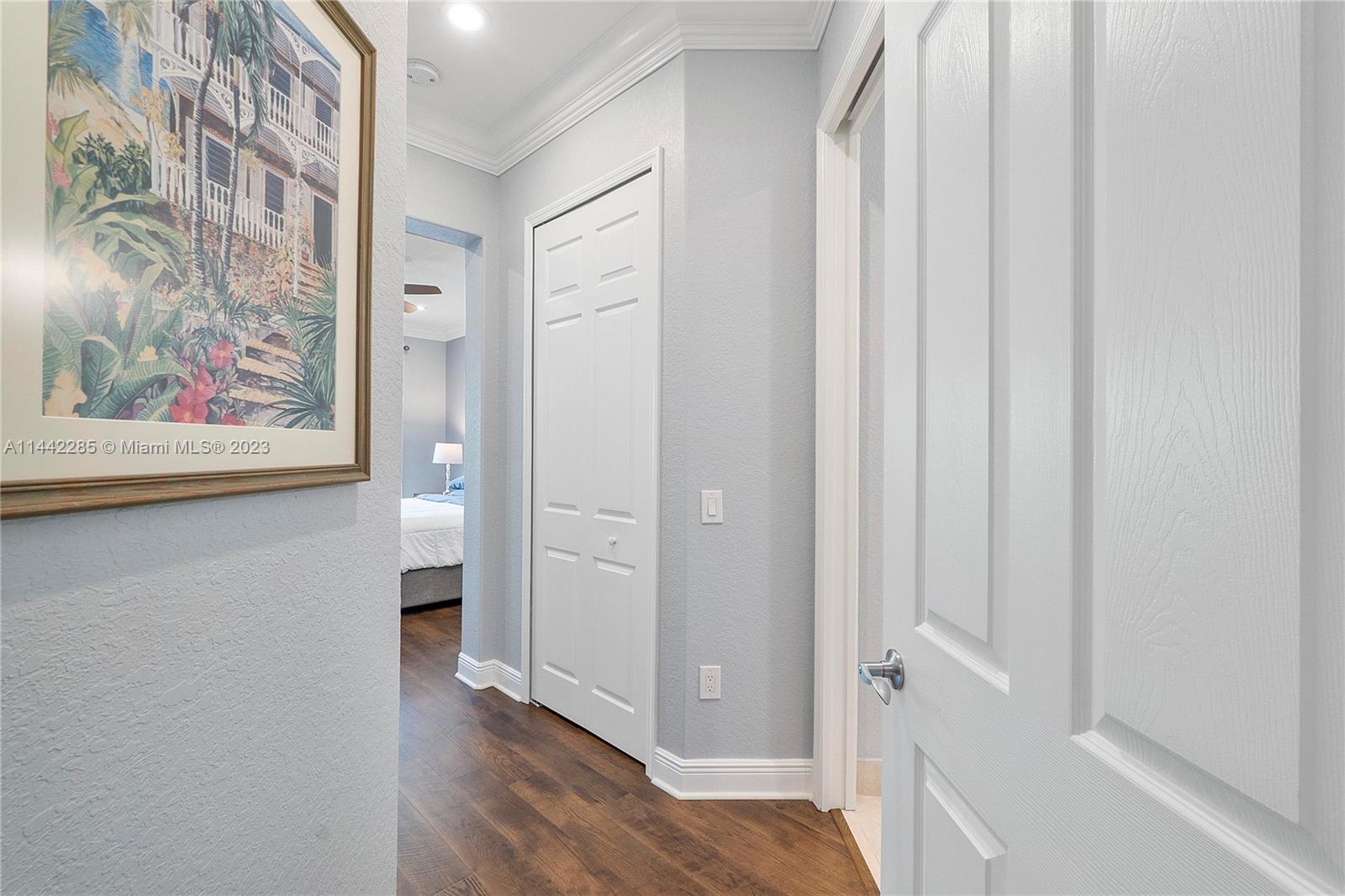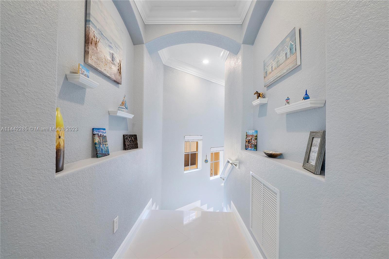 Gorgeous upstairs 3-bed, 2-bath w/att 1 car garage end unit coach home in Heron Bay with screened patio, split floor plan and soaring ceilings offering both space and privacy. Large kitchen with ss appliances tons of counter space, wine cooler and large pantry, main bedroom has upgraded double closets and attached master bath complete with huge double shower enclosed with frameless door. Upgrades, new AC (2023), tankless water heater, accordion hurricane shutters and crown moulding throughout. No carpeting, 24x24 neutral porcelain tiles in main living areas, with wood like vinyl in all bedrooms. Prestigious Heron Bay boasts 3 manned gated entrances, 2 clubhouses with tennis center and clay courts, pools, fitness center, splash park, playground, basketball and pickleball courts, and more!!