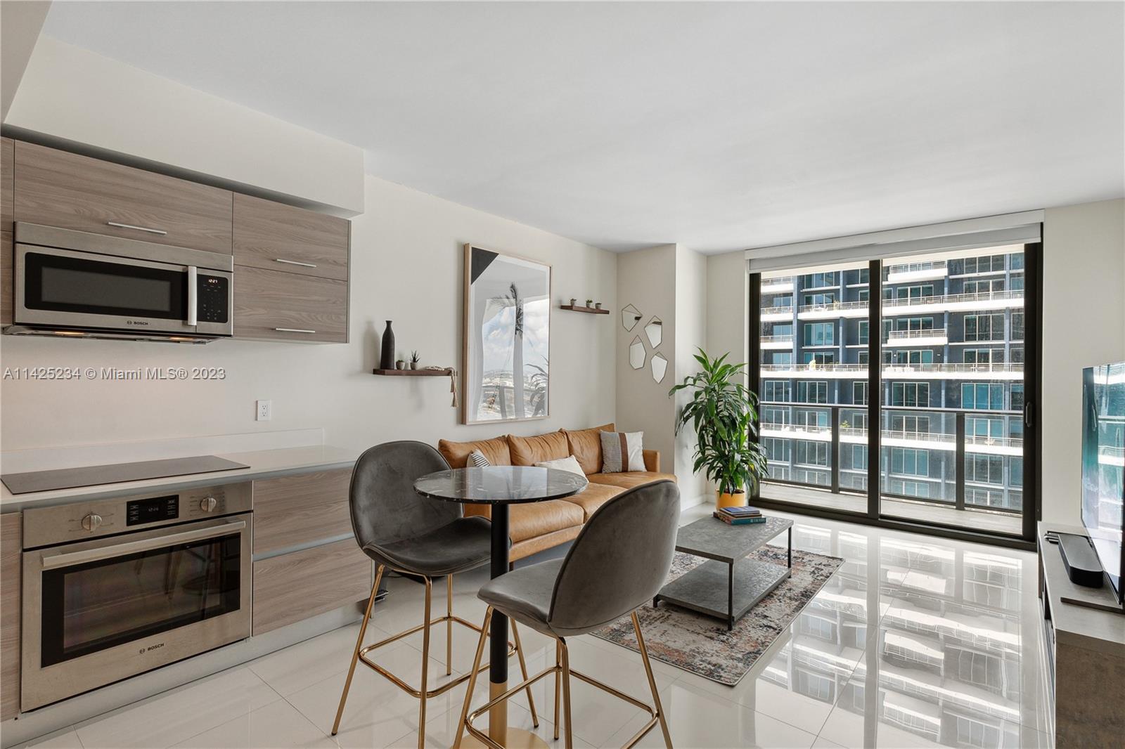 Convenient 1 bed + DEN/ 1.5 bath at desired SLS Brickell Residences! Porcelain floors throughout. Kitchen with granite countertops and Bosch appliances. Spacious balcony with gorgeous views to the Pool and Ocean. Impact windows with beautiful blinds. Walk-in closet on master bedroom. Washer/dryer inside the unit. Include: Water, cable, WiFi and assigned covered parking space. Immerse yourself in the style, luxury and service of SLS Brickell: Room service, Tiki-bar, cabana, jacuzzi, infinity pools + rooftop pool, sky deck area; fitness center, spa, steam rooms, party room, movie theater and renowned restaurant Fi’lia (by Michael Schwartz). Exclusive access to SLS Miami Beach. Walking distance to restaurants and shops. Centrally located from Miami Beach, Midtown and the Airport.