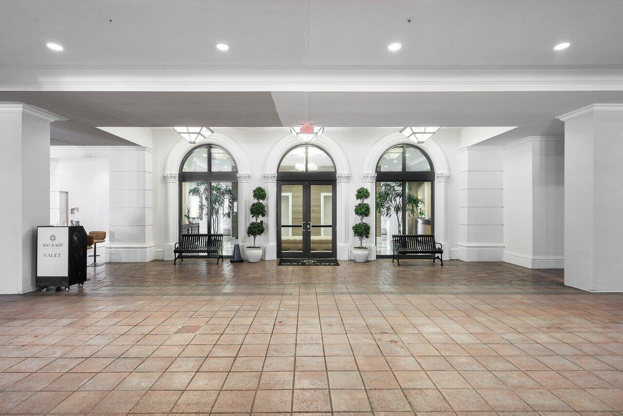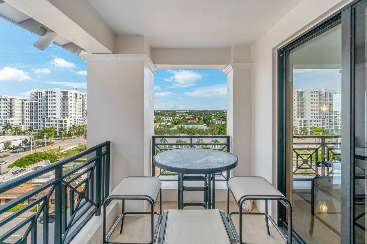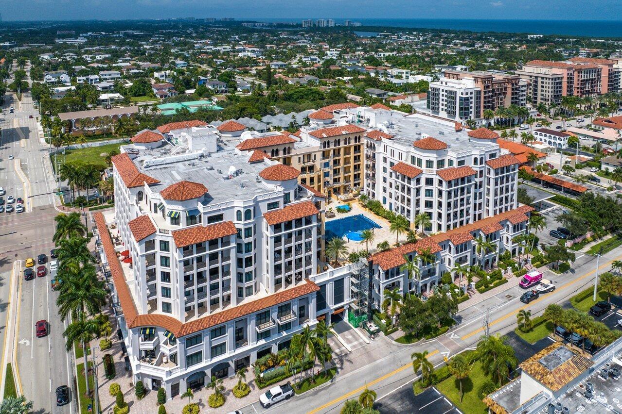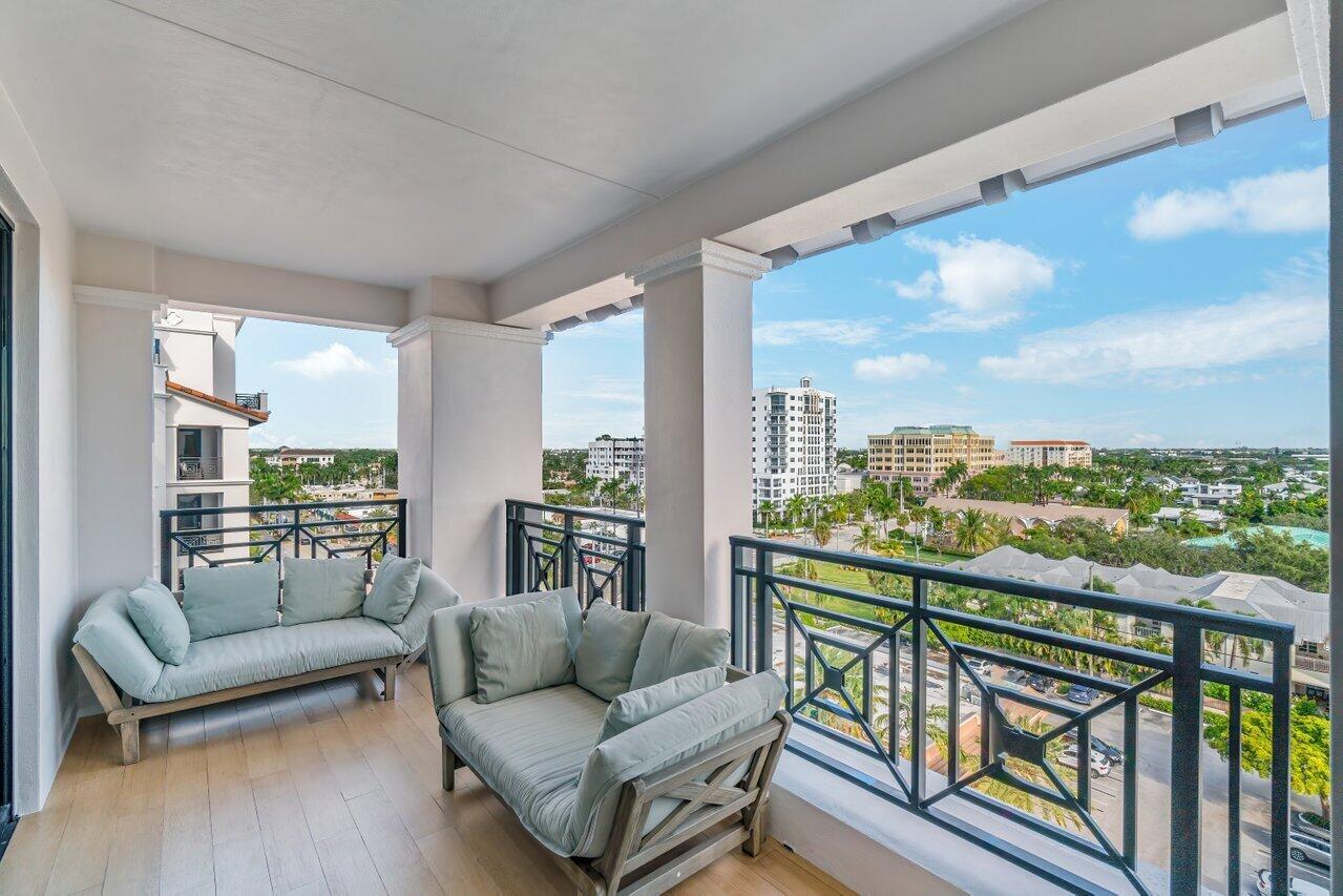WOW. Lower Corner Penthouse. Northwest exposure, there are beautiful views of the City to the Ocean. High ceilings, oversized balconies, and a split bedroom plan are some of the best features of this fantastic condo. Grand double door foyer, powder room, two bedrooms and an eat-in-kitchen. The master suite features 2 bathrooms and 2 walk-in closets. Available furnished. 2 Parking spaces by the elevator. Located on the corner of Mizner Blvd and Palmetto Park Road this is a fantastic walkable location. Steps from Mizner Park, Royal Palm Place, Shops and Restaurants on East Palmetto and The Boca Raton Beach. The New Bright Line Station is also in walking distance.