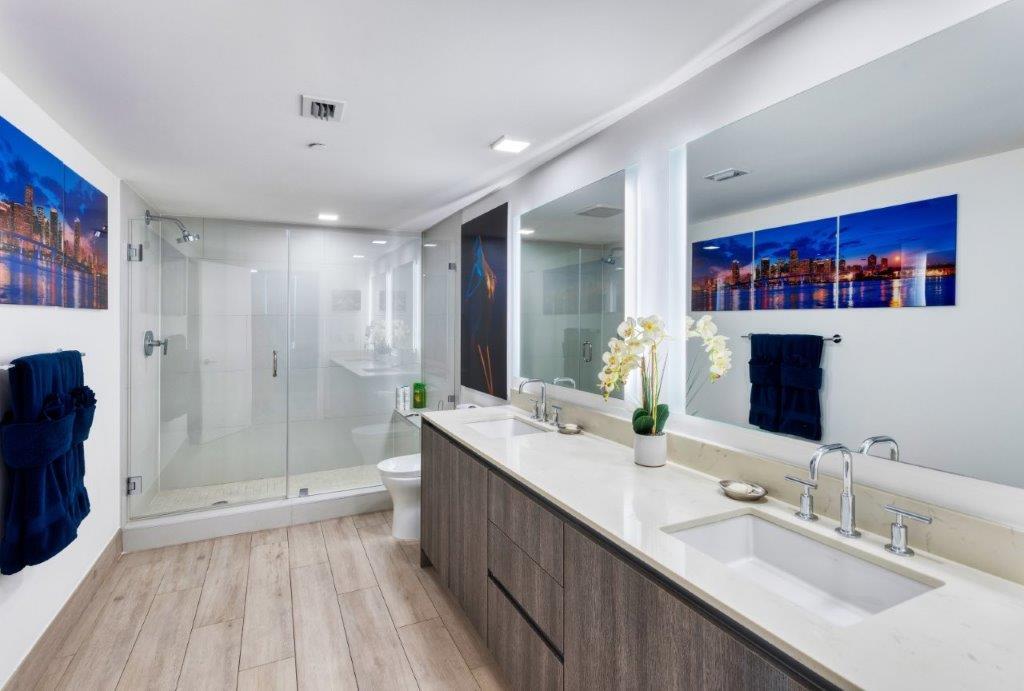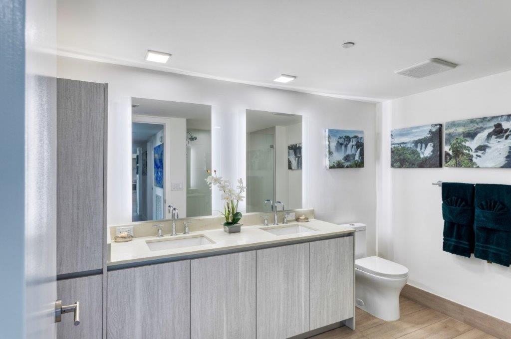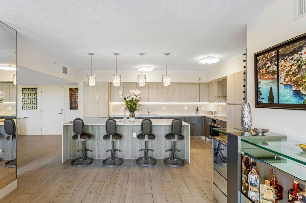 Unique, extra-large, combined-two-unit condominium at '11 First Delray' is ideally located in Delray Beach's SofA (South of Atlantic) district, one block from Downtown's vibrant Atlantic Avenue with its arts and entertainment offerings interspersed with fine dining establishments, cafes and bars. Custom details include a media center, wine racks, closet fittings, lighting and tiled balconies.