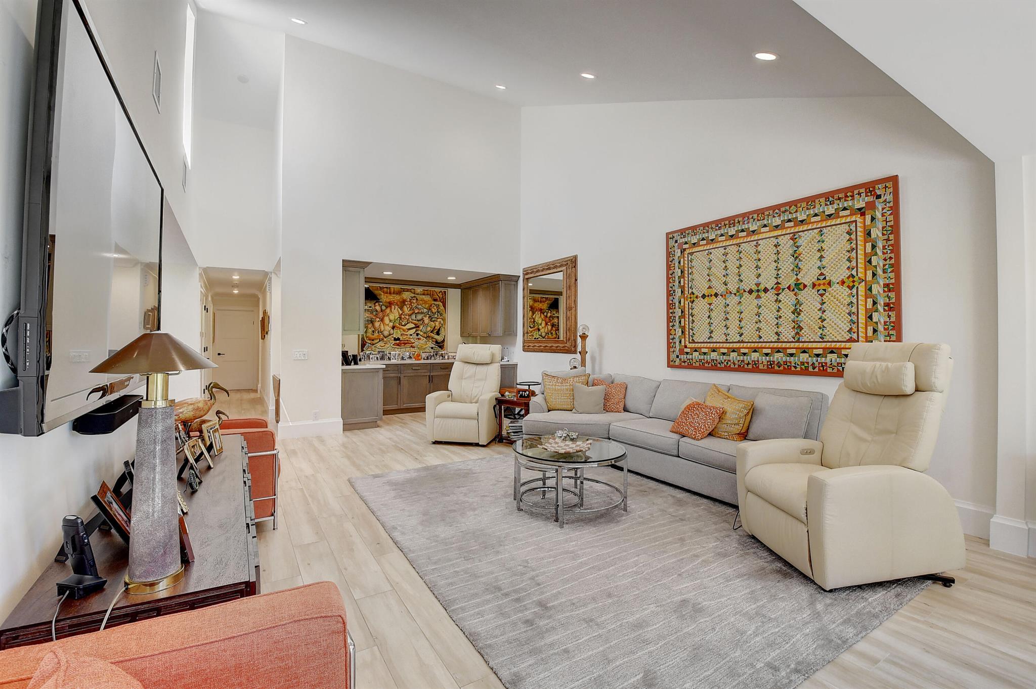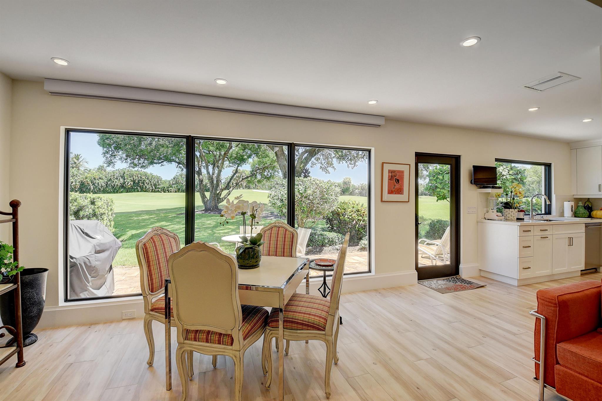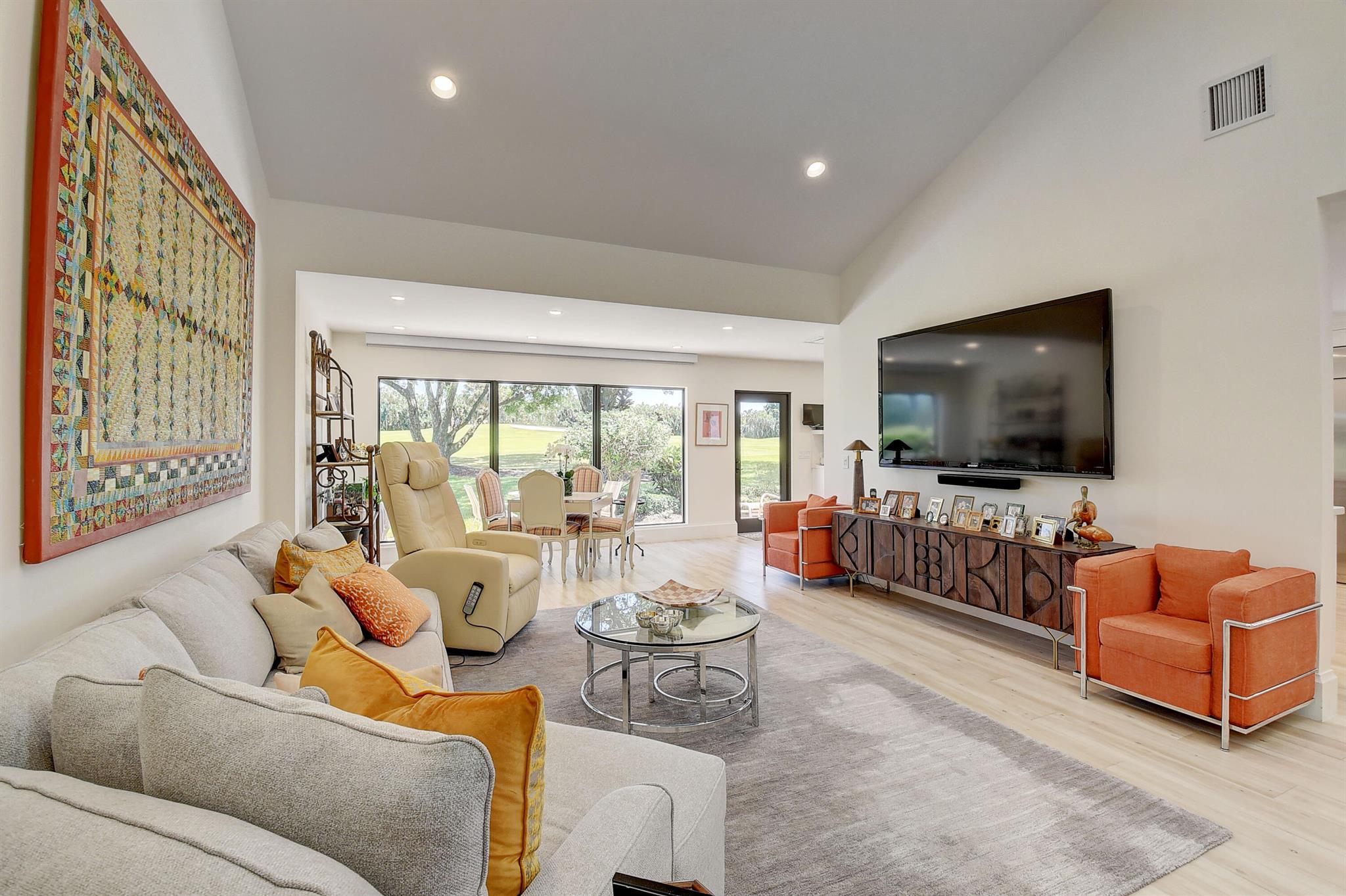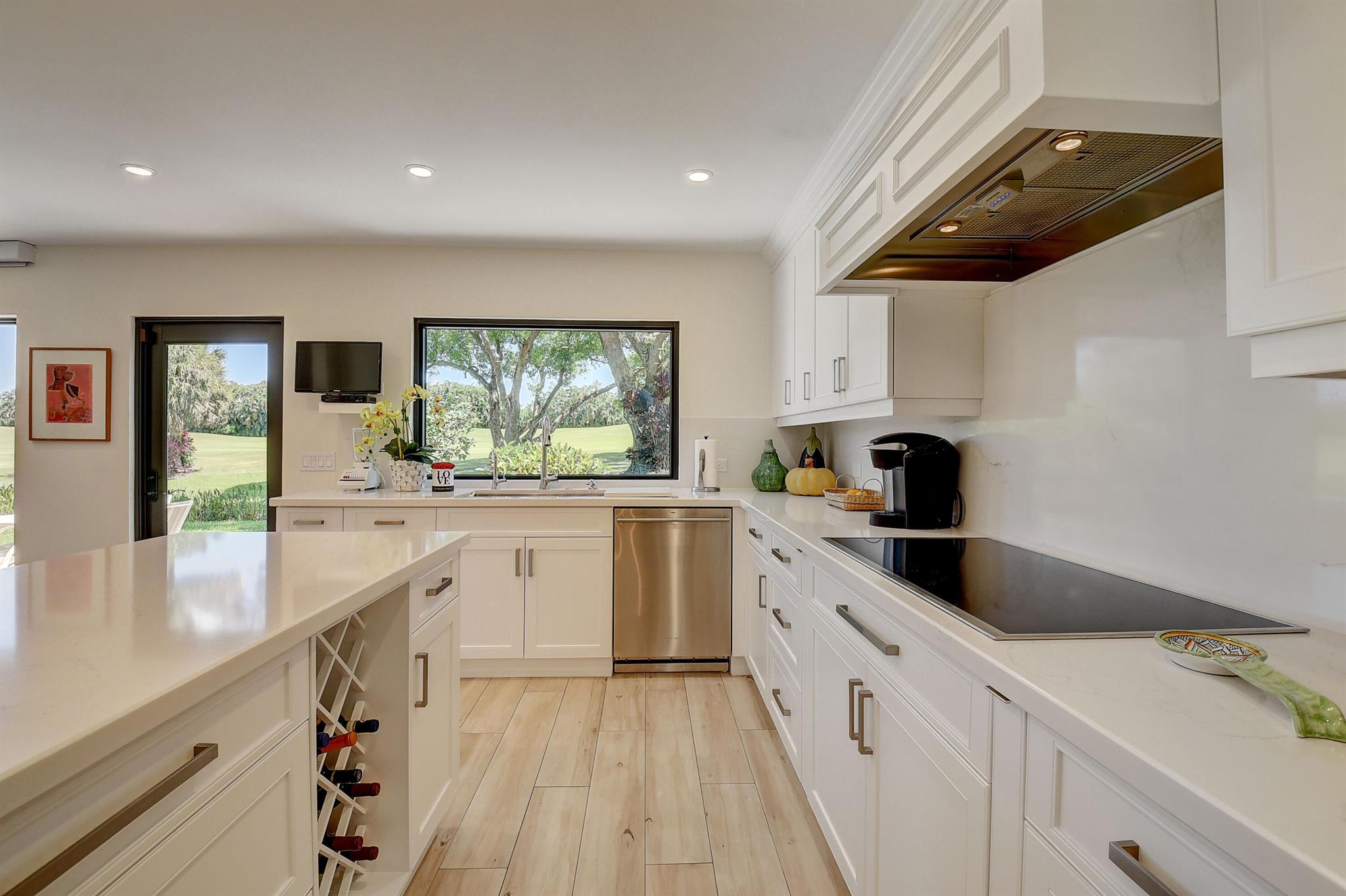 Architecturally designed & renovated 3 bed, 2 bath home on a beautiful golf lot is now available. A fabulous contemporary renovation combined with a forever view make this home so desirable. This special home has the finest decorator finishings and upgrades. The open floorplan features a spacious kitchen with a large island & dining room. The living room has a wonderful bar and serving area to host intimate or large parties. In the primary bedroom there is a large walk-in closet and a separate linear closet. A beautiful primary bath completes the primary retreat. An air conditioned garage with a coat closet and additional storage space will accommodate a car and golf cart. Impact windows and doors complete the package. ~Imagine life inside the Nation's #1 Private Residential Country Club!