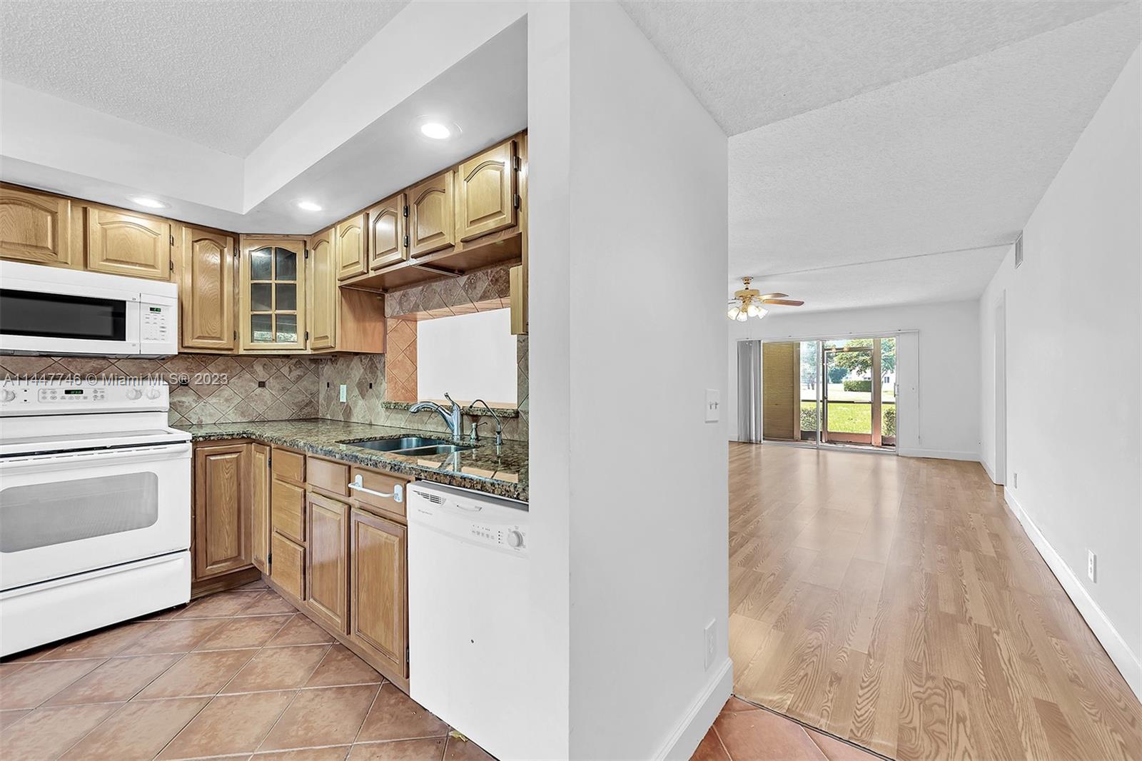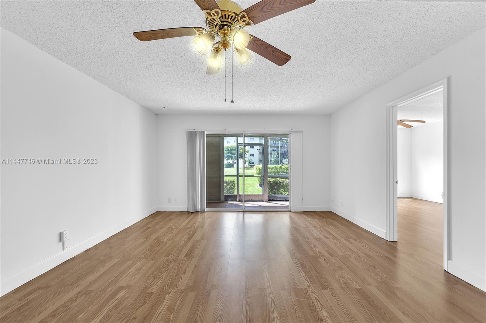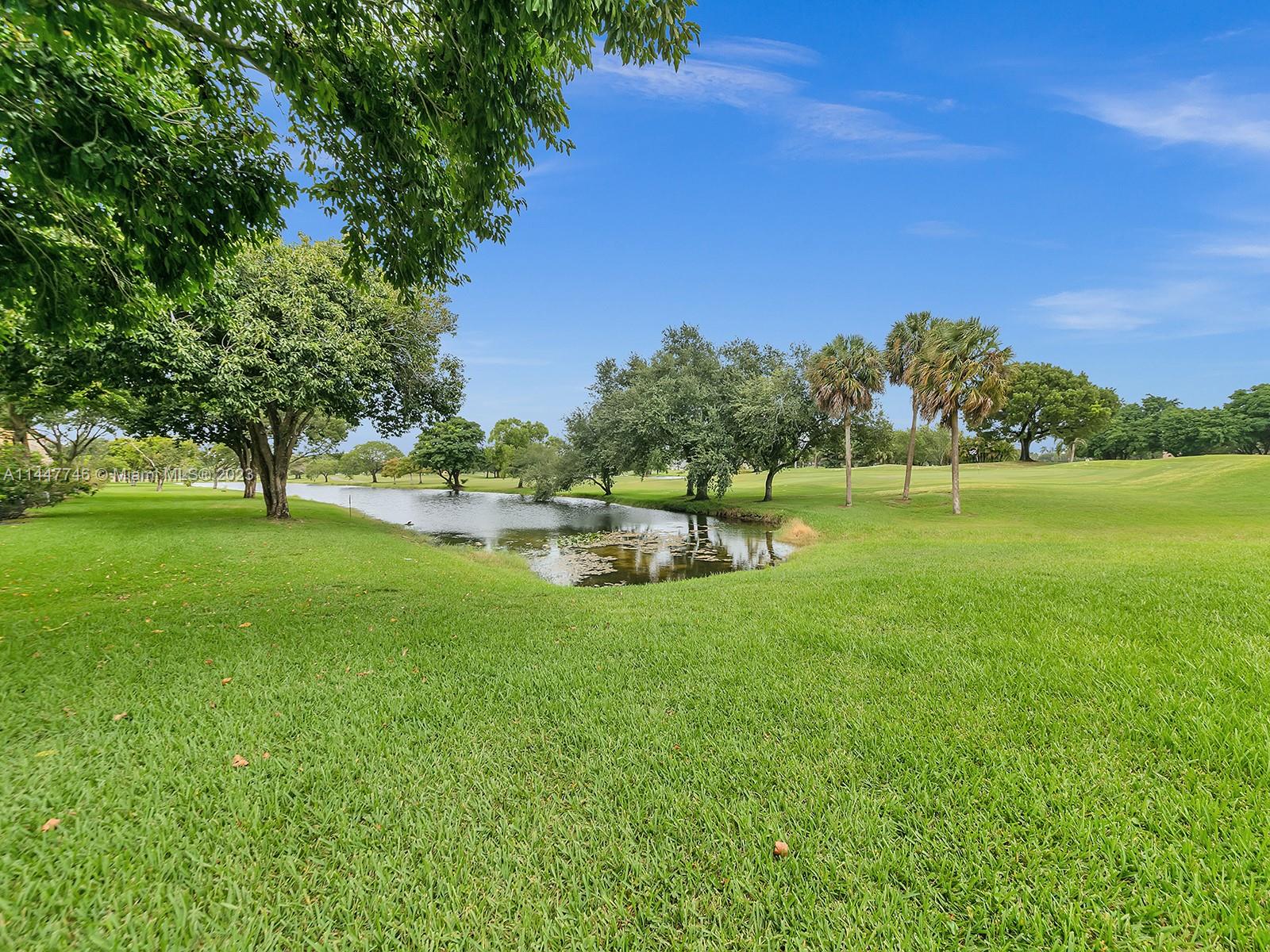 Enjoy the beautiful golf view in this spacious 2 bedrooms and 2 full baths unit, with neutral and light colors, modern flooring, wonderful chandeliers and ready to move in! Located on the first floor of the beautiful resort-style community of Century Village with an amazing clubhouse, fitness center, pool, pickle ball, bus service, tennis courts, lakes, walk jogs, theater, grocery store and much more! Association includes Cable, internet, water sewer, trash and much more. TOO many to mention!