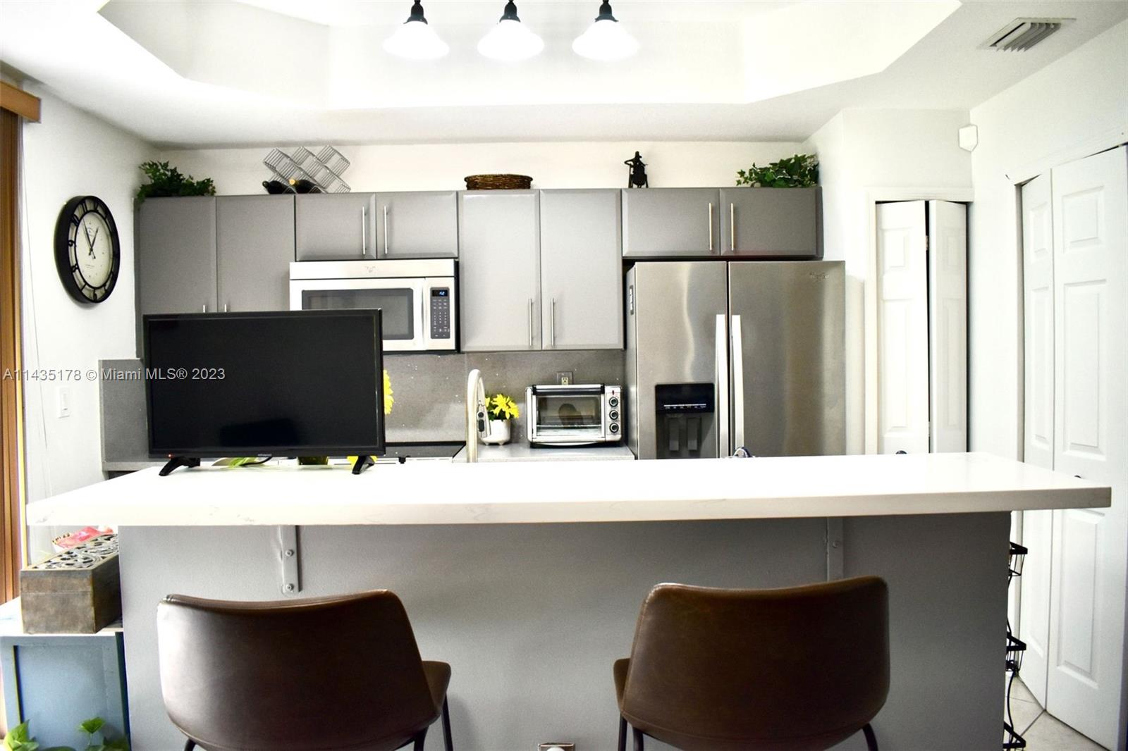 GATED MEDITERRANEAN STYLED COMMUNITY THAT IS WELL KEPT! IMMACULATE TOWN HOME WITH WOODEN FLOORS & UPGRADED KITCHEN CABINETS AND COUNTERTOPS. KITCHEN INCLUDED STAINLESS STEEL RANGE, FRIDGE, MICROWAVE & DISHWASHER. EVEN THE BATHROOMS HAVE BEEN UPGRADED! THE BACK PATIO HAS BEEN EXTENDED WITH BRICK PAVERS. THIS UNIT IS LOCATED JUST PAST THE GUARD GATE AND HAS TWO (2) ASSIGNED PARKING PLACES JUST IN FRONT. GREAT AREA, CENTRALLY LOCATED IN THE CITY OF PEMBROKE PINES CLOSE TO SCHOOLS AND SHOPPING CENTERS, FITNESS, EATERIES, THE CITY OF PEMBROKE PINES AND PEMBROKE LAKES MALL! THIS IS THE LARGER TOWNHOUSE MODEL WITH NO NEIGHBORS BEHIND. CONDO ASSN HAS RESERVES! ASSN MIN CR_650.