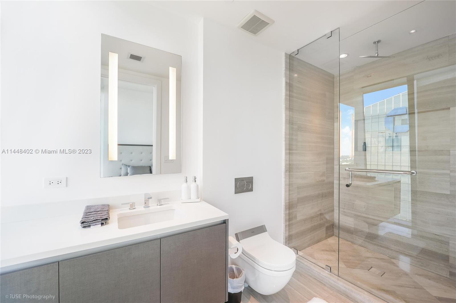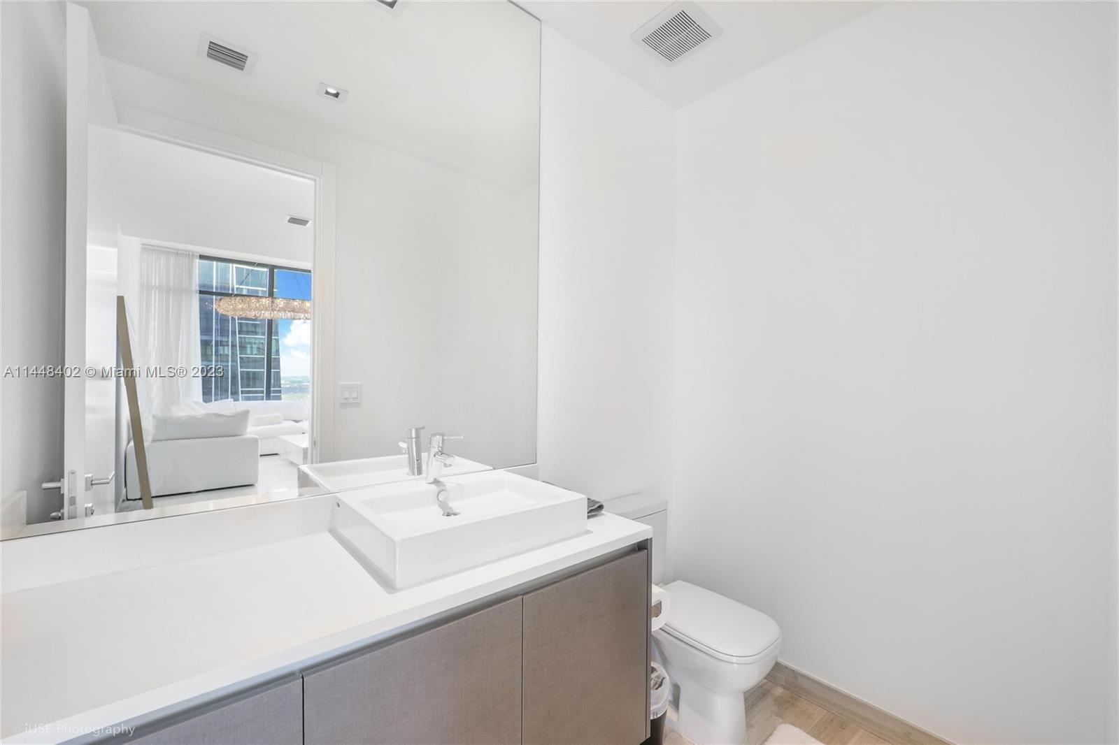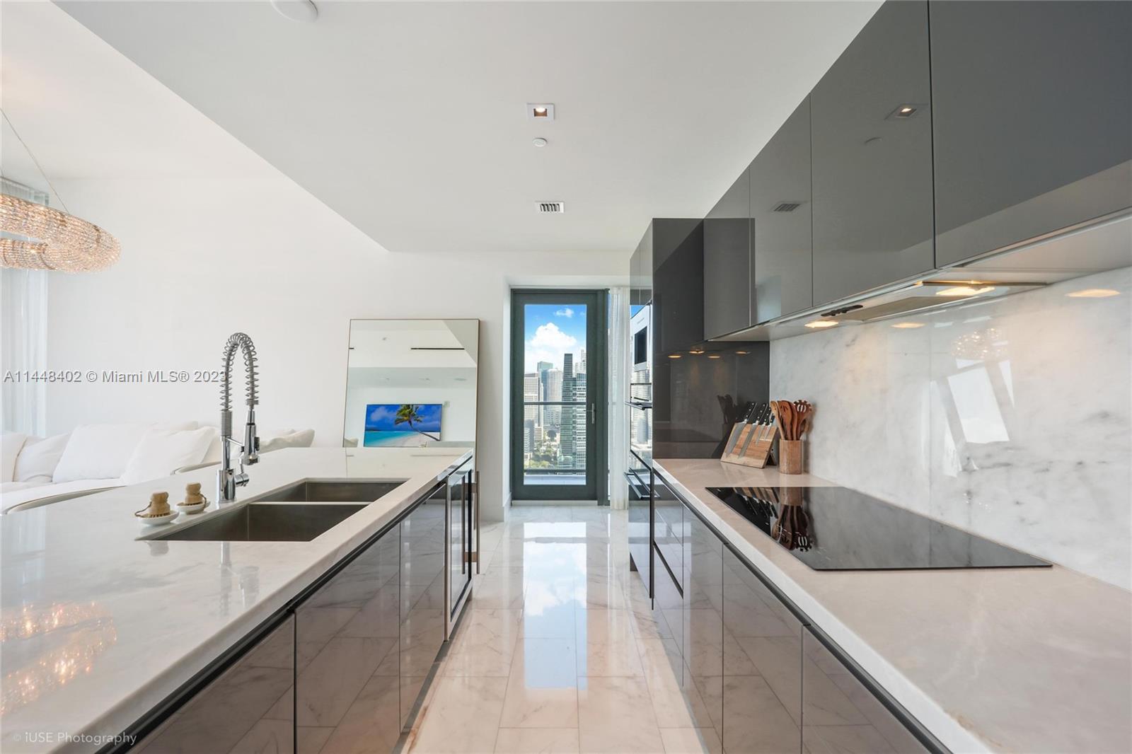 Located in the heart of what some say will soon eclipse Wall Street as the financial capital of the US, Brickell, this elegant and sophisticated high rise built in 2017, is a product of a collaboration between powerhouse developers JDS and PMG (111 W 57th, Waldorf Astoria Miami, etc.). This 43rd story corner 2bd 2.5ba boasts spectacular views of the bay, city skyline and sunsets, from its balcony & floor to ceiling windows. Enjoy a spacious living/dining and entertainment area, featuring a beautiful custom kitchen, appointed with Wolf and Sub-Zero appliances with views that seem to go on forever, from every room. 43rd floor at Echo has higher ceilings than all other floors in the building, making this unit feel larger than it is, with more dramatic views seen from the extra tall windows.