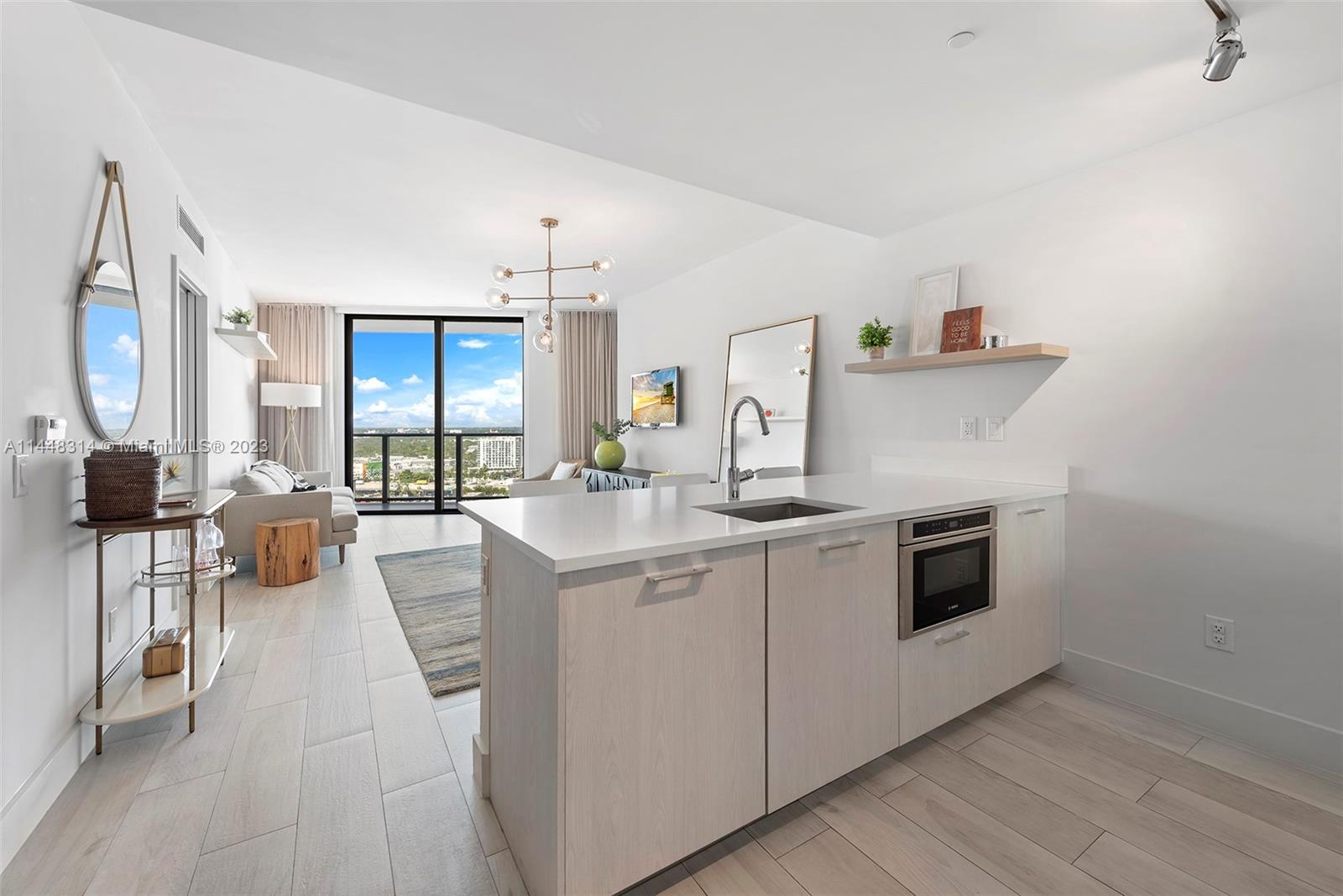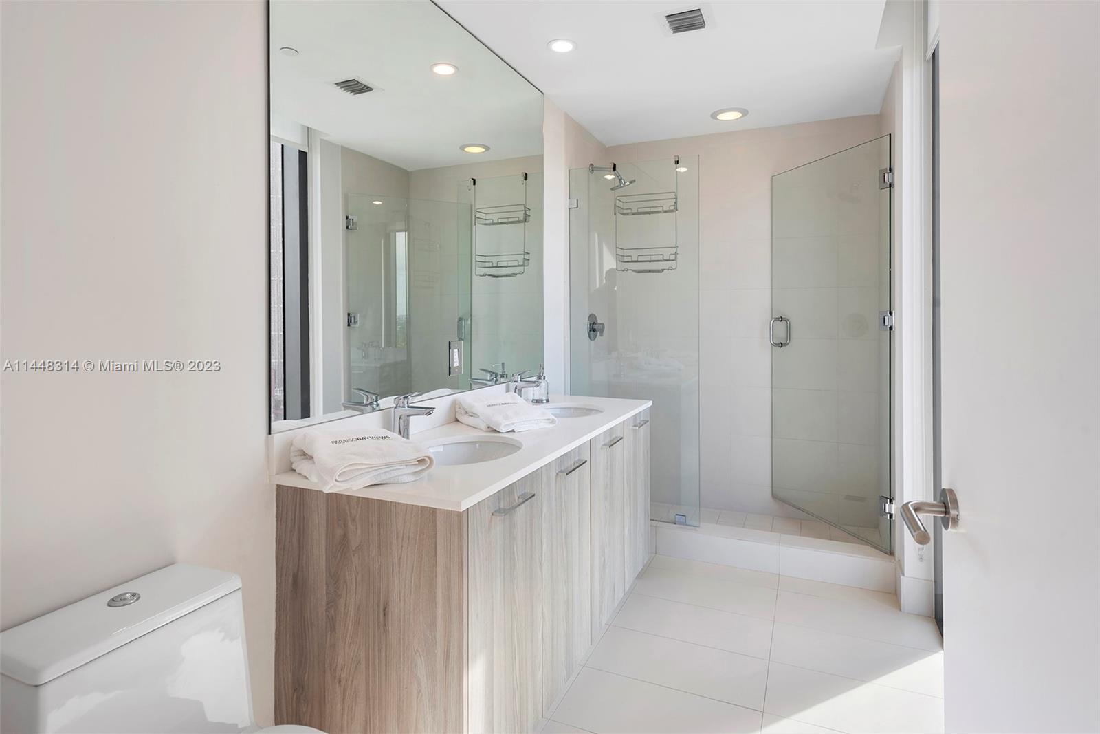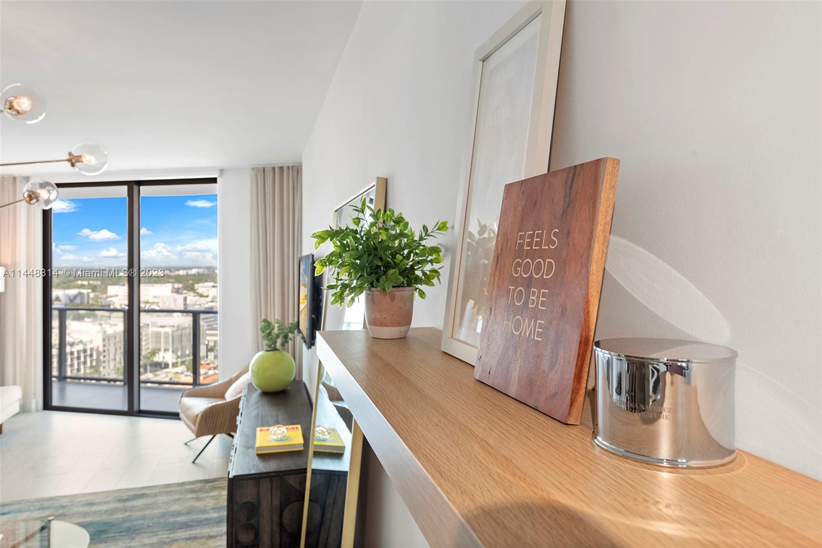 Tastefully designed & furnished 2 bed/2 bath unit on the 20th floor of Paraiso Bayviews in Edgewater with city & water view! Upgrades include built-in closets, wallpaper, porcelain tile floors, and electric blackouts in bedrooms. Enjoy luxurious amenities including 2 pools (5th floor & a rooftop pool), hot tub, spa, bbqs, tennis and paddle court, media room, kids room, game room and state-of-the-art gym. Walk to Paraiso's bayfront park with ladders down to the bay where you can go kayaking & paddle boarding, or savor delicious meal & drinks at the waterfront restaurant, Amara at Paraiso. Fantastic location only 5-10 minutes from Wynwood & the Design District and 15-20 Minutes to Miami Beach & the airport. One parking spot on the 3rd floor.