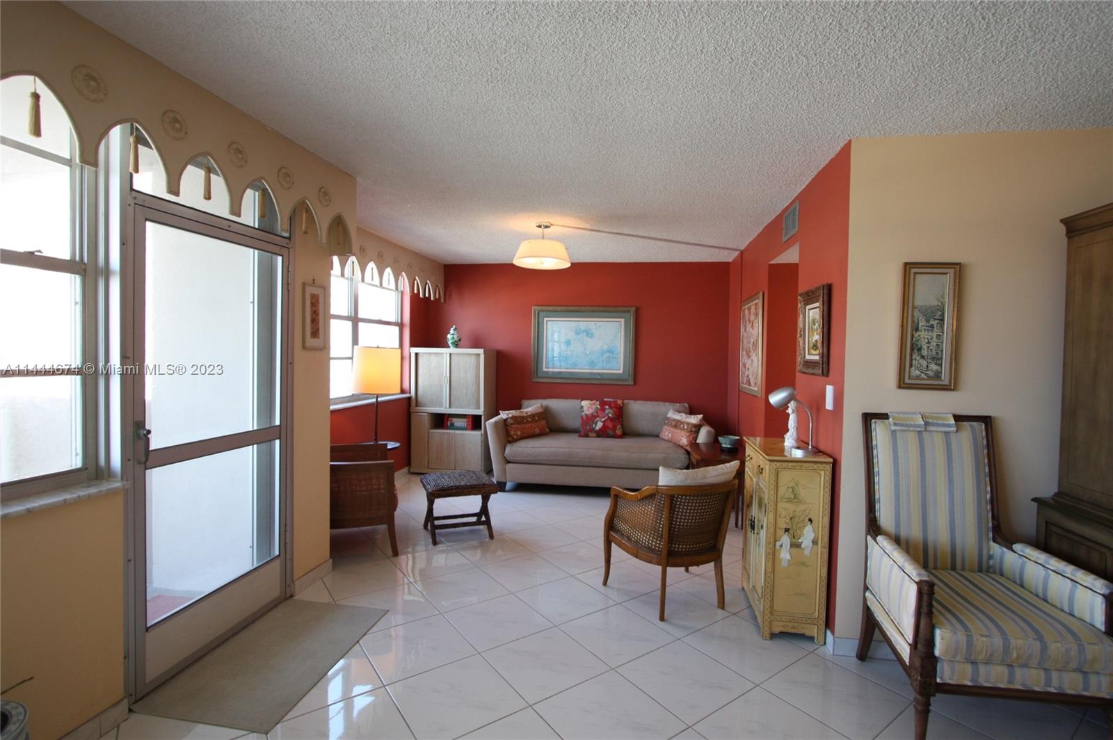 Located in the heart of Sunny Isles Beach, this condo unit has great Intracoastal, city & ocean views. Dining/living area opens up to a generous balcony. The modern kitchen has white cabinets, counters & appliances. The "convertible 2nd bedroom" is being used as a den. Lots of closets. The building is less than a half a mile from the beach and offers many amenities such as pool, gym, laundry on each floor. Building is undergoing a number of upgrades/renovations: Elevators have been modernized. Lobby is almost done. Pool and pool deck are next. Special assessments have been paid. Low maintenance includes hot water, cable, internet, parking, etc. Close to Aventura & Bal Harbour malls, lots of other shopping, restaurants. Wilton Towers Park is just next door. “A” rated K-8 school.