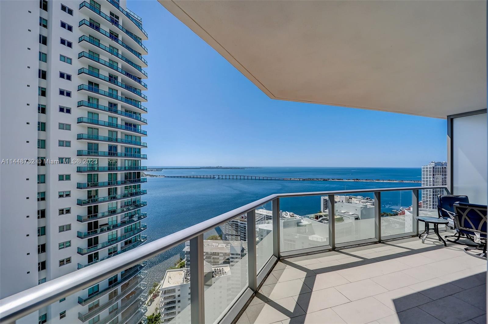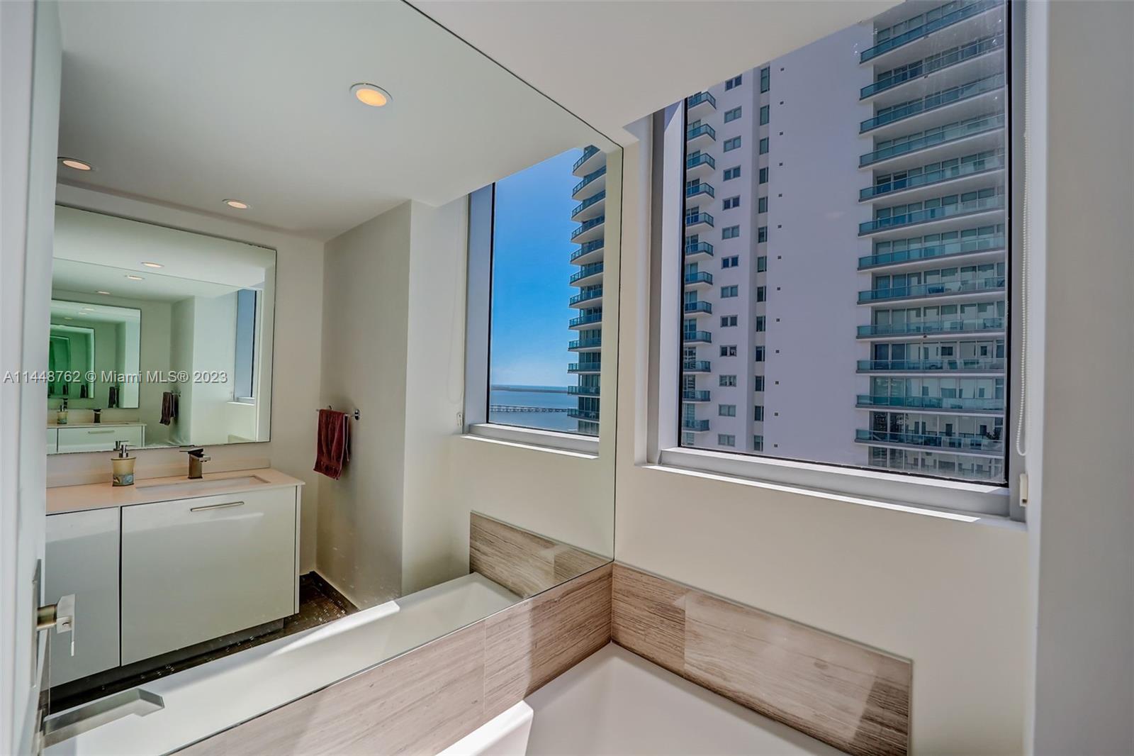 In Brickell, fantastic corner unit, 3 bedroom 2.5 half bath with Intercostal views. Luxury building with 5* amenities. The Unit comes fully built with white ceramic tile floors, custom closets, shades, painted glass kitchen backsplash, 9-foot ceilings, and a flow-through large terrace facing the bay to enjoy sunrises. Brickell House is a 46-story condo building that offers striking views of Biscayne Bay and Miami's skyline. State-of-the-art amenities: modern gym, spa, cabana pool, theater room, kids room,  roof-top pool with unobstructed bay & ocean views, 24 HR valet & concierge. Prime location, proximity to Bars, Restaurants, and Shops. Short-term rentals of 30 days could also make this an appealing investment.