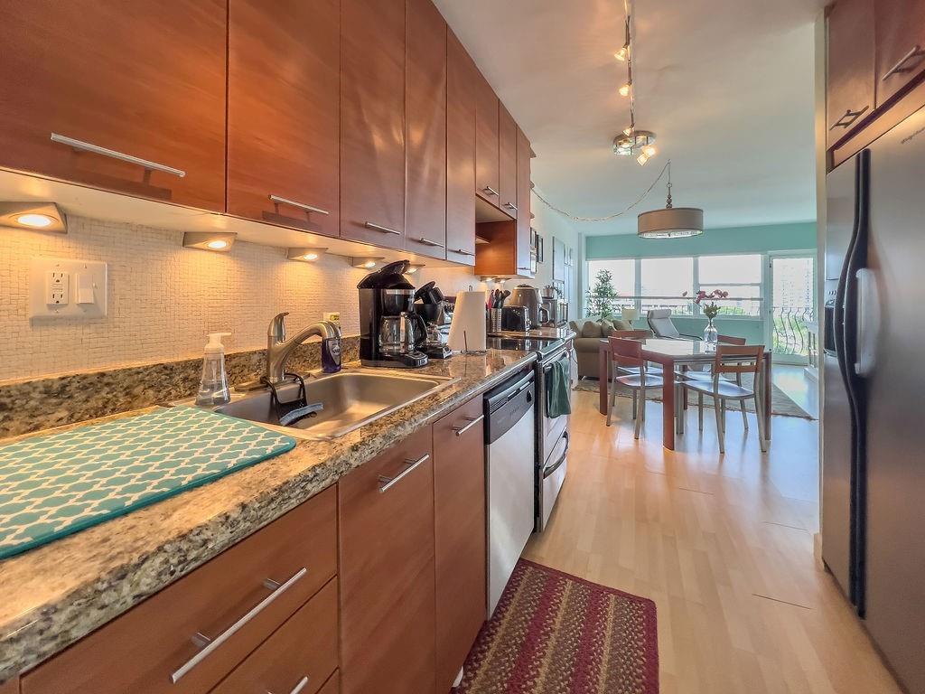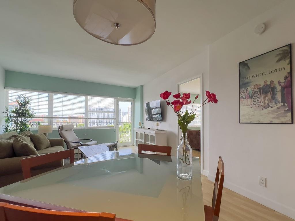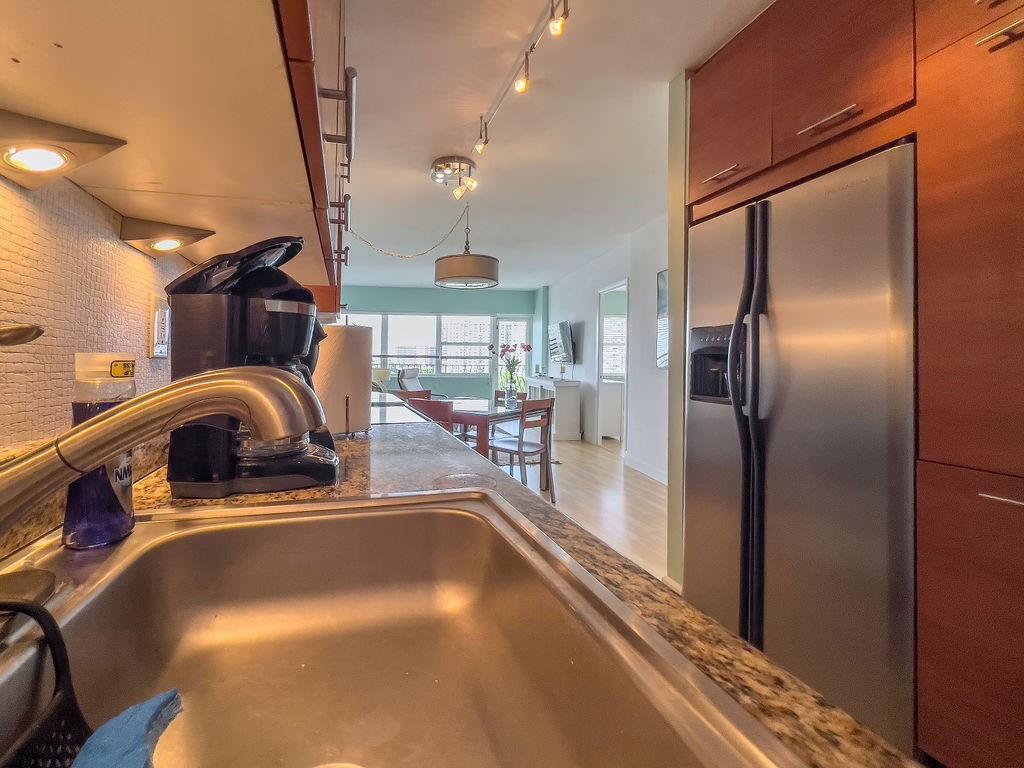 THIS REMARKABLE TOP FLOOR APARTMENT HOME IS JUST A FEW BLOCKS FROM THE ATLANTIC OCEAN. THE FOREVER VIEWS OF THE CITY, OCEAN AND INTRACOSTAL ARE JUST AS REMARKABLE. THIS RECENTLY REMODELED CONDO IS SO CLOSE TO THE BEACH. YOU CAN SMELL THE OCEAN. MANY RESTARANTS IN THAT AREA. UNIT MAY BE LEFT COMPLETELY FURNISHED THROUGHOUT WITH HI-END FURNISHINGS NEGOTIABLE!