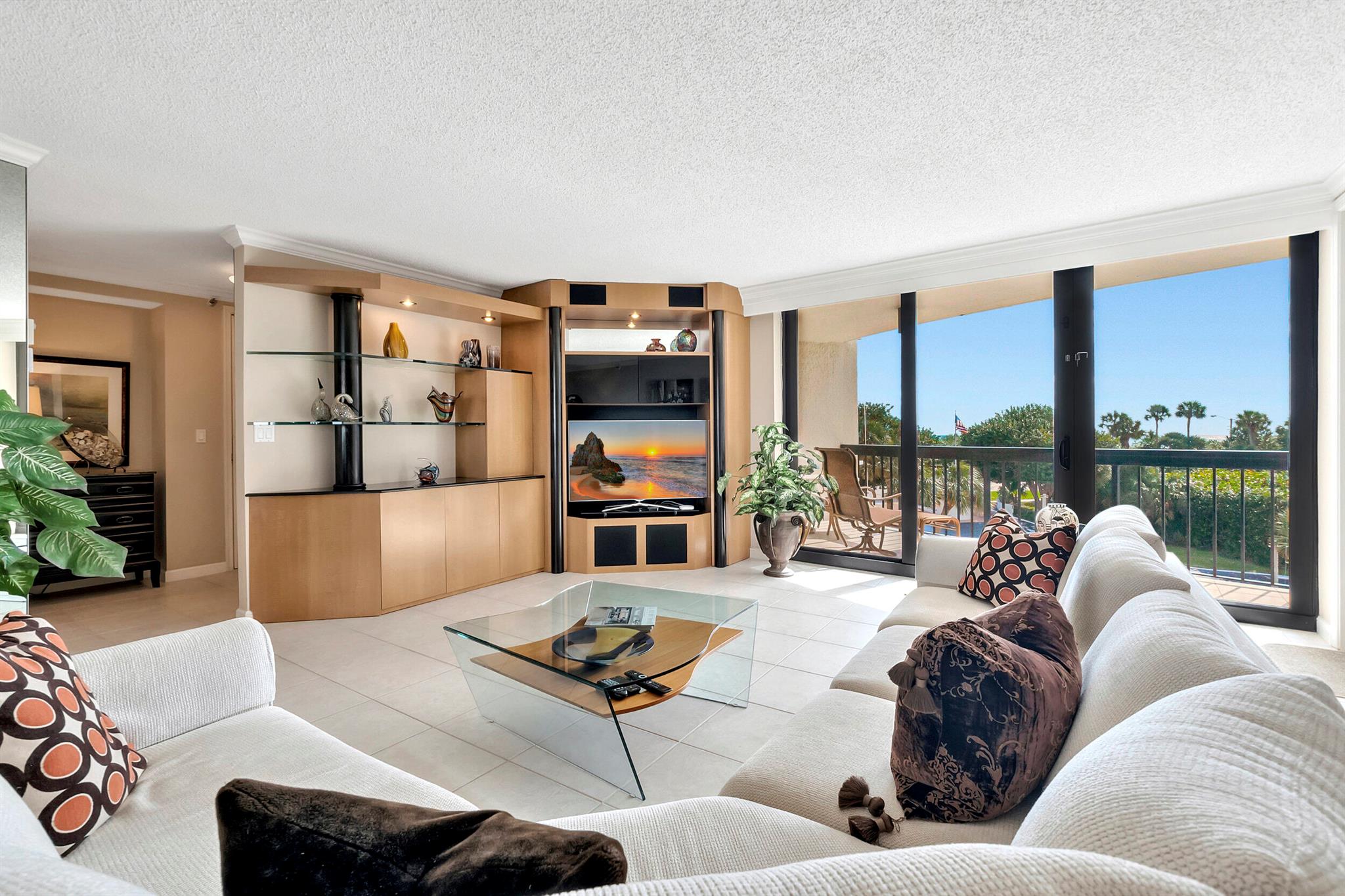 Very light and bright with marina, city and a touch of ocean views plus a private beach. Pristine condition. So spacious it feels more like a home than a condo. 3 huge, gorgeous balconies. 2 bedrooms, 2.1 baths. Fully outfitted closets. Offered turnkey or unfurnished. Up-to-date white kitchen. Tile throughout living areas and carpet in the bedrooms. Crown molding detailing. Lots of built-ins. Electric blinds in many locations. No pets. 1 assigned parking spot (#37) with plenty of guest parking. Enjoy pickle ball, the fitness center and the heated community pool.