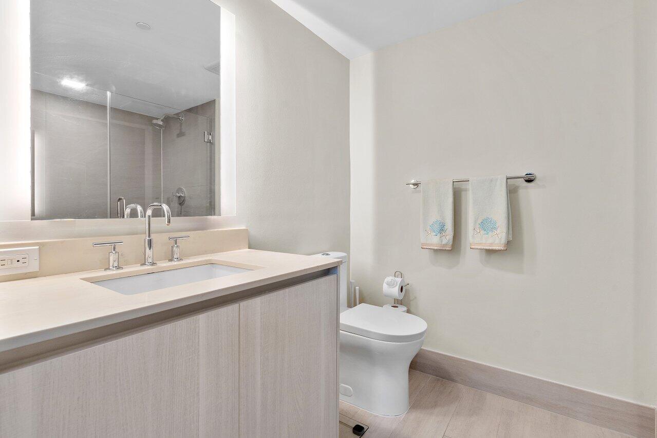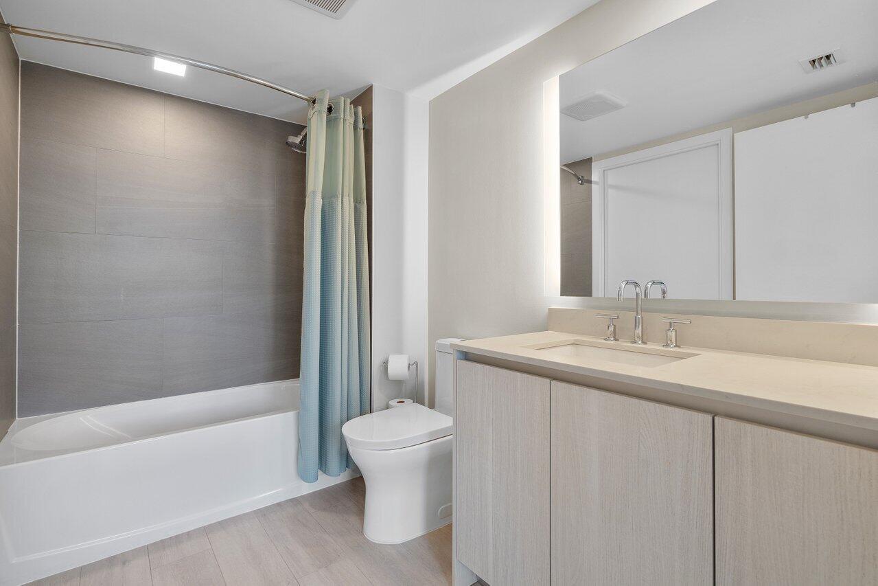 Welcome to 111 First Delray! Immerse yourself in the heart of Downtown Delray, surrounded by the finest amenities. This remarkable 2-bedroom, 2-bath condo, meticulously designed with a touch of artistry in every corner. This unit also comes with 2 storage units!!! Imbued with designer finishes throughout, this space emanates an air of refinement. This magnificent condo presents numerous additional upgrades. Walk upon porcelain tiles that mimic the warmth of wood, complementing the ambiance with a touch of natural elegance. Contemporary kitchen awaits, adorned with high-end cabinetry that exudes opulence. The quartz countertops add an element of sophistication, while built-in Bosch appliances provide the epitome of functionality. This unit comes with 2 storage uni