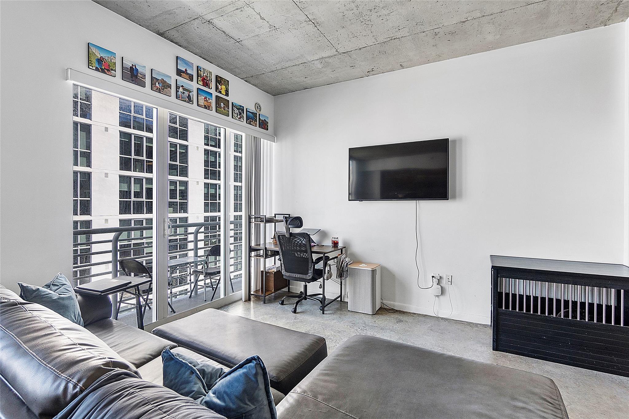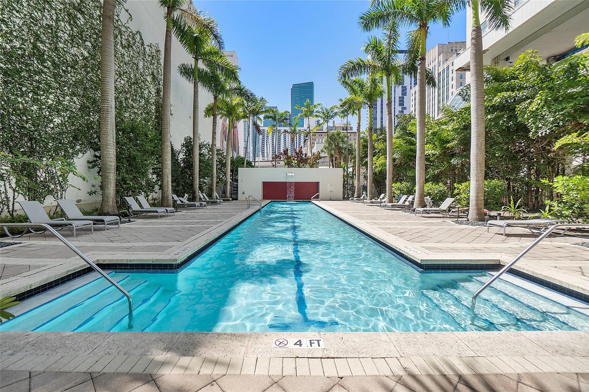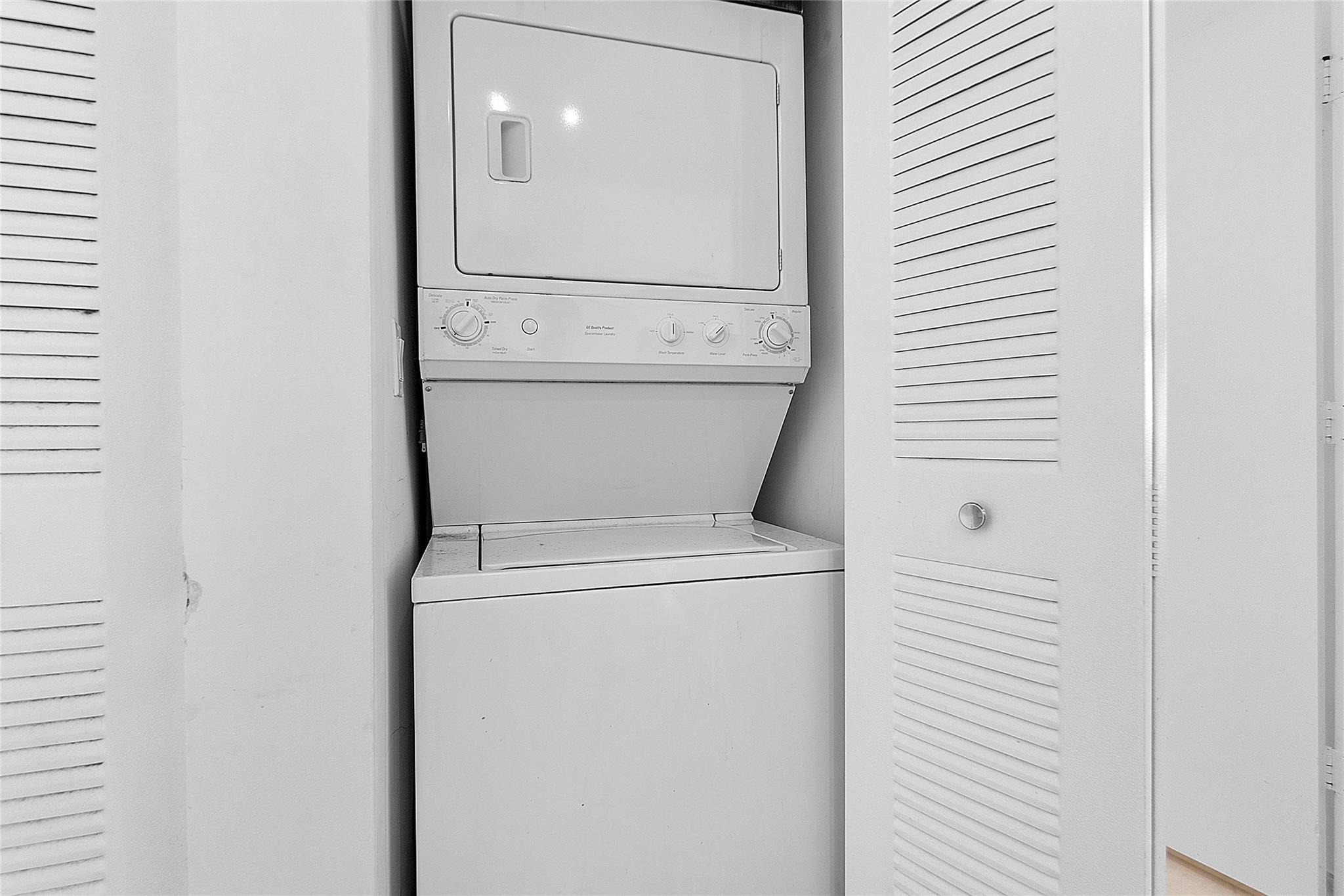 Beautiful unit on the 19th floor with private balcony. This very contemporary unit offers an open floor plan and 10-foot ceilings. Currently is set up as an open studio but it can easily be converted back to 1 bedroom by putting up wall. Open kitchen with stainless steel appliances and washer and dryer in the unit. Building offers 24-hour front desk attendant, rec room with pool table, roof top pool and lap pool on the ground floor, gym. DON’T MISS THIS GREAT OPPORTUNITY!!! Building is walking distance to lots of restaurants, shopping and entertainment. The building is also going through an extensive renovation and the special assessment has been paid in full.