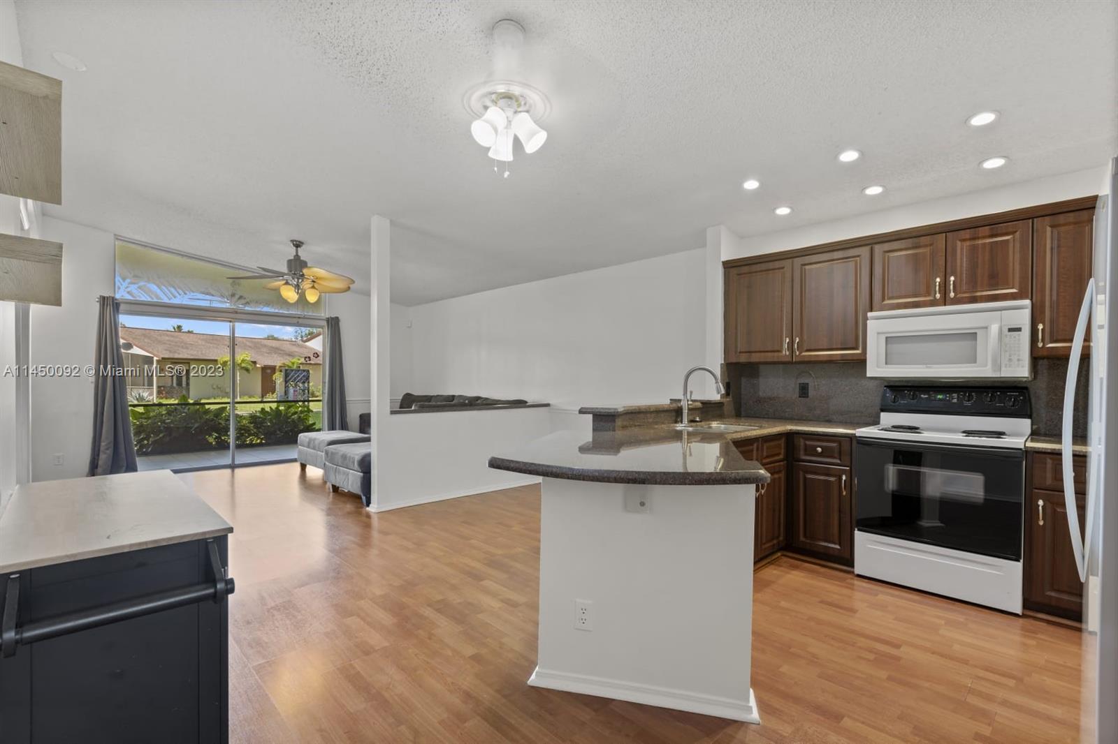 Exquisitely 3-Bedroom, 2-Bathroom Villa in Picturesque West Boca Raton. This Home Boasts an Inviting Open Floor Concept, Showcasing Recently Redesigned Kitchen and Bathrooms. Gleaming Wood Laminate Flooring Throughout (No Carpet), Impeccably Designed Closets, and Convenient Accordion Shutters. The Kitchen Features Gorgeous Wood Cabinetry and Granite Countertops, Seamlessly Flowing into the Dining and Living Areas. The Generous 3-Way Split Floor Plan Provides Ample Space, Complemented by a Spacious Screened Patio and More. This Community Welcomes All Ages and is Pet-Friendly, Nestled in an Area with Highly Desirable Schools.