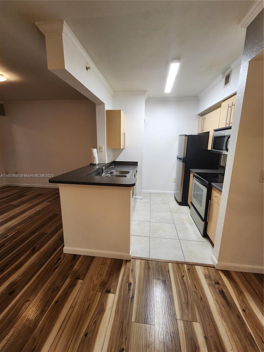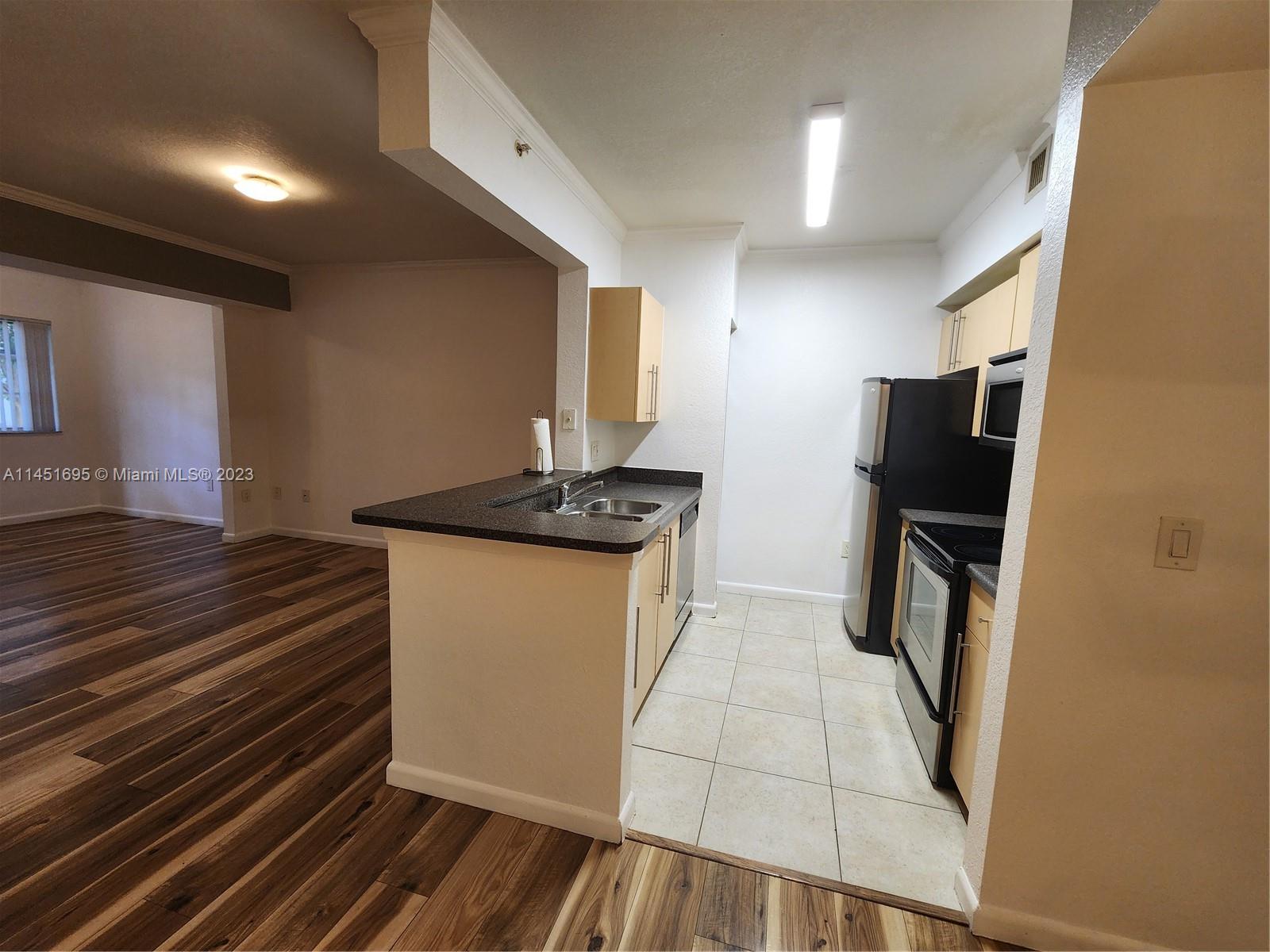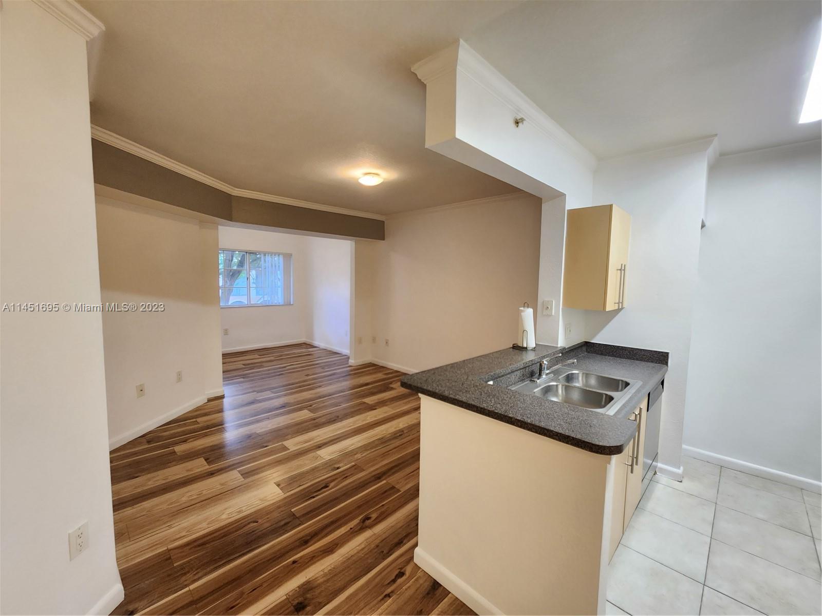 Gated, luxury one bedroom, one full bath. washer and dryer in the unit. community: two pools, tennis court. close to Library, shopping.