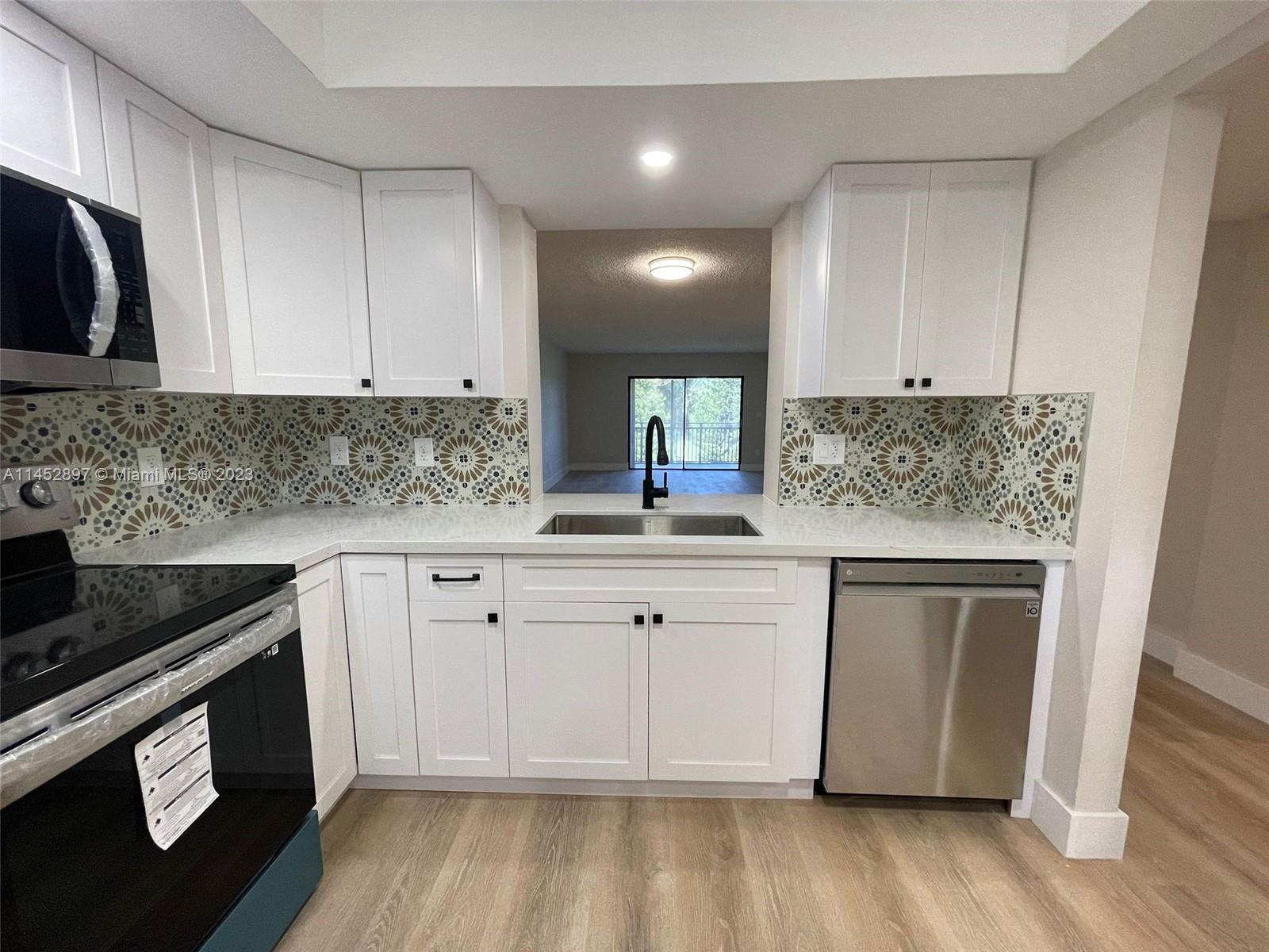 Beautiful renovated 2/2 move in ready condo in Weston! Washer & dryer in unit! Apartment has brand new waterproof flooring, new kitchen & kitchen lights, new stainless steel appliances, new water heater, new baseboards, bar area with brand new wine cooler, vanities, and paint that have all been done with the correct permits! Association covers basic cable and water! Amazing Clubhouse with pool, tennis court, & much more. Excellent A+ Schools in the area.