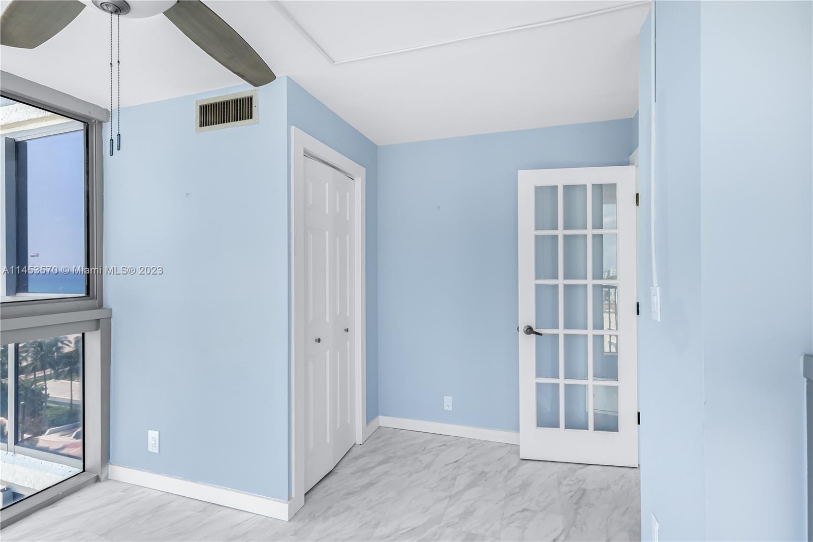 Seller is being relocated and must sell this dream home: Beautiful spacious high floor 2 bedroom 1 & 1/2 bath updated condo with ocean view and large balcony in newly remodeled oceanfront building. New impact floor to ceiling glass & modernized exterior already completed and new hallway updating nearly done. Brand new pool area coming too. Incredible floor plan with a second bedroom or den area that has direct views to the ocean. Spacious eat-in kitchen kitchen, updated bathrooms- in pristine condition ready to move right in. Great closet space including huge walk-in. Large balcony, central a/c, covered garage parking-this one really has it all. In perfectly located full-service oceanfront building w/beachside pool, large gym, community room, 24 hr security & more.