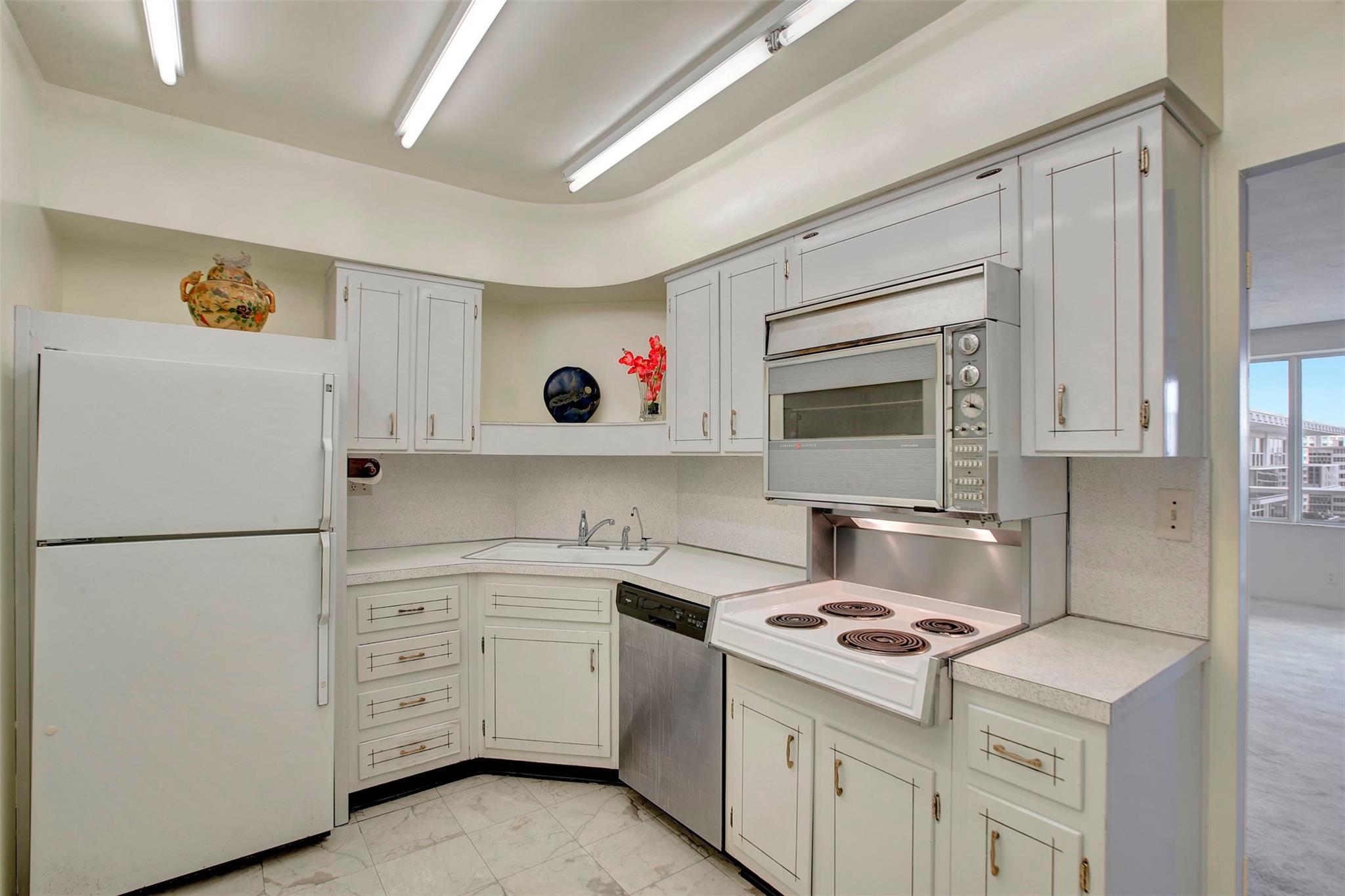 PENTHOUSE 1 bedroom DIRECT OCEAN VIEW. Next to the beach. Fully Funded reserves, no upcoming assessments, 40 year + 10 year building inspection passed. HUGE 800' floor plan with tons of closet space. Newer dishwasher, A/C, hot water heater. All Hurricane impact windows. $14 million+ upgrades in building completed this year with new roof, fully funded reserves and completed Safety Inspection from City of Fort Lauderdale. 55+ community, cash only, no renting. Very walkable community with free city golf cart and electric car shuttles for local area. In the middle of everything, surrounded by restaurants, retail shopping, grocery stores, entertainment, golf, boating. Quick trip to airport, cruise terminals. Come enjoy the good life.
