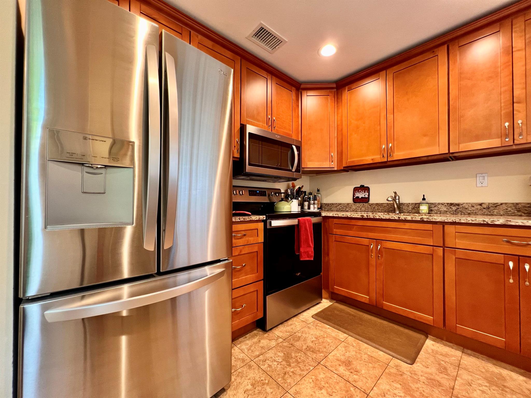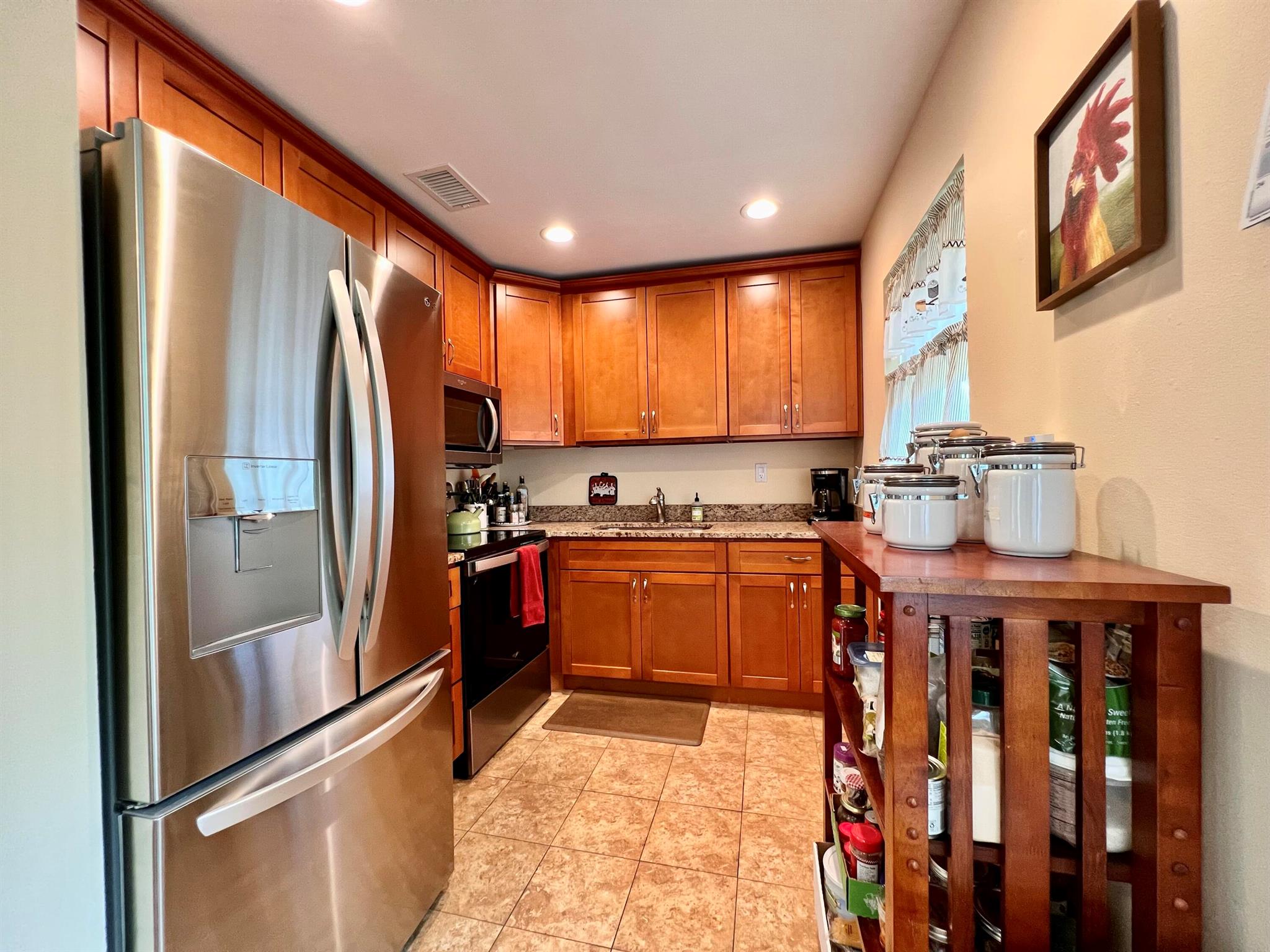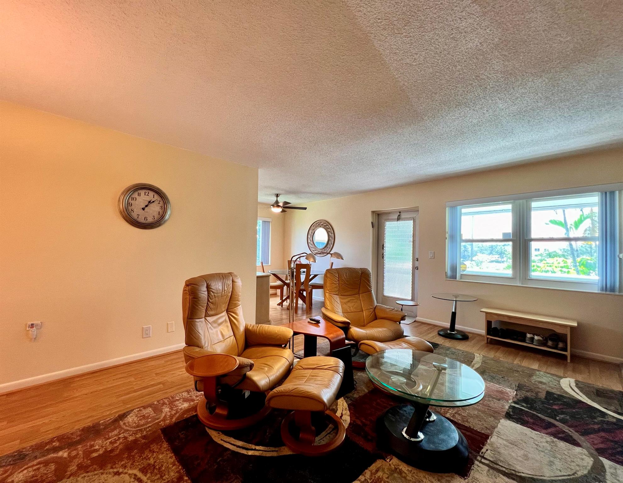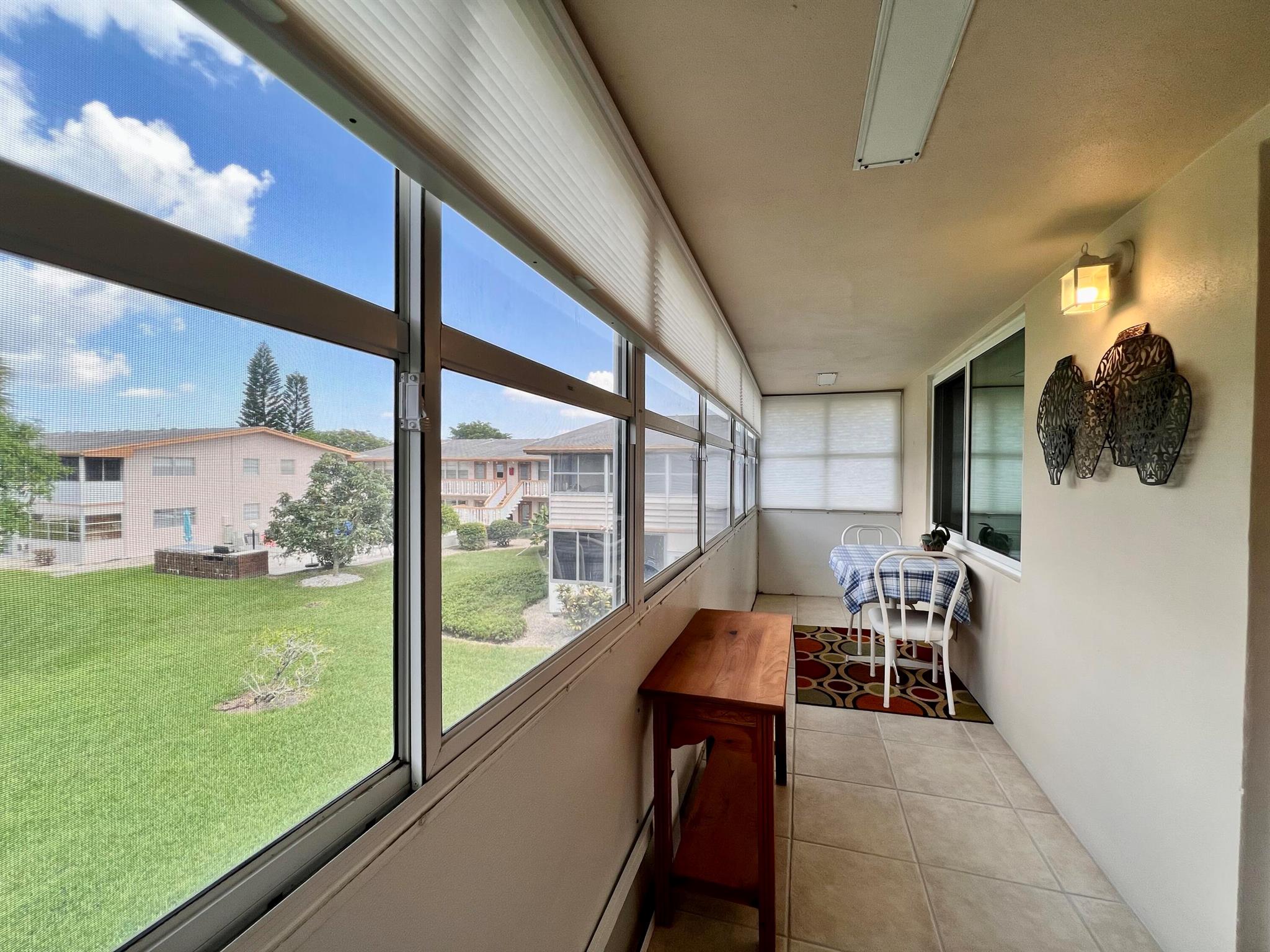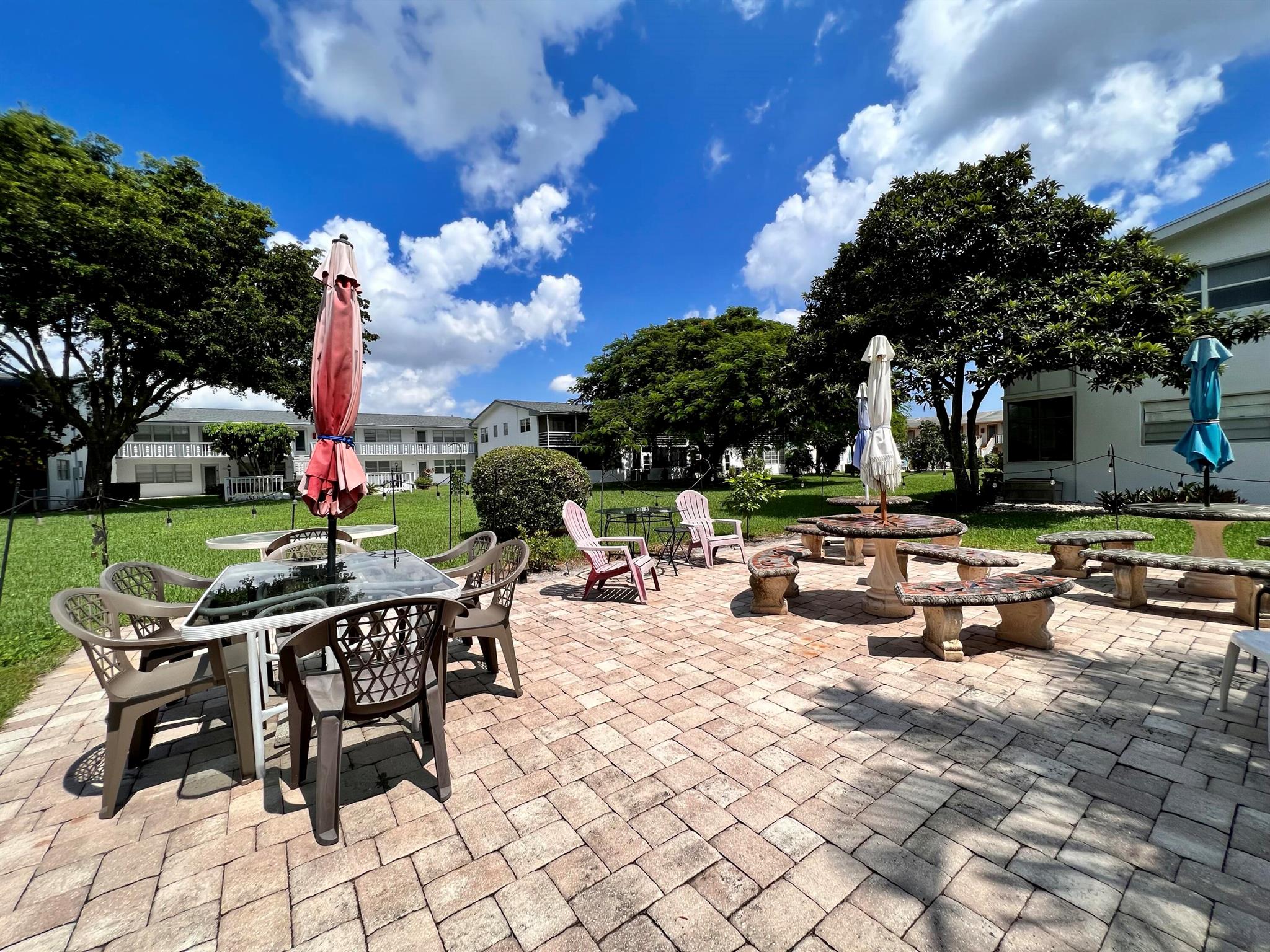 Prepare To Be Impressed! Updated & Beautifully Maintained 2/1.5 CORNER End Unit in 55+ Century Village. Quiet & Private Location Yet Convenient to The Main Clubhouse. Pretty Updated Kitchen W/ Cherry Cabinets, Granite Counters, Upgraded Stainless Appliances, & High-Hat Lighting. Full Bath Refreshed W/Updated Vanity & New Tub Surround. Long-Enclosed Lanai Offers Extra Space, Tile Flooring, Extra Wall Insulation, and New Window Treatments. Natural Wood Look Laminate Flooring Flows Throughout. Freshly Painted (2023) Impact Windows (2022). Well Run Pet Friendly Building W/ New Roof (2023), Reserves, Updated Laundry Rooms, Fruit Trees, & Private Resident Patio. Sold AS IS and With Tasteful Designer Furniture & Contents (some items excluded). Century Village is a 55+ community with so much to