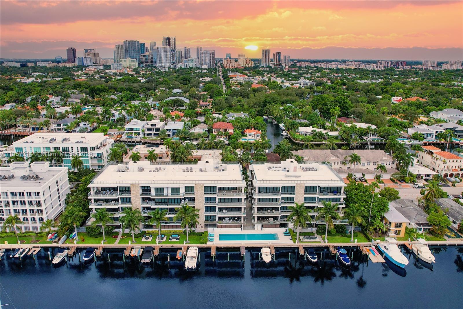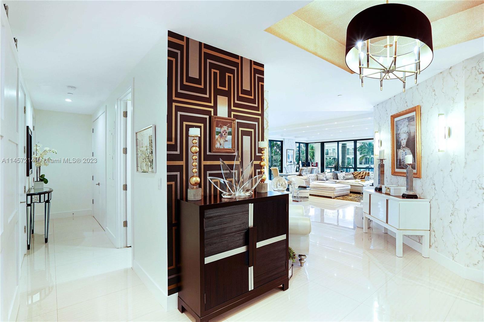 Aquavita is a contemporary, luxury boutique waterfront building with no fixed bridges to the ocean! Private line elevator leads to this exquisite Versace inspired, designer decorated corner residence offering 3 bedrooms & 3.5 baths. A dramatic foyer opens to a flow-through floor plan, with volume ceilings, porcelain tile throughout, & seamlessly integrates with the 990 ft² wraparound terrace! Top-of-the-line Wolf, SubZero appliances, floor-to-ceiling windows and sliders, custom lighting, window treatments, variety of opulent wall treatments. Primary retreat with spa-like ensuite, 2 walk-in closets, terrace. Pet-friendly building provides wide array of amenities; private/owned 50' boat slip, 65' saltwater pool, cabanas, kayak storage, gym, 2 spots in gated/covered garage with guest parking.
