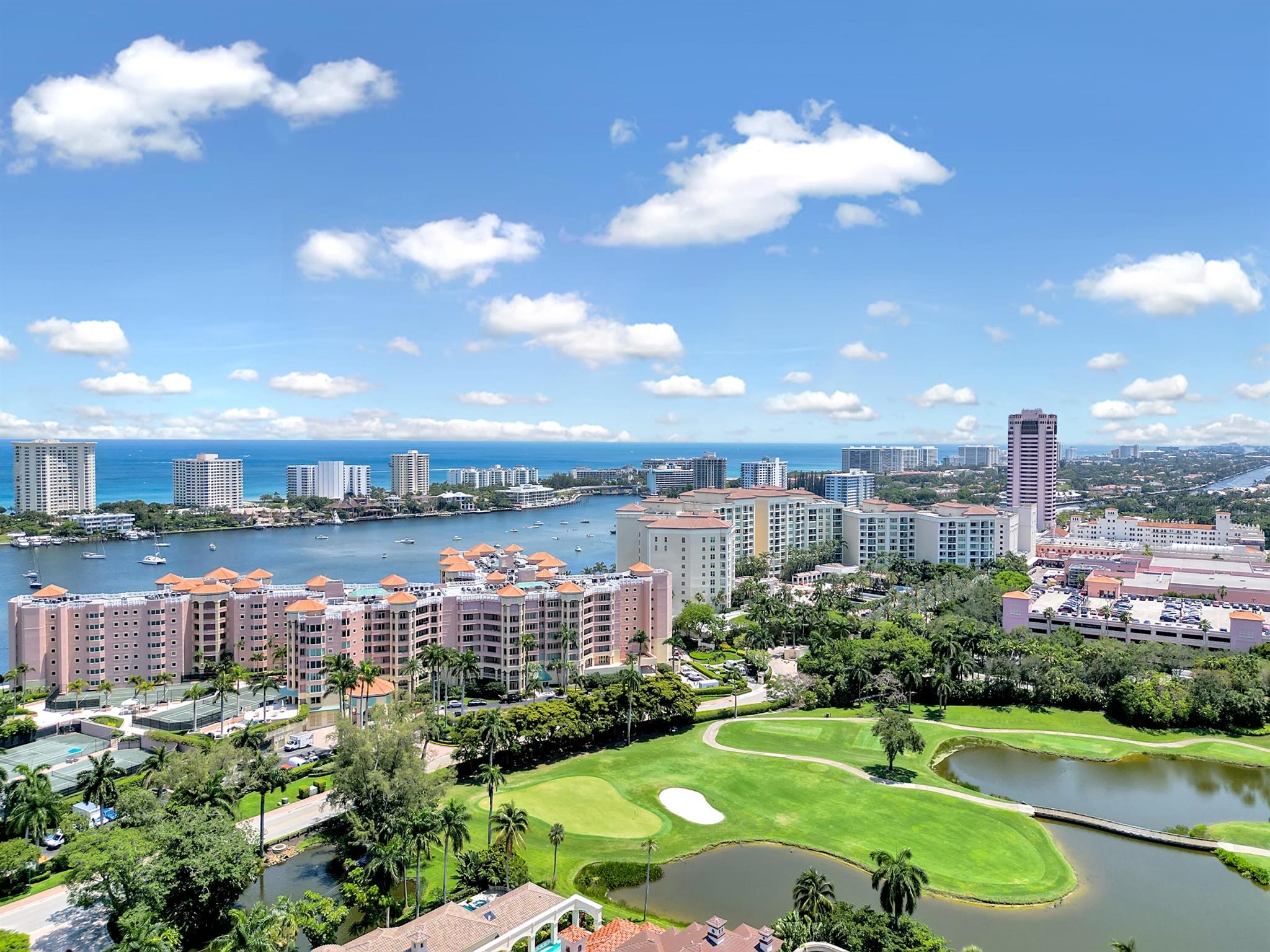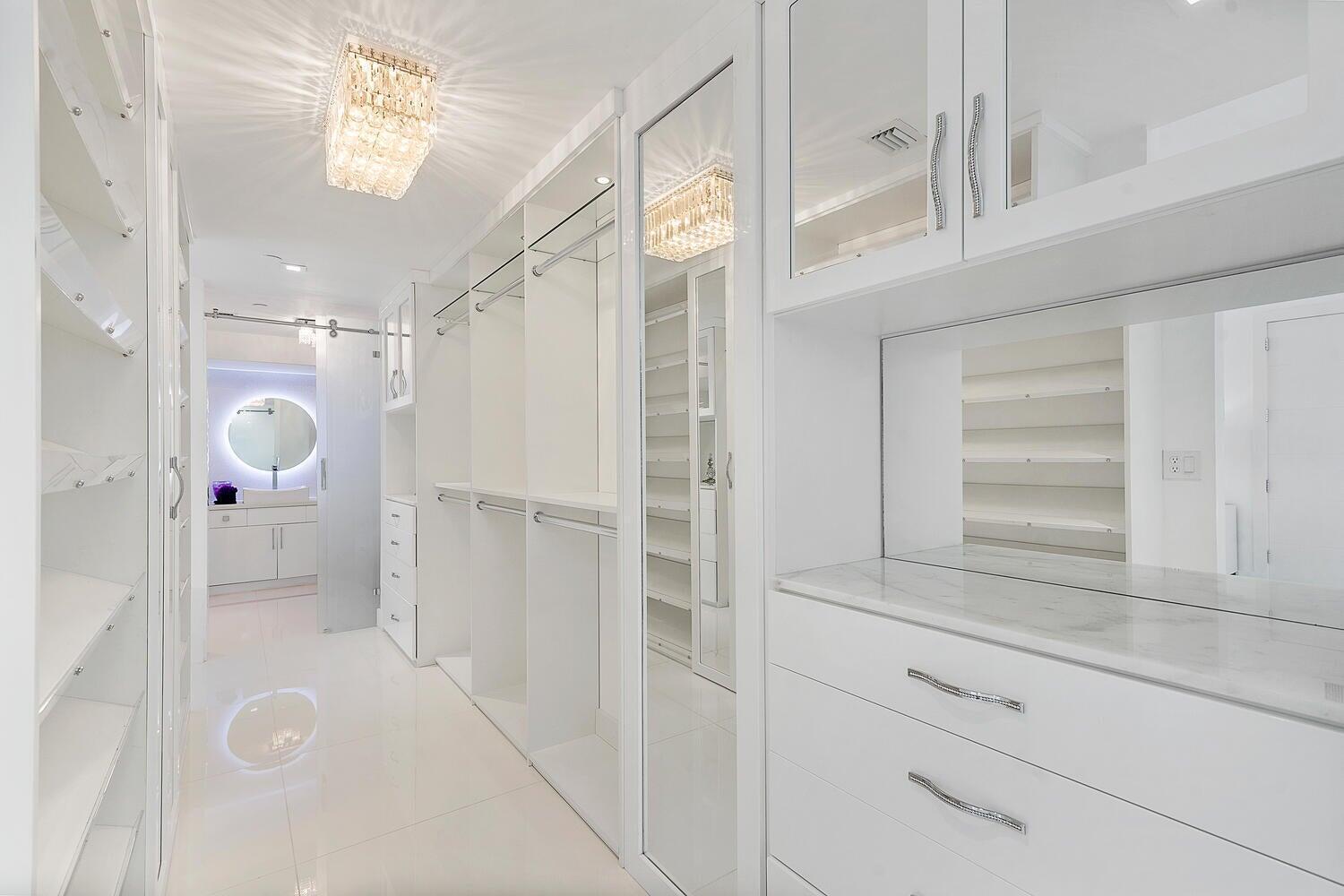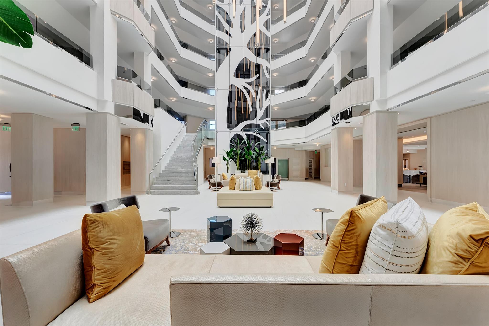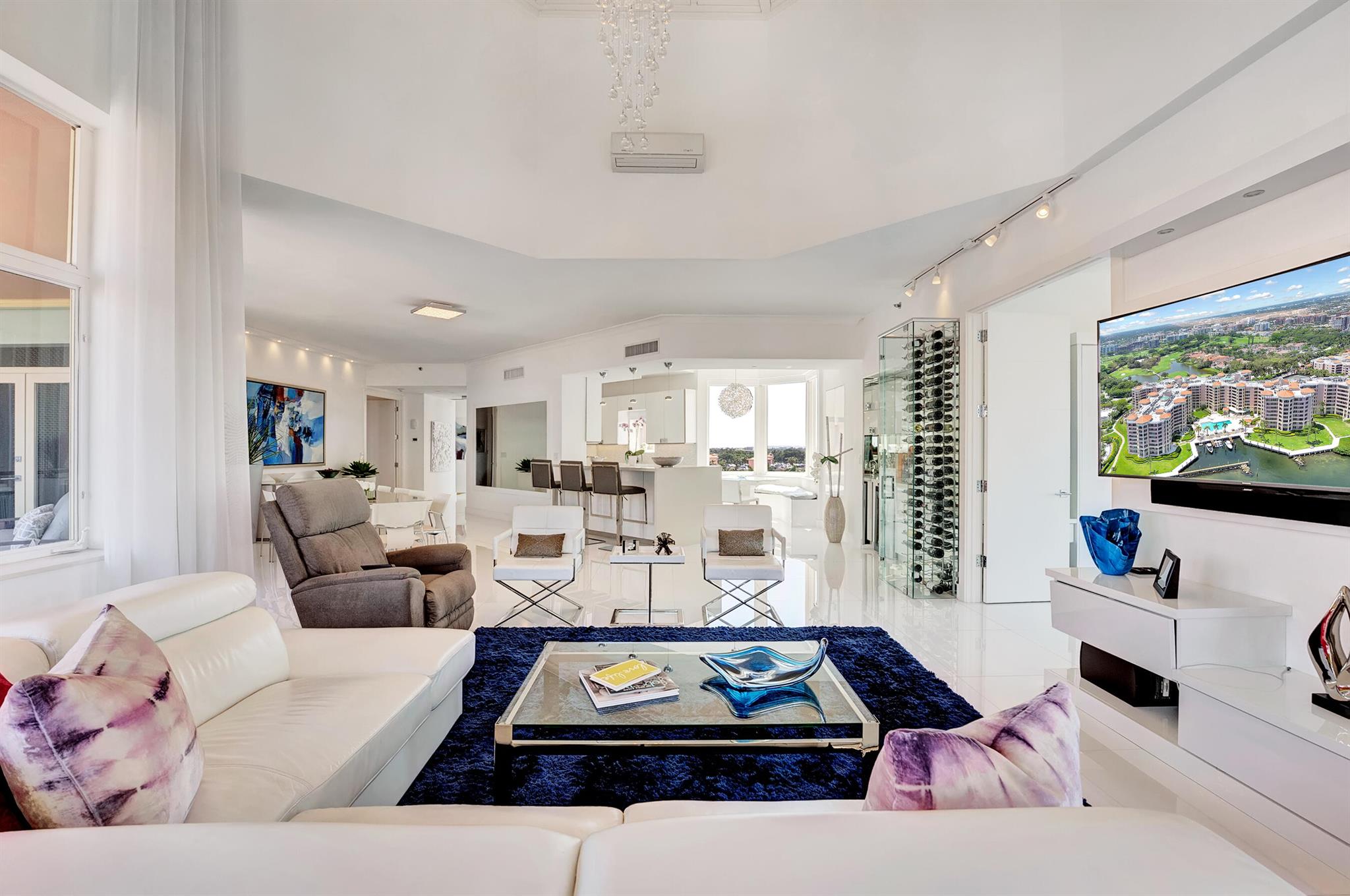 Welcome to your dream home complete with picturesque panoramic views of the ocean, Intracoastal, city, and golf course. This Sophisticated Penthouse residence boasts a spacious floor plan filled with natural light and high ceilings. With every room providing access to the expansive wrap-around terrace, you can enjoy breathtaking views of South Florida's beautiful skyline and the sparkling waters of the Atlantic Ocean. Impeccably renovated, the residence features striking interiors with plenty of living space and modern touches throughout. Home chefs will love the custom eat-in kitchen with white gloss cabinetry and quartz counters, a wine bar, and luxurious 36''x36'' white glass flooring.