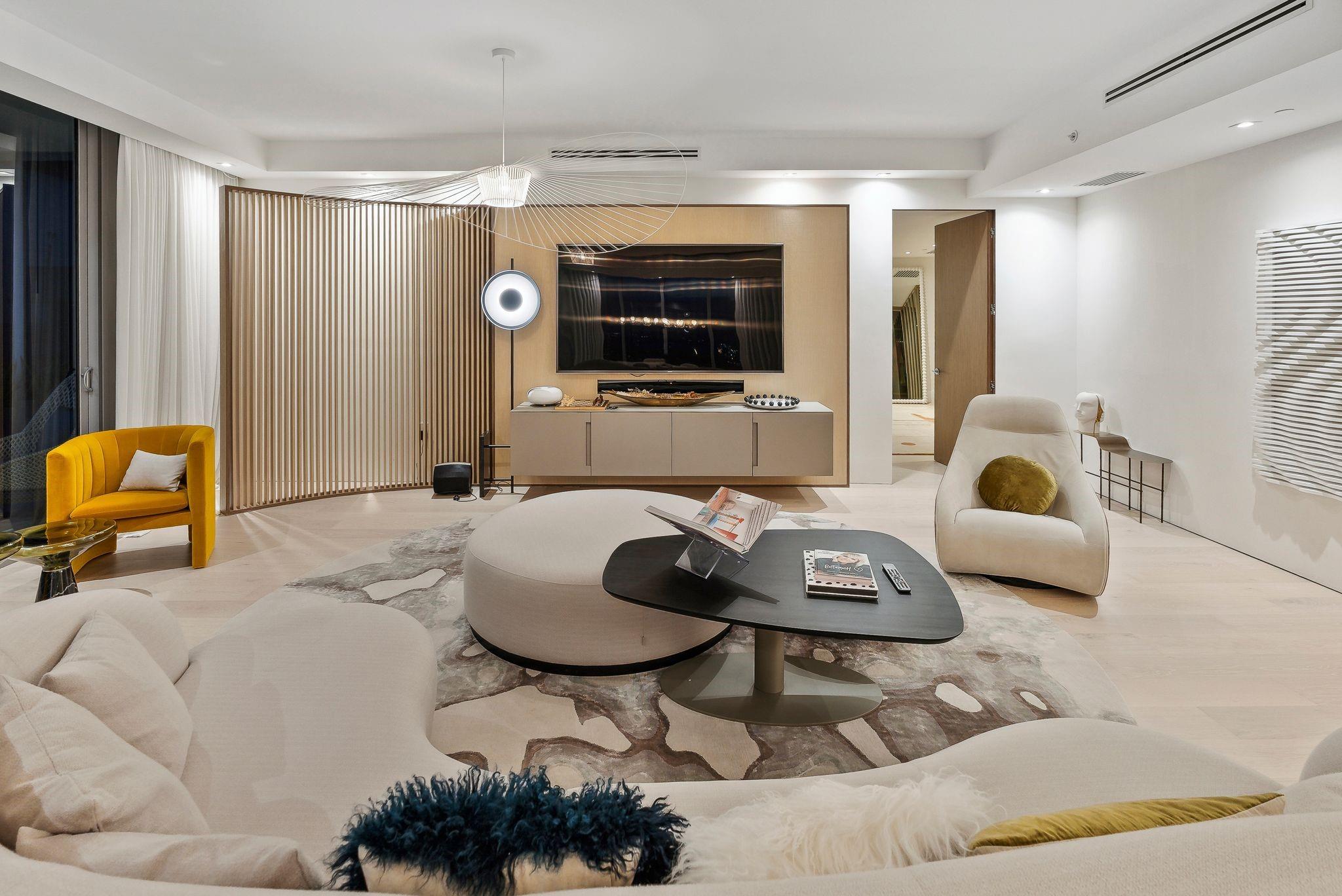 One of a kind combination corner residence at the new Auberge Beach Residences. Original owner combined two units into the most spectacular 5 bedroom, 5 bath unit with 4,241 sq/ft of interior living space. Professionally designed by DKOR Interiors, no expense was spared when finishing the unit with custom built-ins, wood flooring, closets, window treatments and furnishings. The 180 degree views from this NE corner flow-thru unit include direct ocean, intracoastal and downtown views. The kitchen was custom designed to be one of the largest at Auberge and includes an island, 2 full size wine coolers and gas cooktop. 4 parking spaces included. Auberge offers 5 star amenities including: upscale restaurant and spa, fitness center, two pools, cinema, golf simulator, billiards, wine room etc