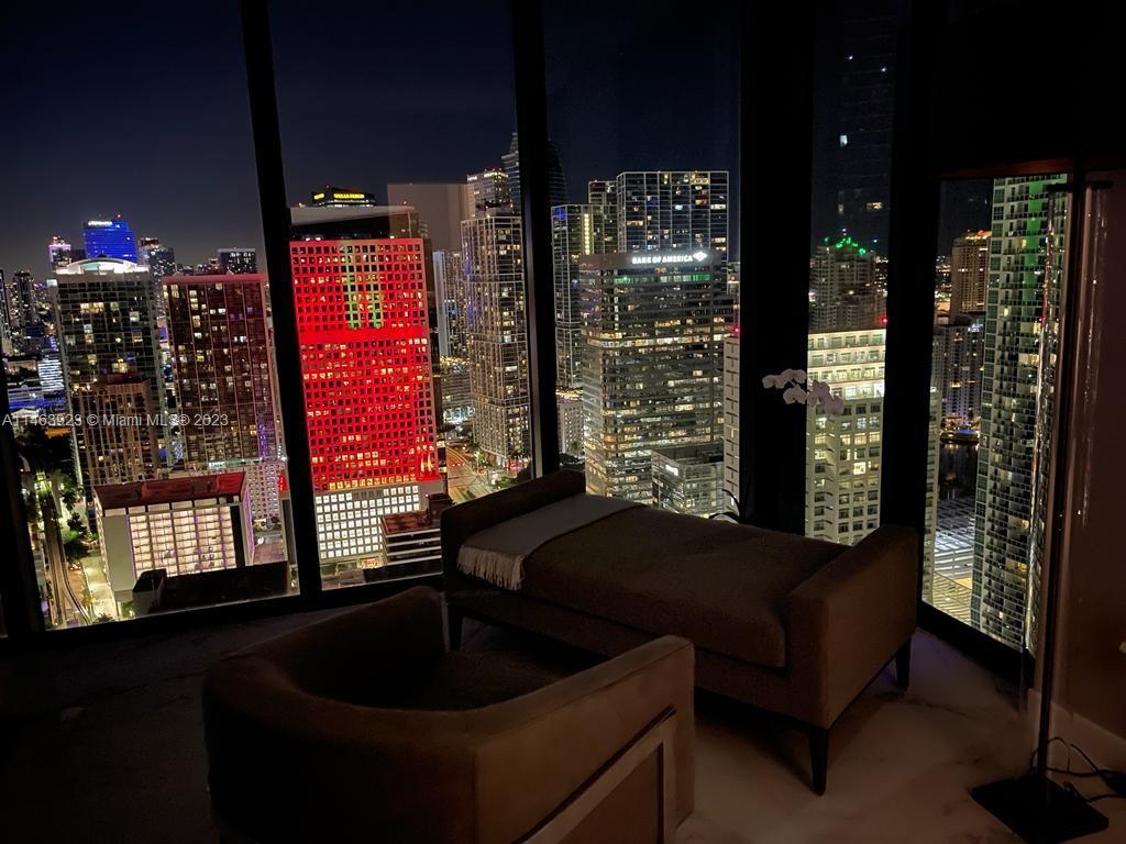 Amazing upgraded panoramic corner unit at 1010 Brickell Condo, the best line in the building overlooking the bay. Private elevator with 3 beds, 3 baths, + den, 9-foot ceiling heights, balcony with barbecue/summer kitchen. Porcelain floors throughout the unit including a balcony, new custom-made closets, top of the line appliances! Great building with fantastic amenities for families: outdoor movie theatre, restaurant & swimming pool at 50th-floor roof top; spa with jacuzzi, massage & treatment rooms, sauna & steam room; basketball courts, mini soccer & racquetball courts, kids indoor playground, indoor heated swimming pool, fitness center, party room, arcade room, bowling, virtual golf, and more! Luxury condominium built in 2017.