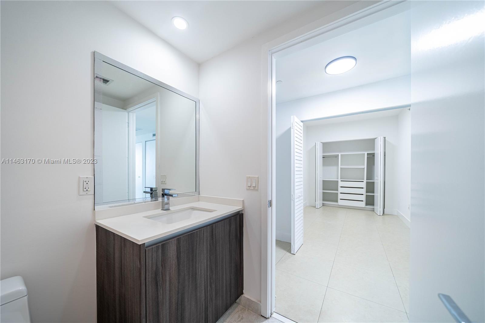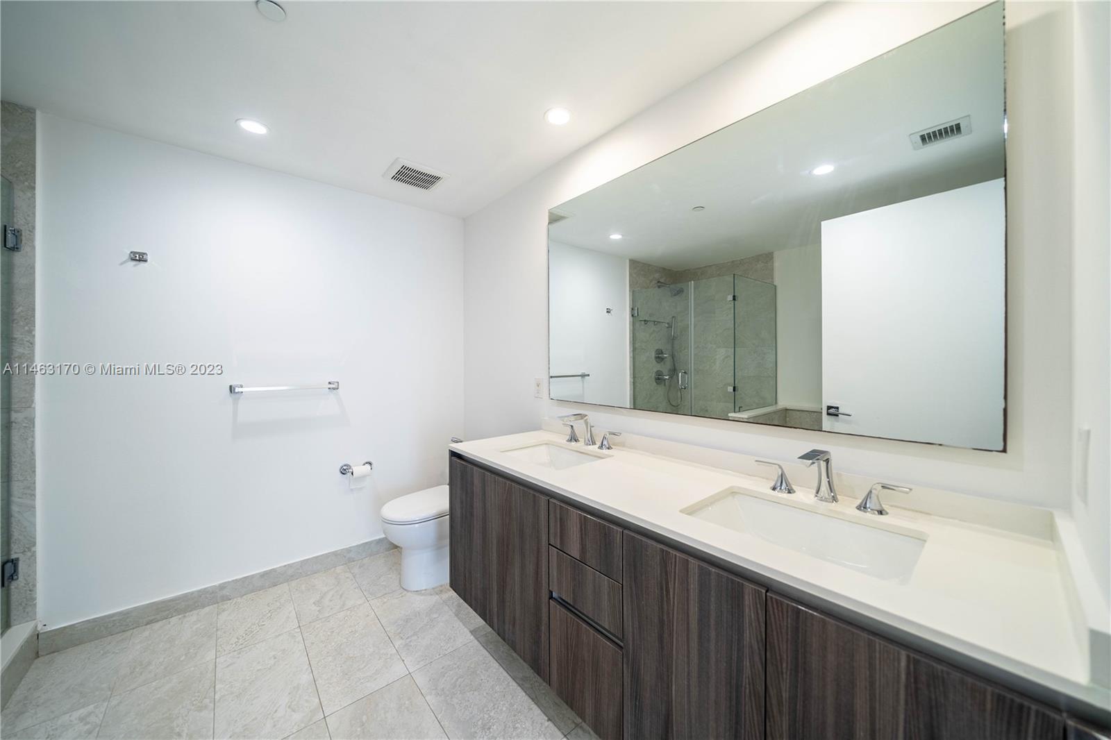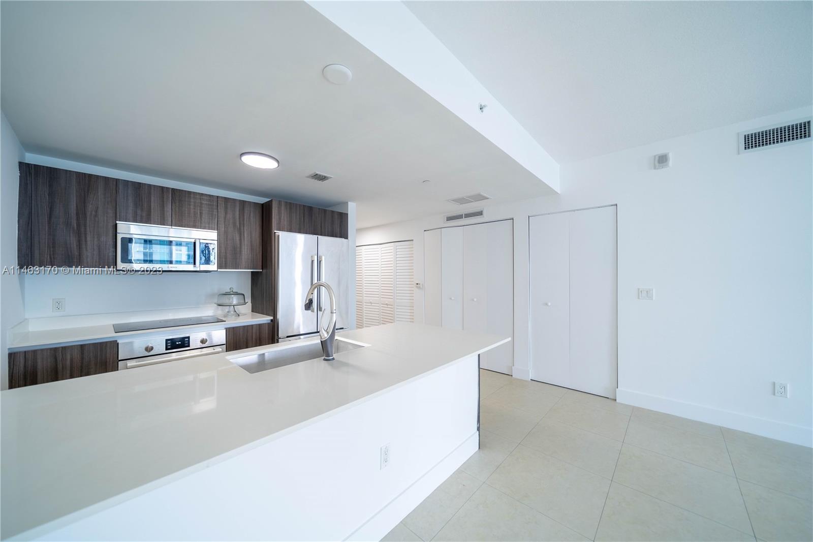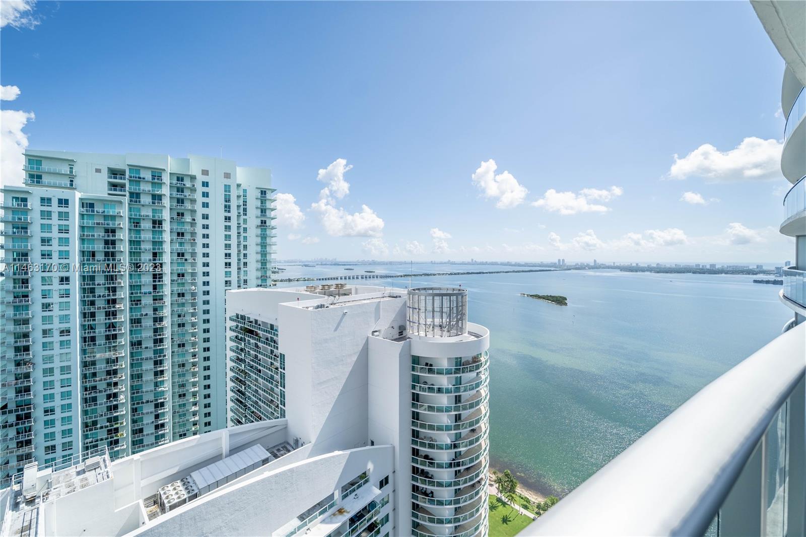 Located on the 44th floor, this residence offers a breathtaking bay view and 1,224 sq. ft. of luxury. With 1 bedroom, DEN (conv. 2 BR), and 2 full baths, it's designed for comfort. Elegant porcelain floors, Italian cabinets, and quartz countertops enhance the living space. In a new building, it offers modern design and amenities, including 24/7 security, two large pools, a Jacuzzi, and stunning bay views. Plus, enjoy a private cinema, gym, and kids' playrooms. Experience bayfront living at its best. Don't miss this exceptional listing.