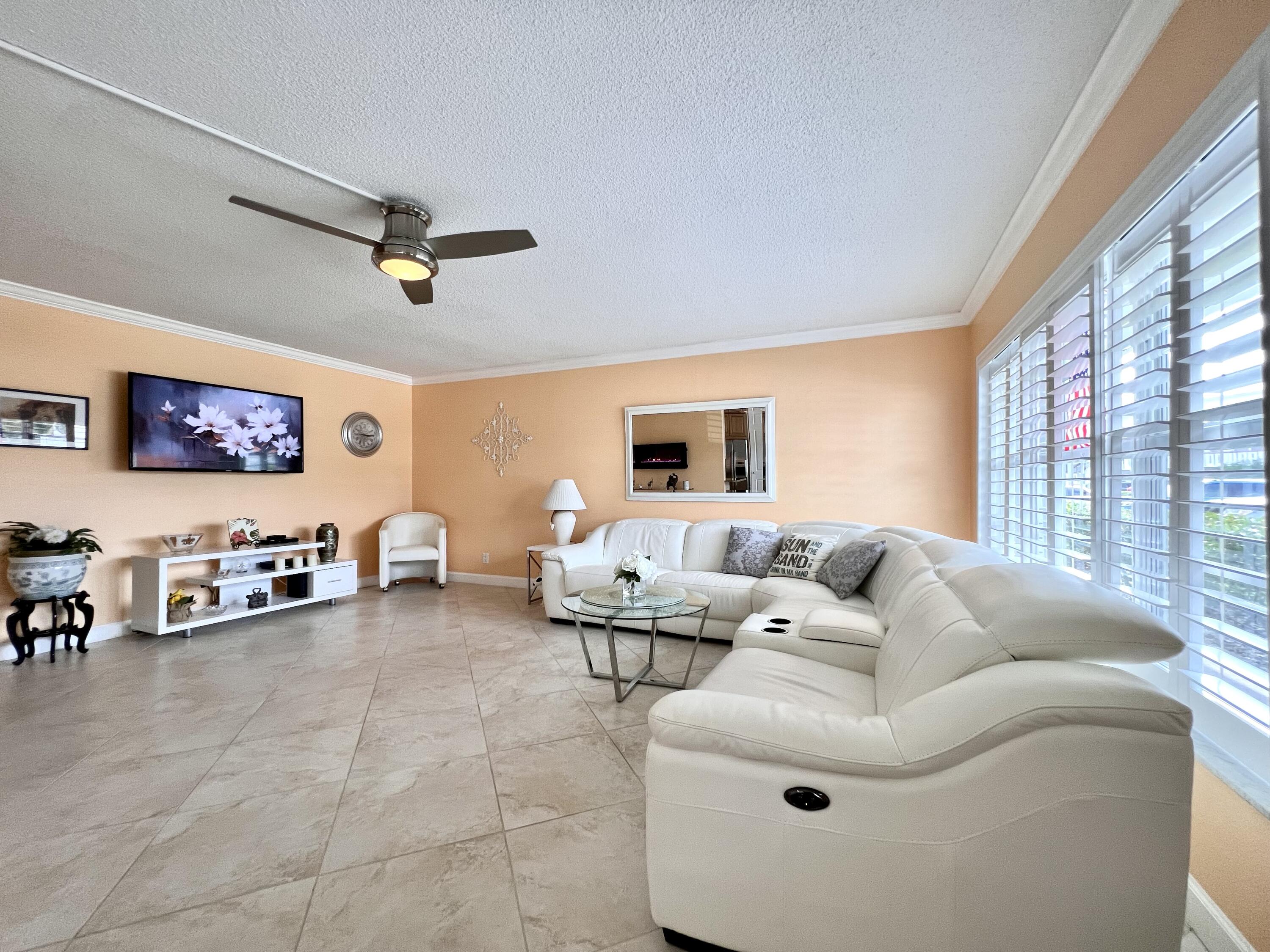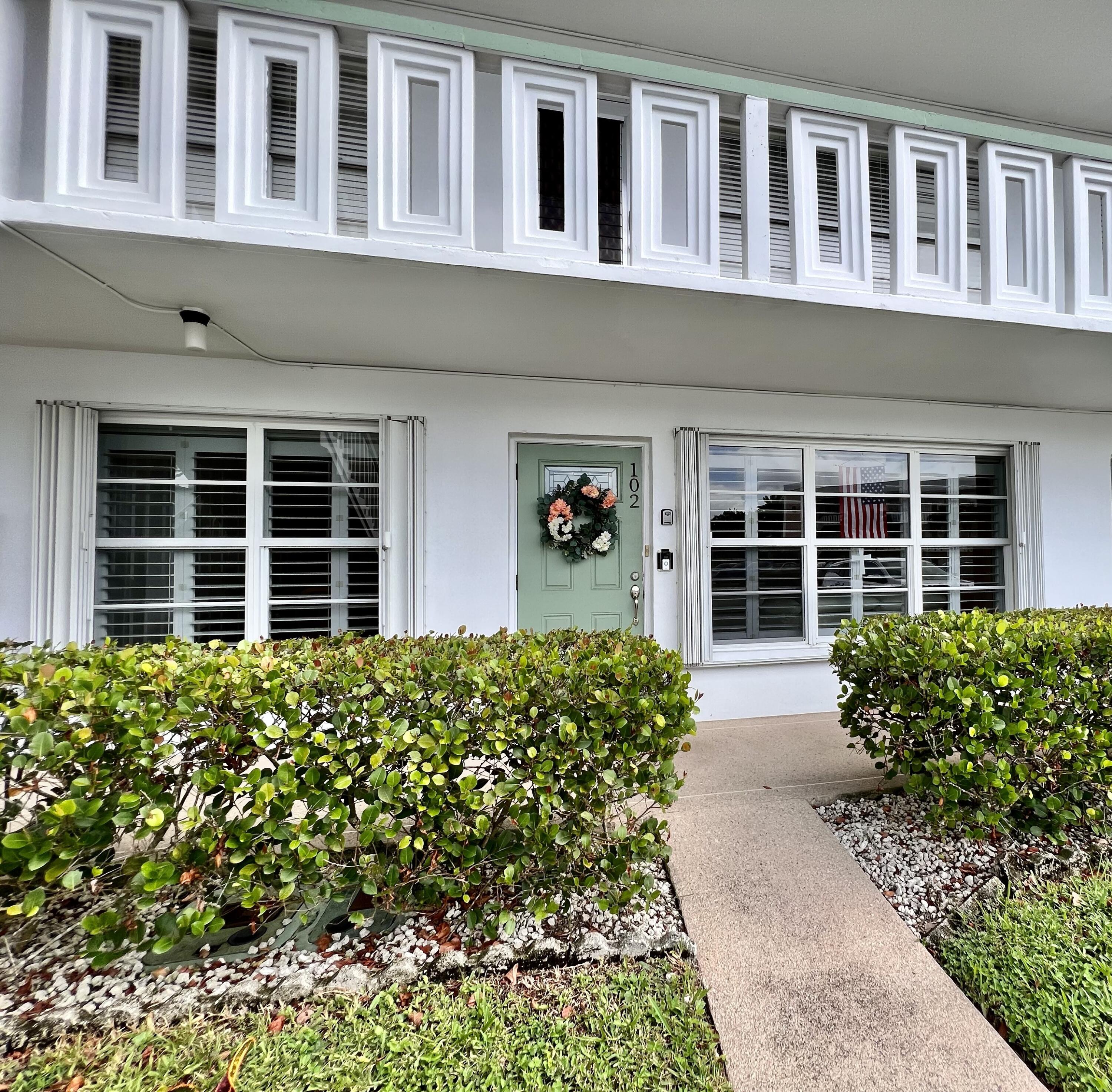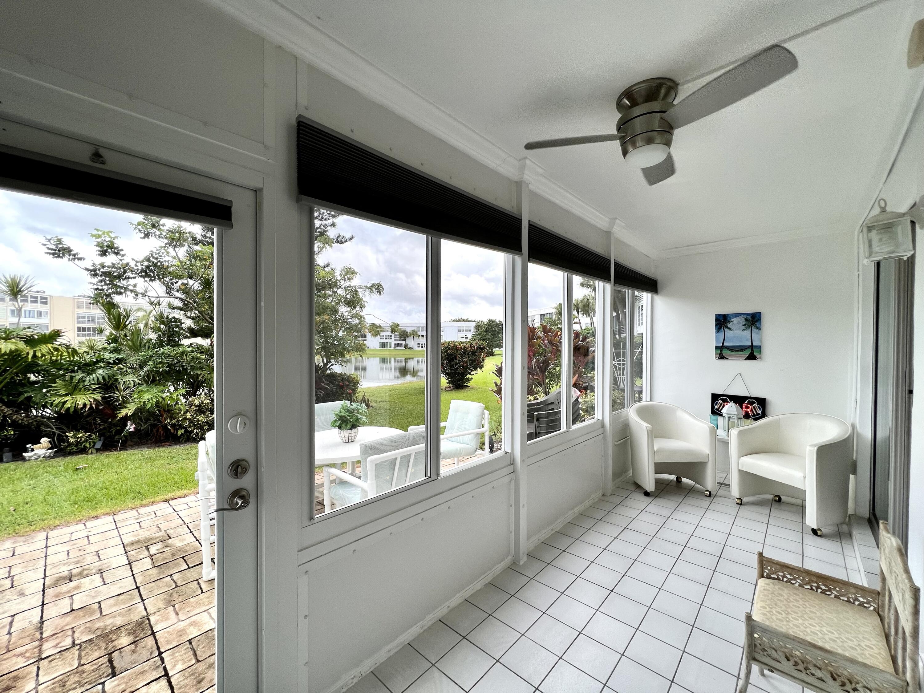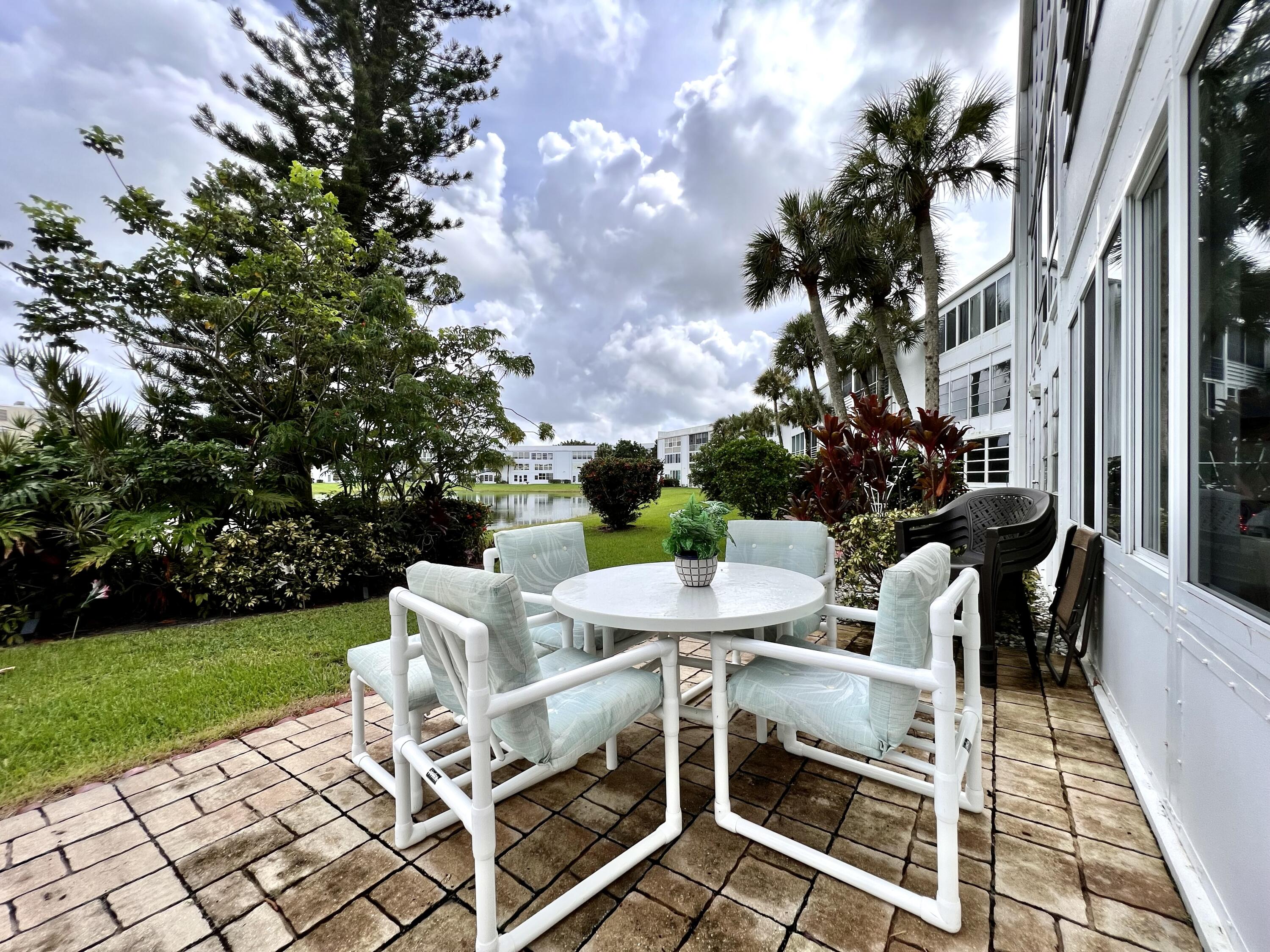 EXQUISITE & UPDATED IN THE LUXURY WELLINGTON SECTION OF 55+ CENTURY VILLAGE! Elegant & spacious 2/2 with pretty water views, private patio, and desirable FIRST FLOOR location. Beautifully updated & upgraded kitchen with expanse of cabinets, granite counters, and stainless appliances. Custom floor to ceiling pantry closet for amazing extra storage. Updated baths with curb-less entry showers. Updated Lanai flows out to the private water side patio. Neutral tile flooring & crown molding throughout. Complete hurricane protection. Parking spot a few steps to front door. Nicely maintained luxury building with reserves, trash chutes, extra storage. Two private pools for Wellington section residents. Sold AS IS & Furnished (some items excluded). Century Village is a 55+ community with so much to