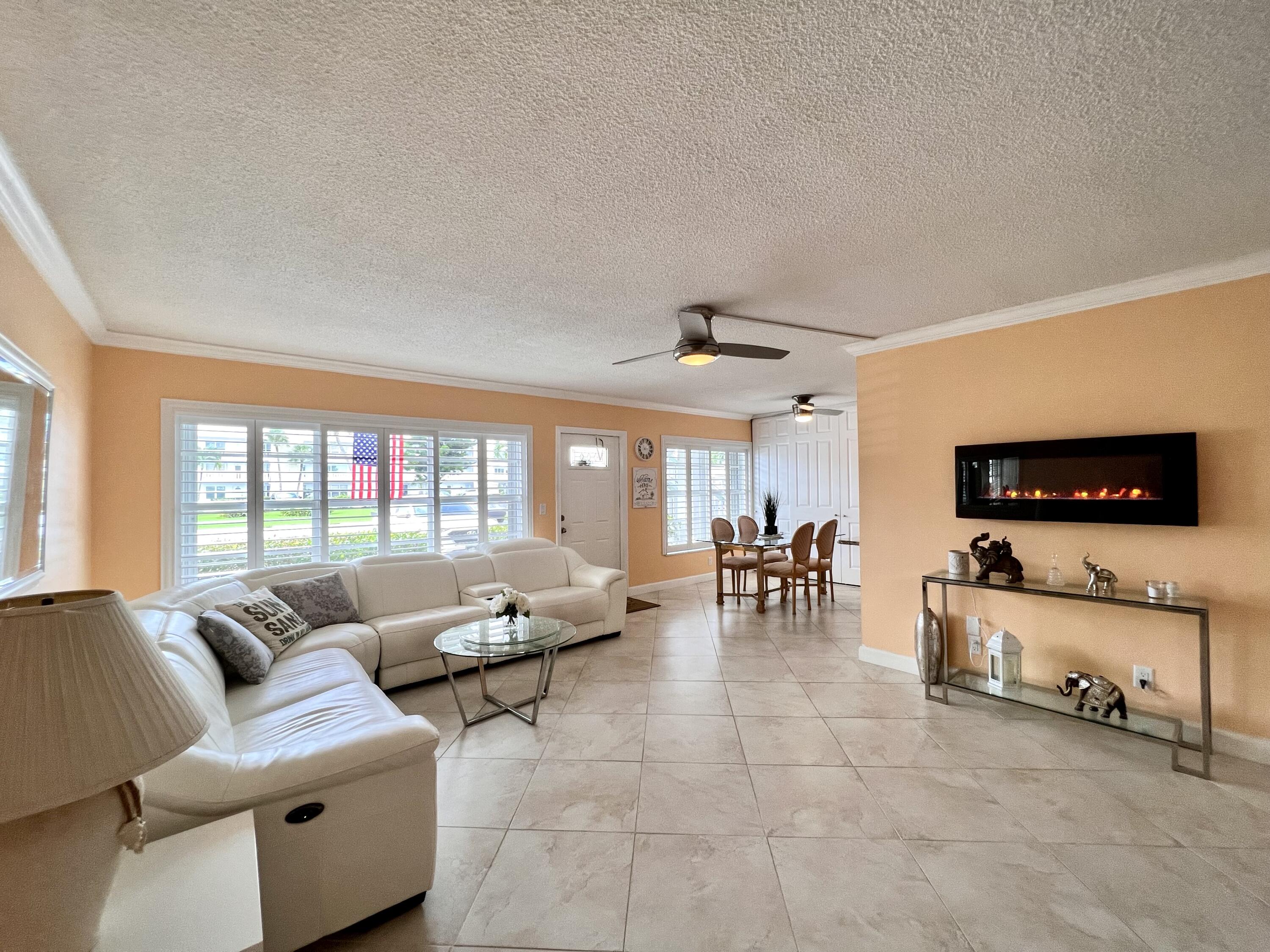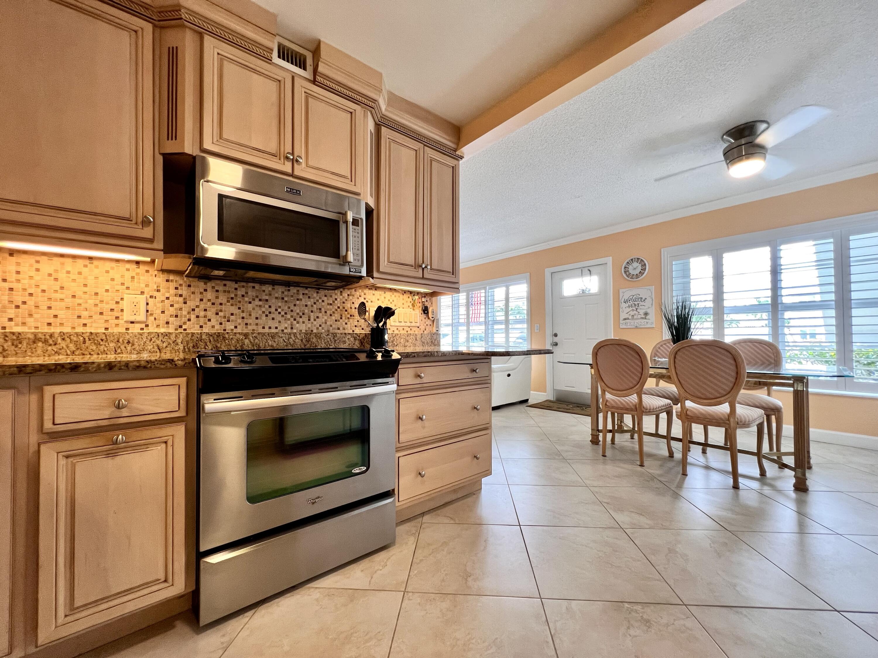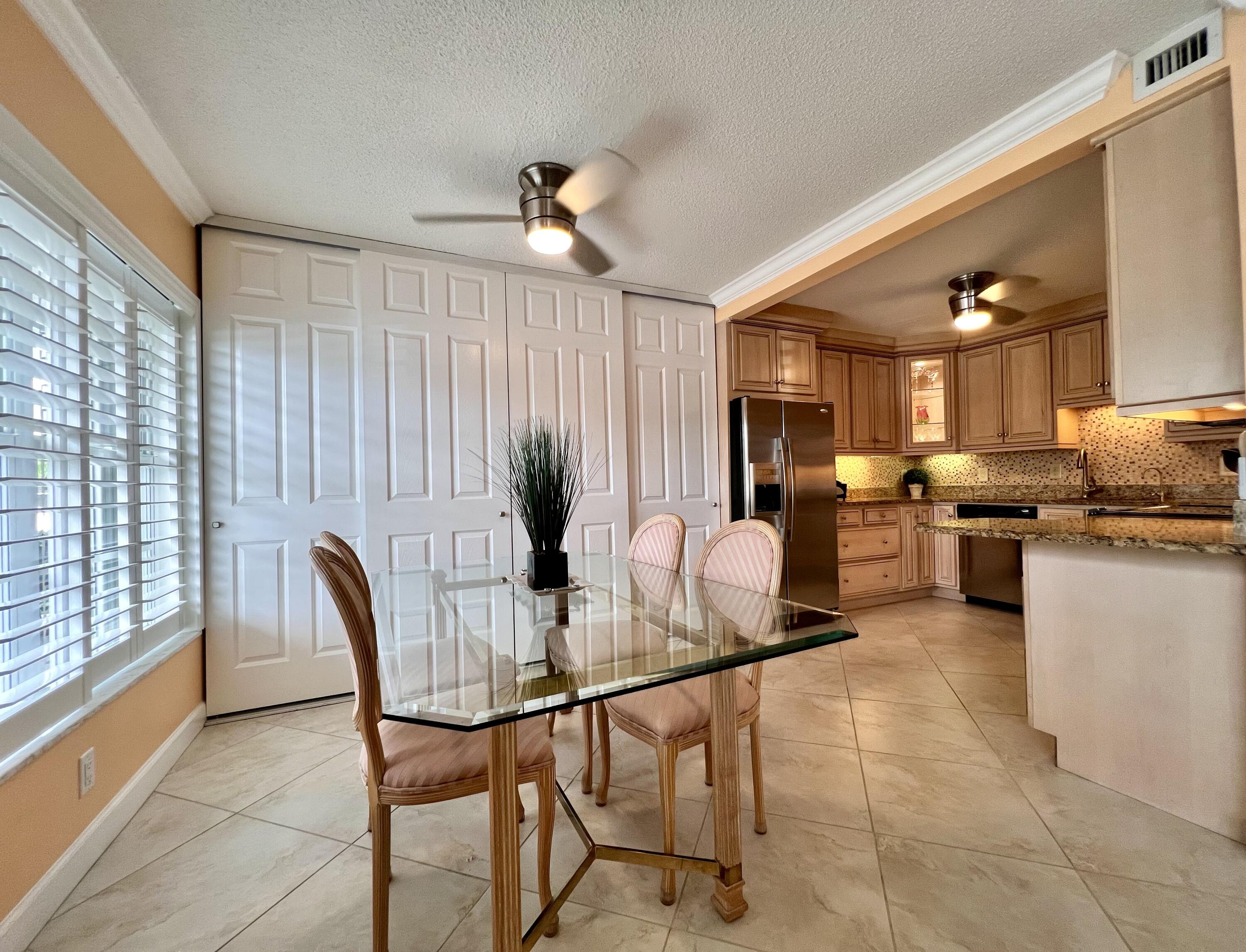 EXQUISITE & UPDATED IN THE LUXURY WELLINGTON SECTION OF 55+ CENTURY VILLAGE! Elegant & spacious 2/2 with pretty water views, private patio, and desirable FIRST FLOOR location. Beautifully updated & upgraded kitchen with expanse of cabinets, granite counters, and stainless appliances. Custom floor to ceiling pantry closet for amazing extra storage. Updated baths with curb-less entry showers. Updated Lanai flows out to the private water side patio. Neutral tile flooring & crown molding throughout. Complete hurricane protection. Parking spot a few steps to front door. Nicely maintained luxury building with reserves, trash chutes, extra storage. Two private pools for Wellington section residents. Sold AS IS & Furnished (some items excluded). Century Village is a 55+ community with so much to