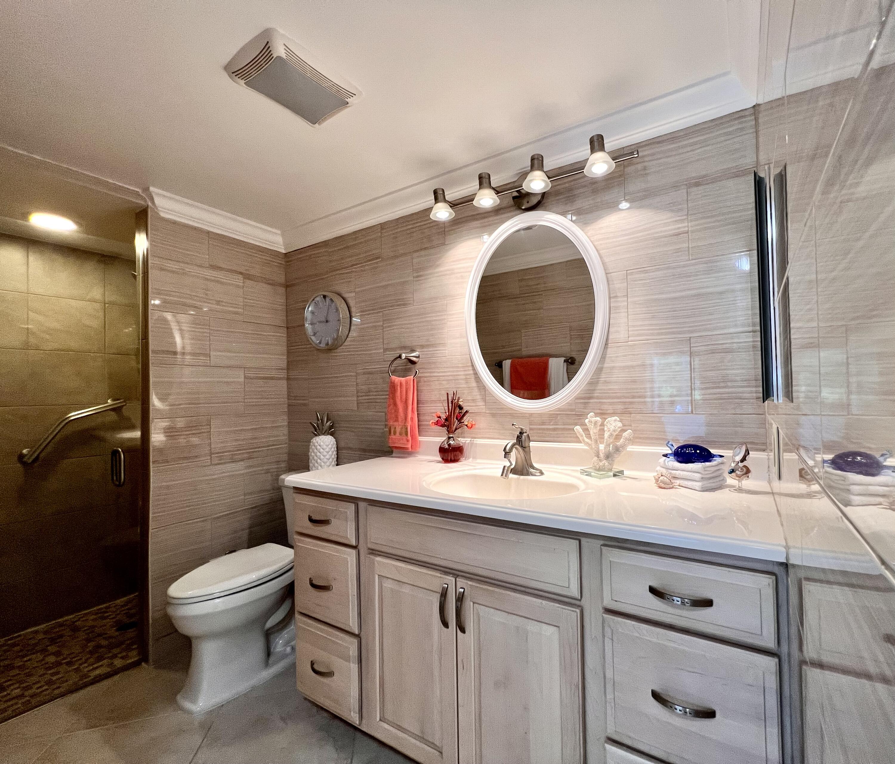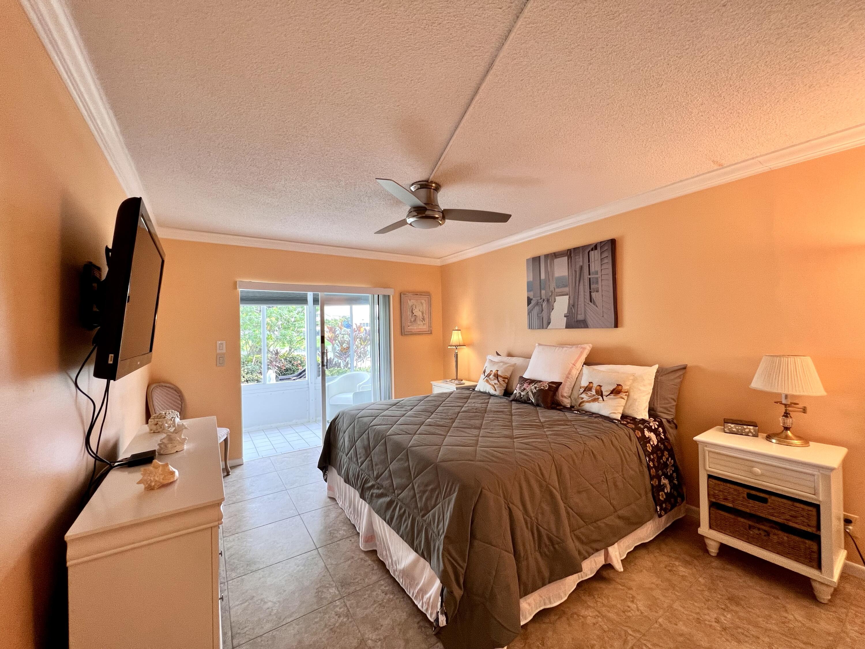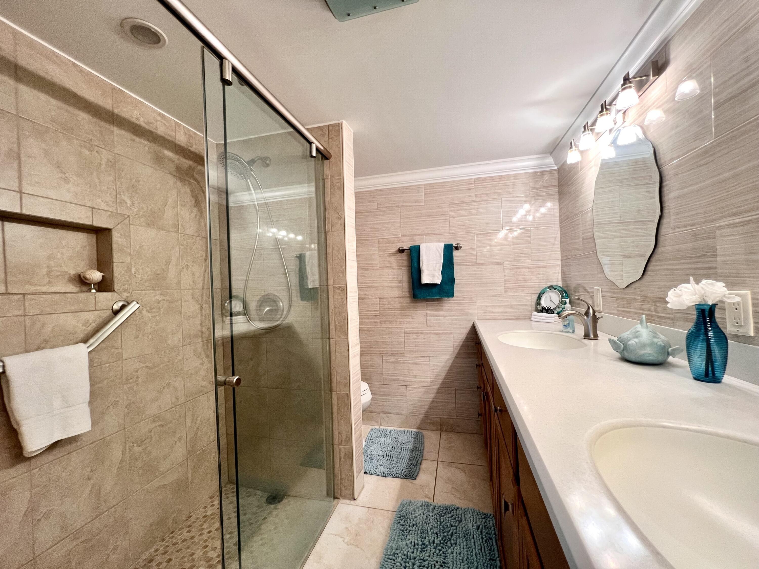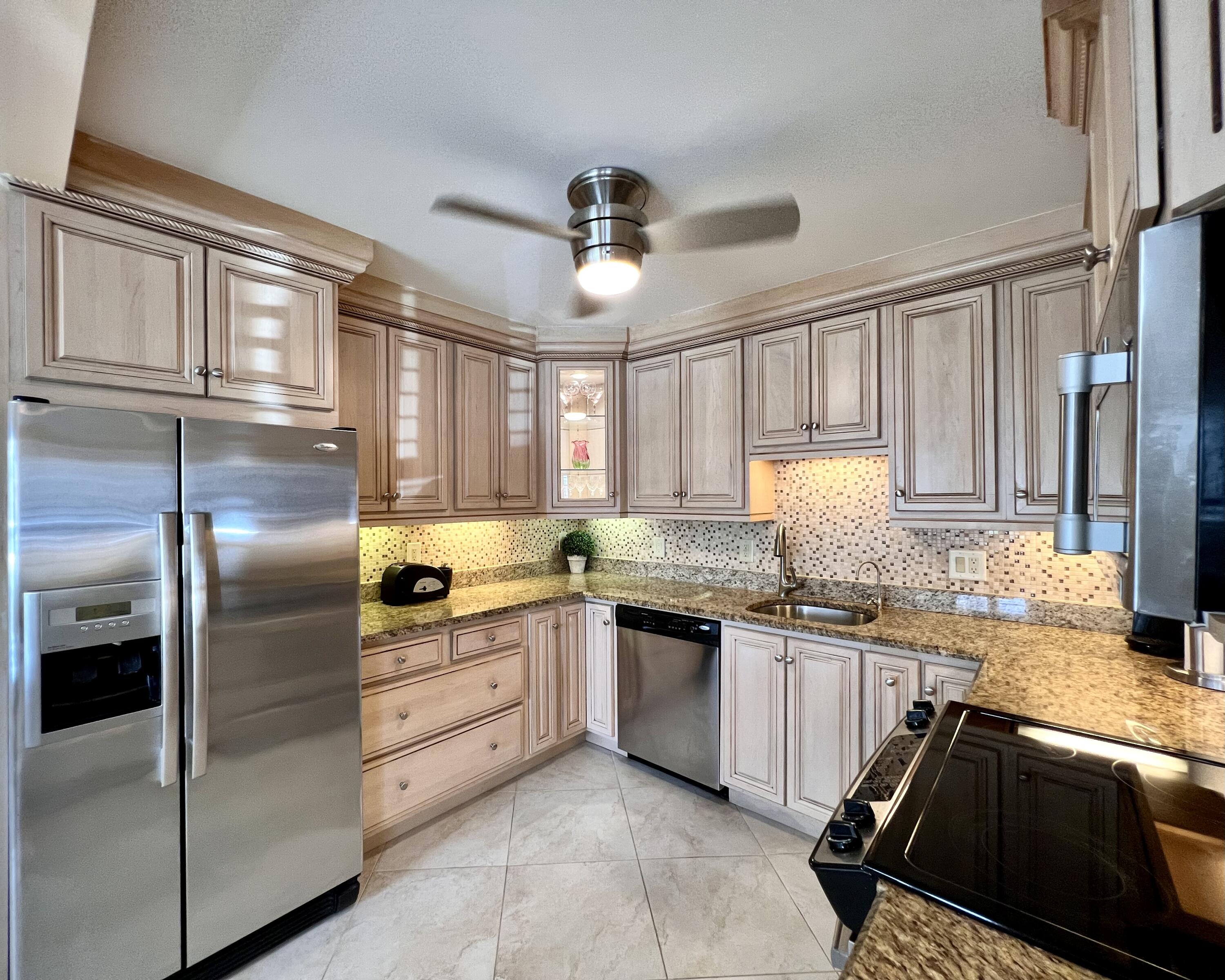 EXQUISITE & UPDATED IN THE LUXURY WELLINGTON SECTION OF 55+ CENTURY VILLAGE! Elegant & spacious 2/2 with pretty water views, private patio, and desirable FIRST FLOOR location. Beautifully updated & upgraded kitchen with expanse of cabinets, granite counters, and stainless appliances. Custom floor to ceiling pantry closet for amazing extra storage. Updated baths with curb-less entry showers. Updated Lanai flows out to the private water side patio. Neutral tile flooring & crown molding throughout. Complete hurricane protection. Parking spot a few steps to front door. Nicely maintained luxury building with reserves, trash chutes, extra storage. Two private pools for Wellington section residents. Sold AS IS & Furnished (some items excluded). Century Village is a 55+ community with so much to